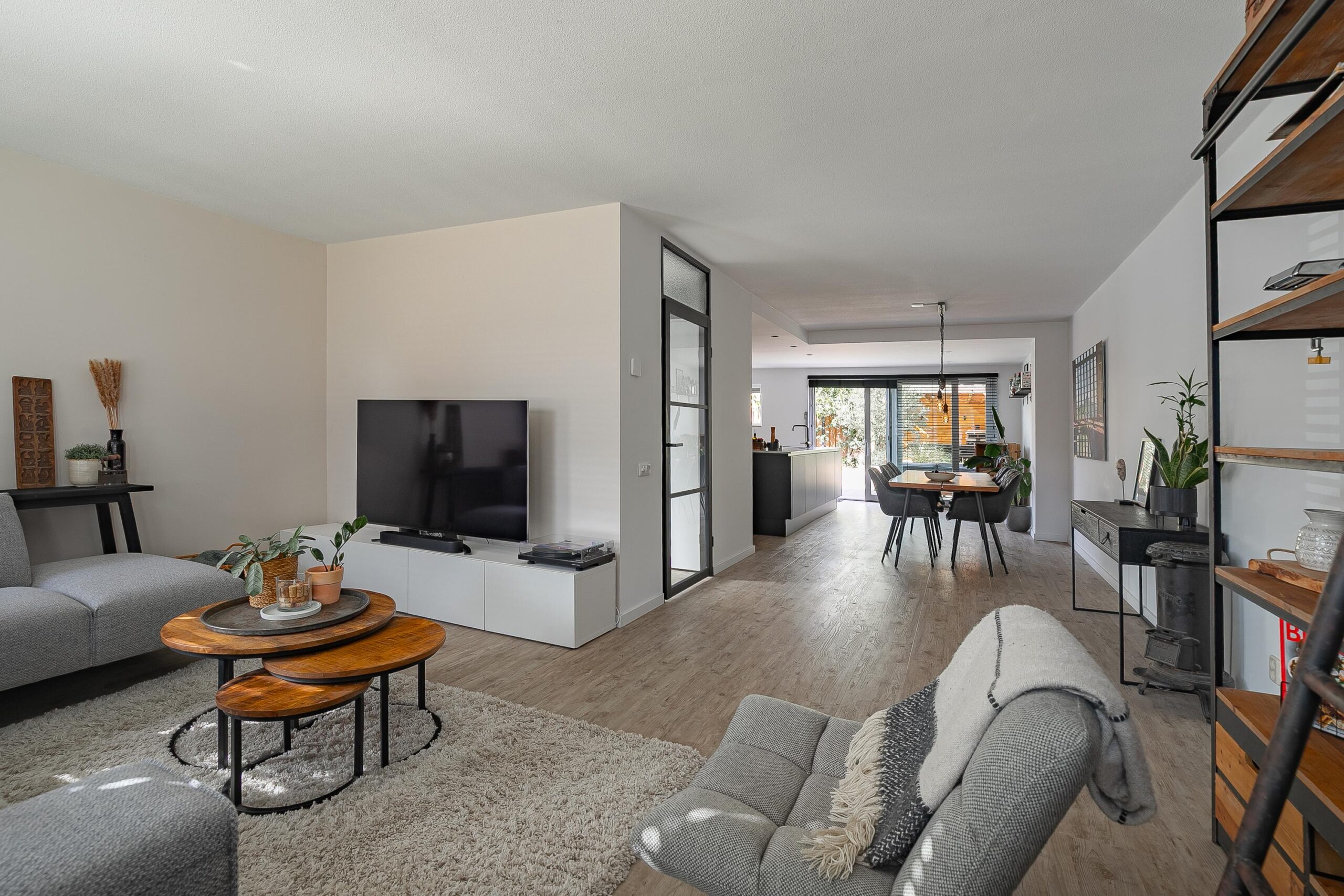 Via een glasdeur is de woonkamer met aanbouw bereikbaar.