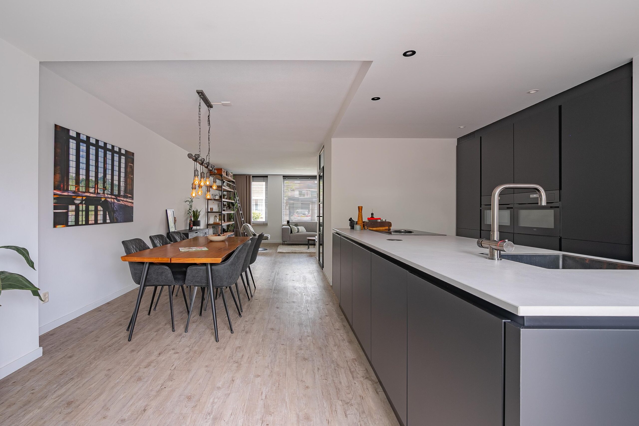 De woonkamer is uitgevoerd met een PVC vloer met vloerverwarming, airco installatie ruime zithoek en een prachtige