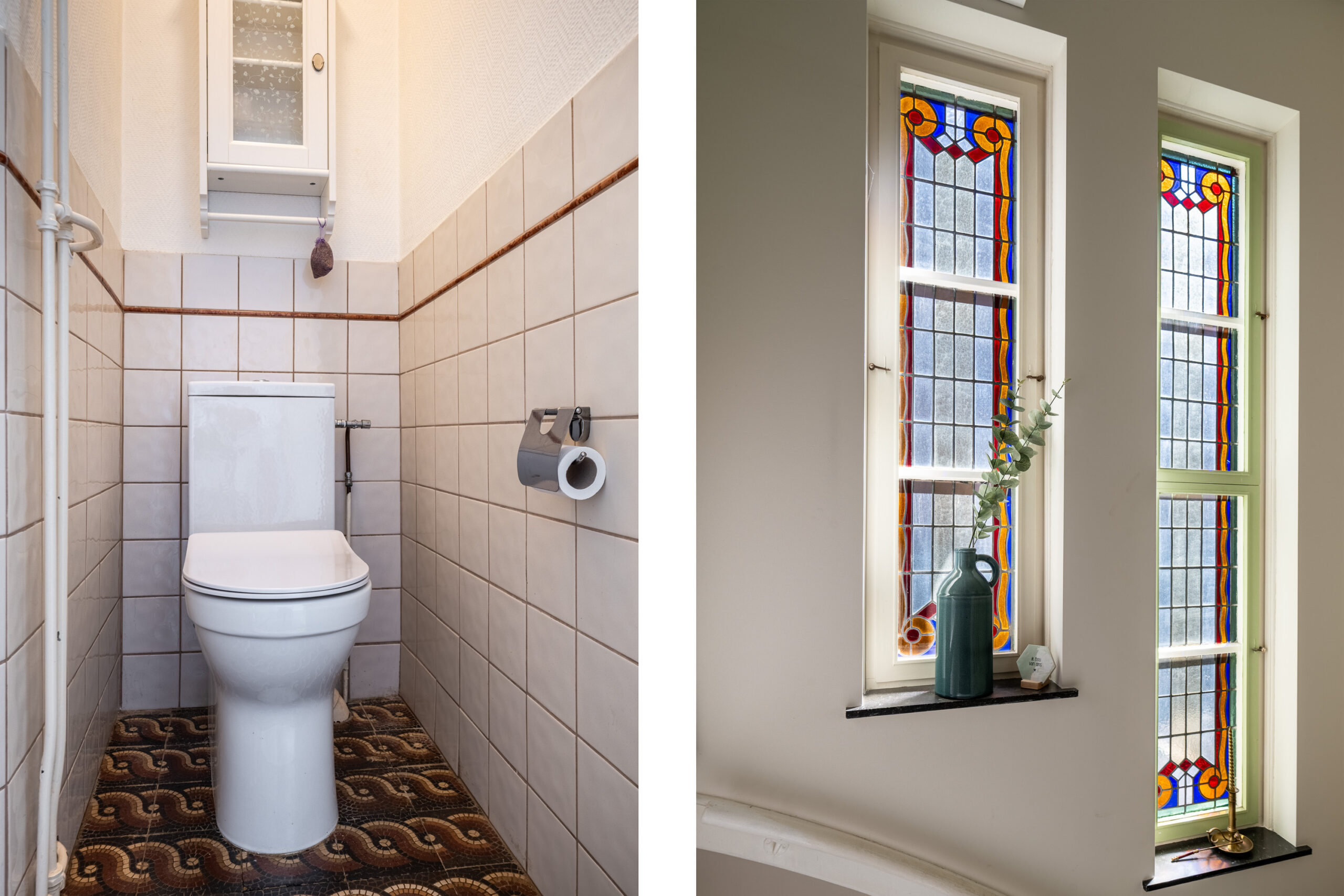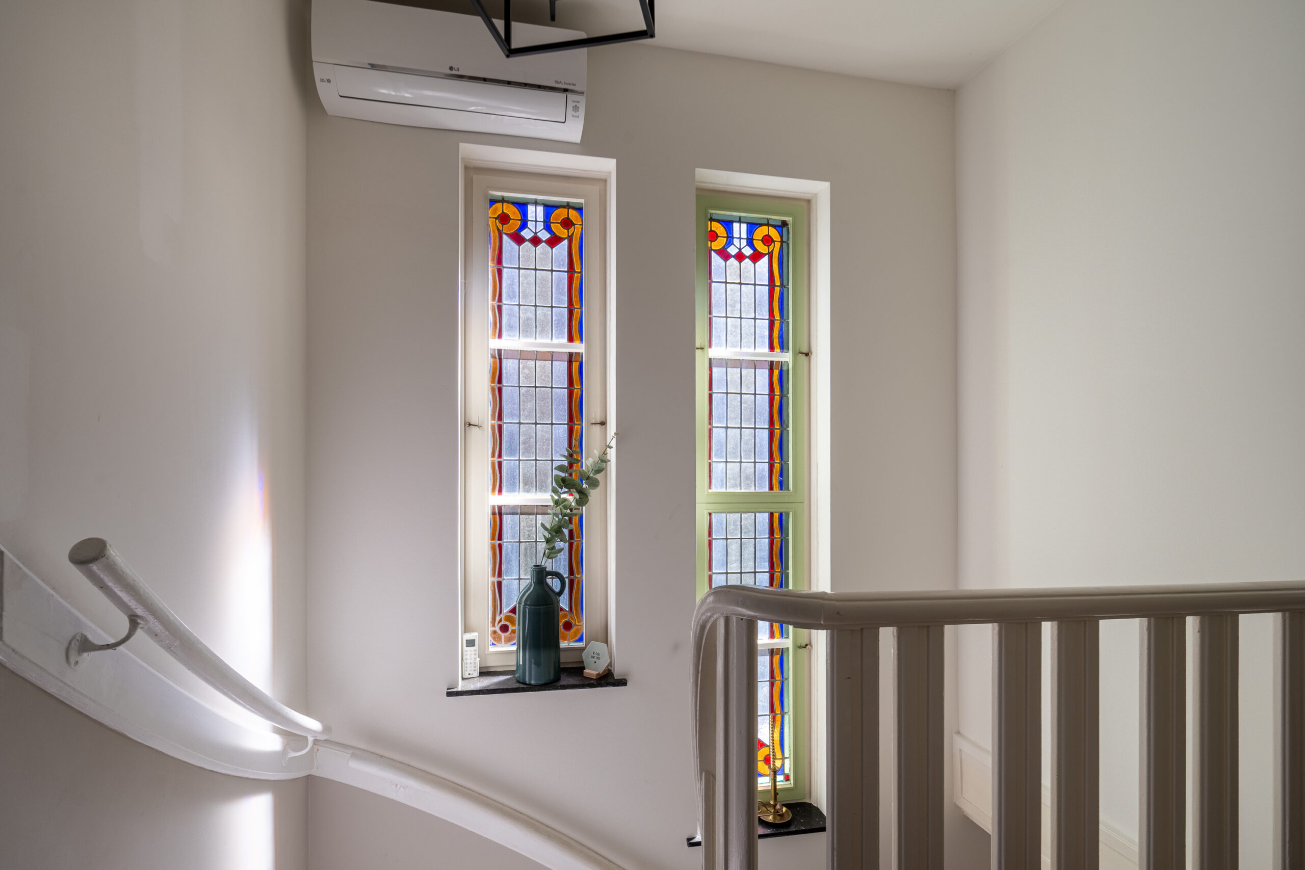 – Deels kunststof kozijnen met dubbel/HR++ glas, deels houten kozijnen met glas-in-lood (voorzien van voorzetramen);