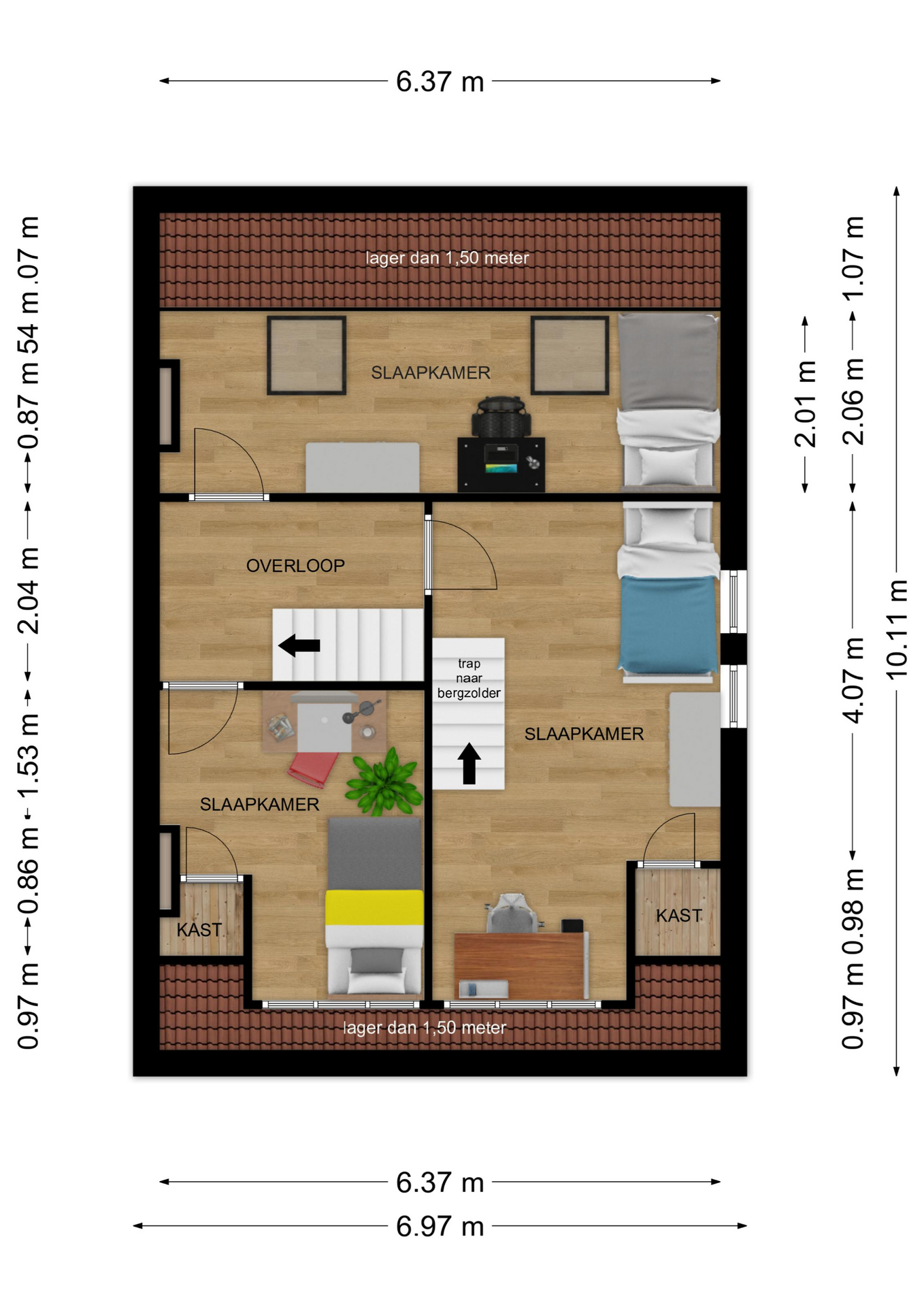 Vanuit slaapkamer 4 is er middels een vaste trap tevens toegang tot een extra bergzolder van ca. 11 m2, goed voor veel opbergruimte.