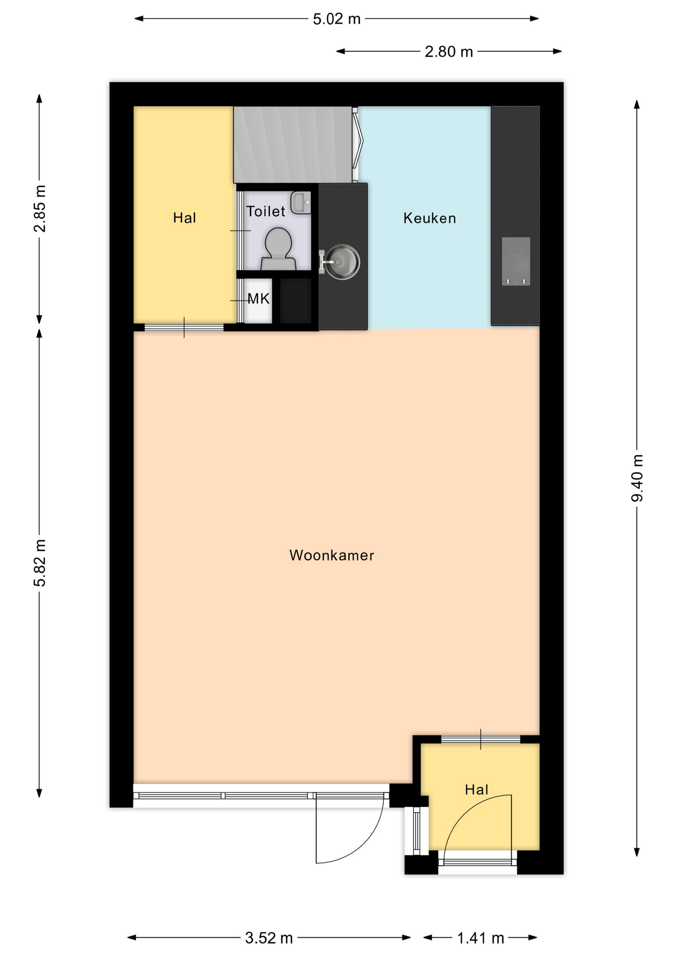 – Alle vermelde afmetingen zijn indicatief en kunnen afwijken van de werkelijkheid.