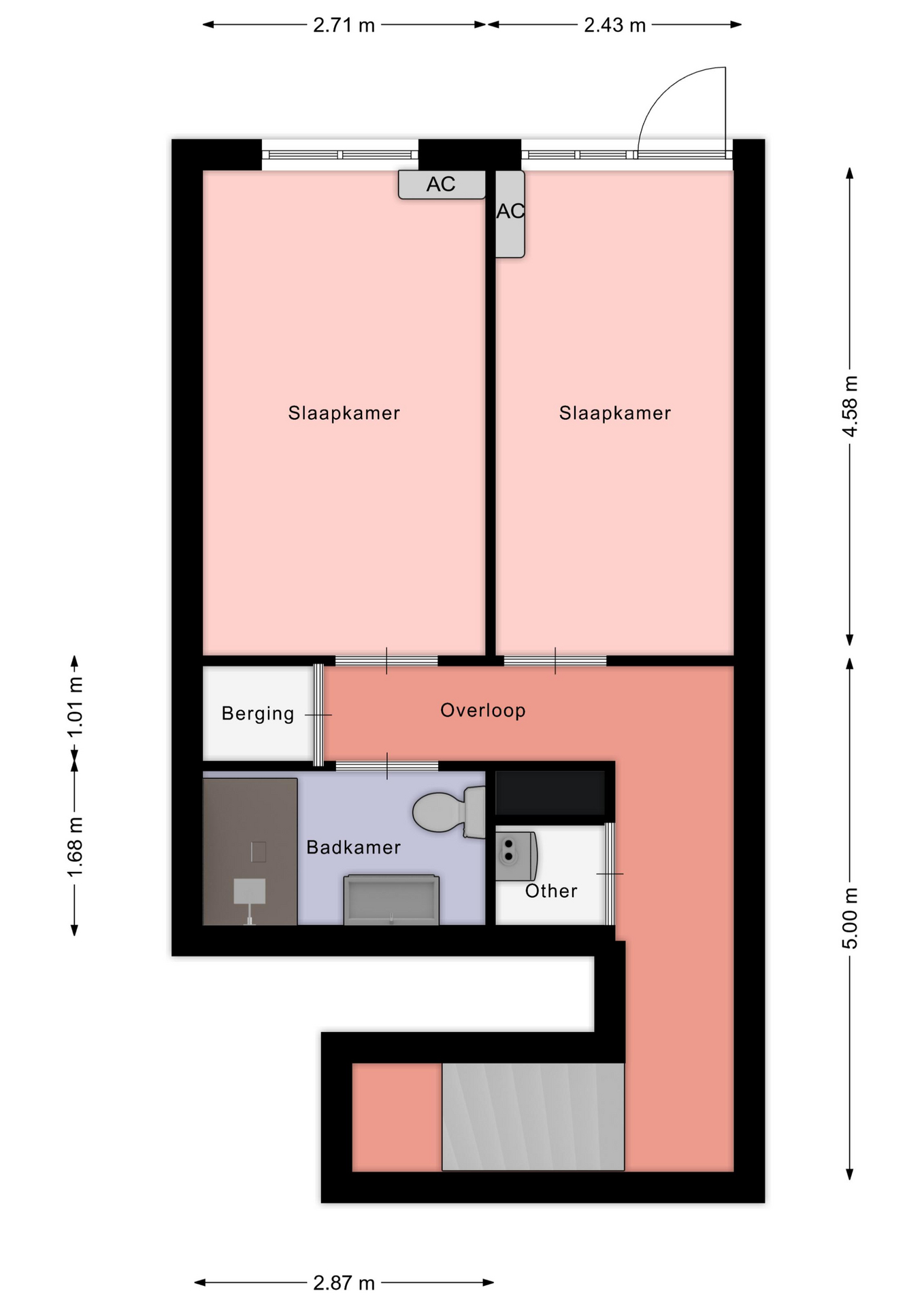 - Oppervlakte gebouwgebonden ca. 2 m2