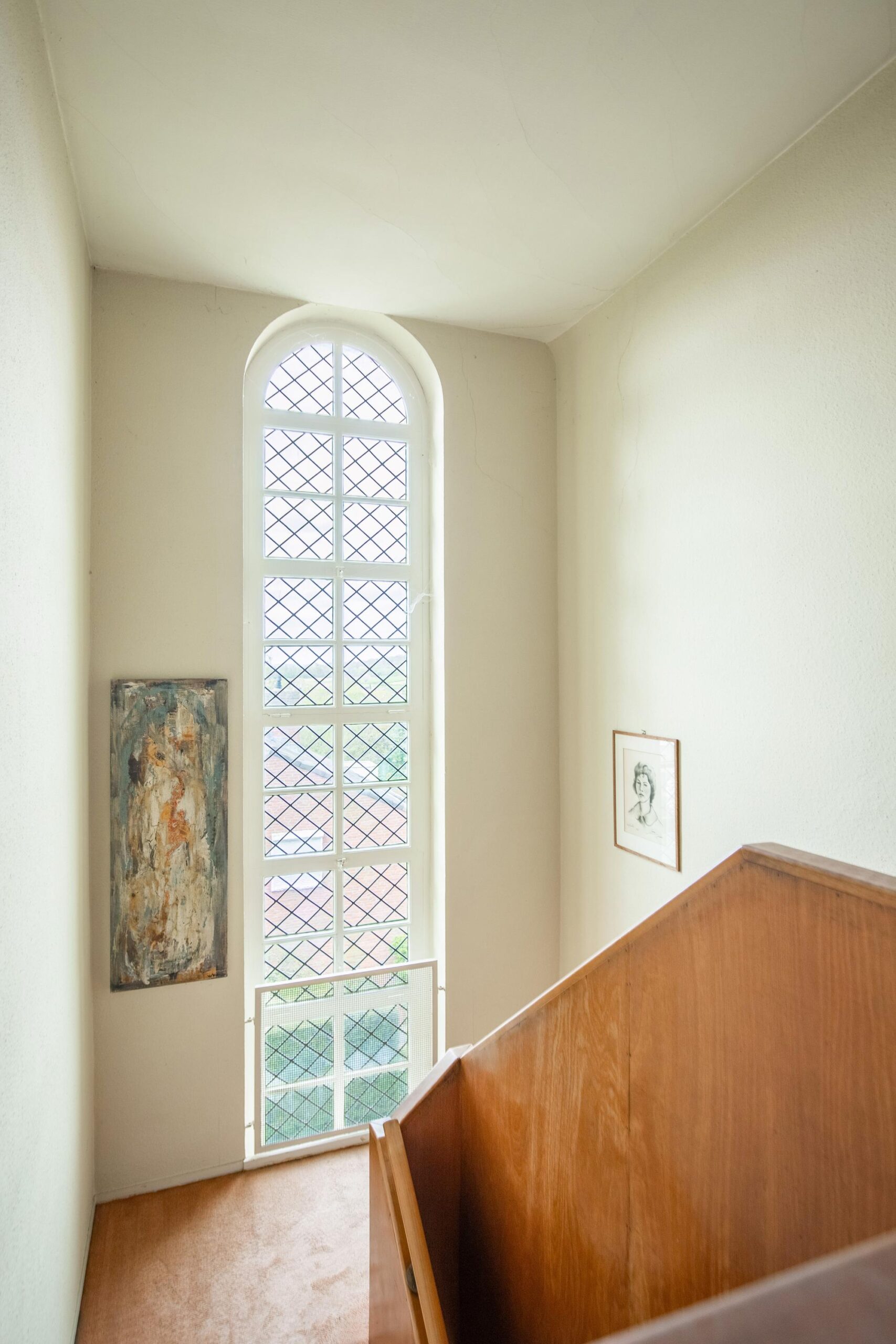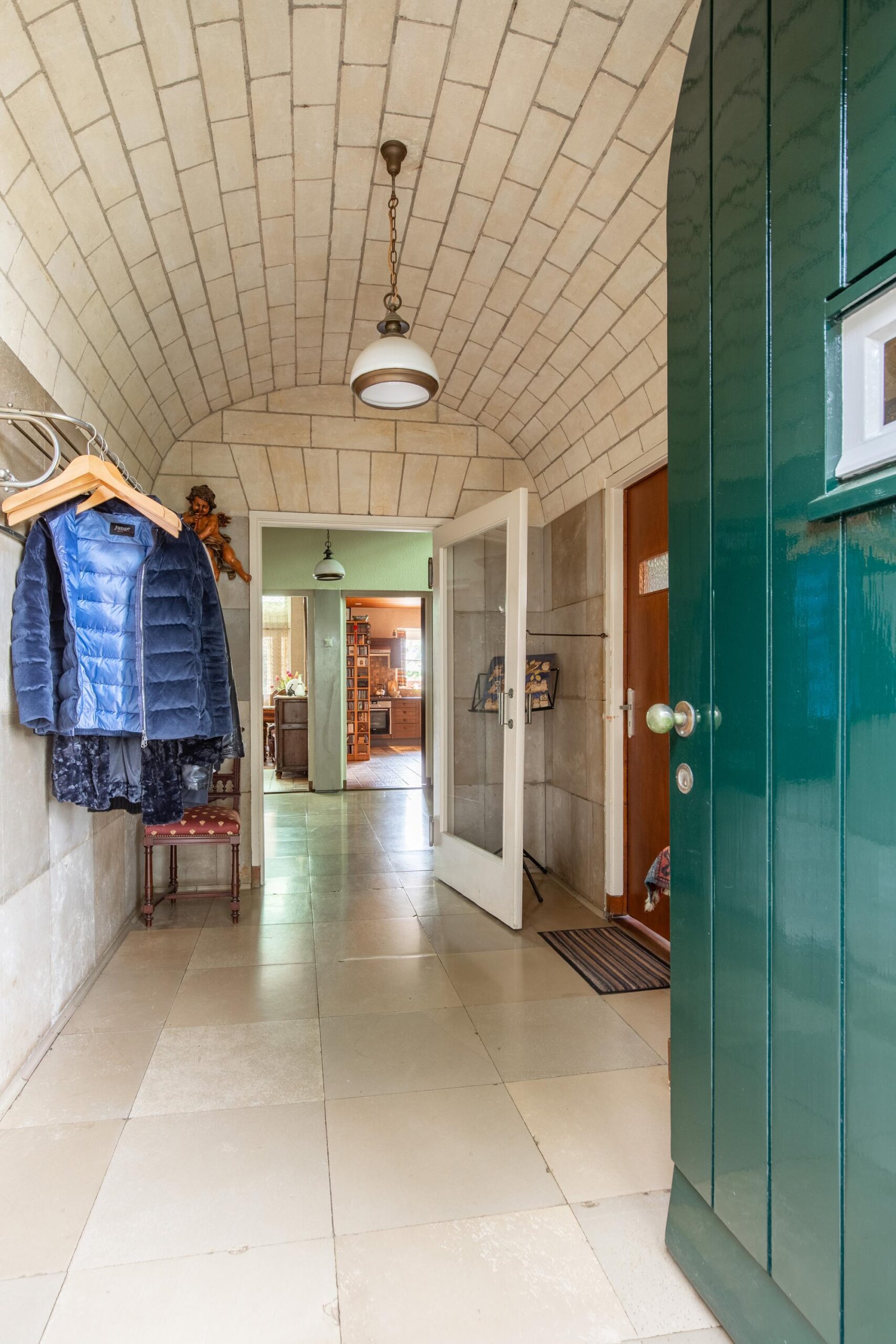 Ruime entree met garderobe en doorgang naar de hal, waar zich het trappenhuis en een toiletruimte bevinden. Vanuit de centrale hal is een aparte kamer van ca. 16 m² bereikbaar, ideaal als praktijk- of werkkamer.