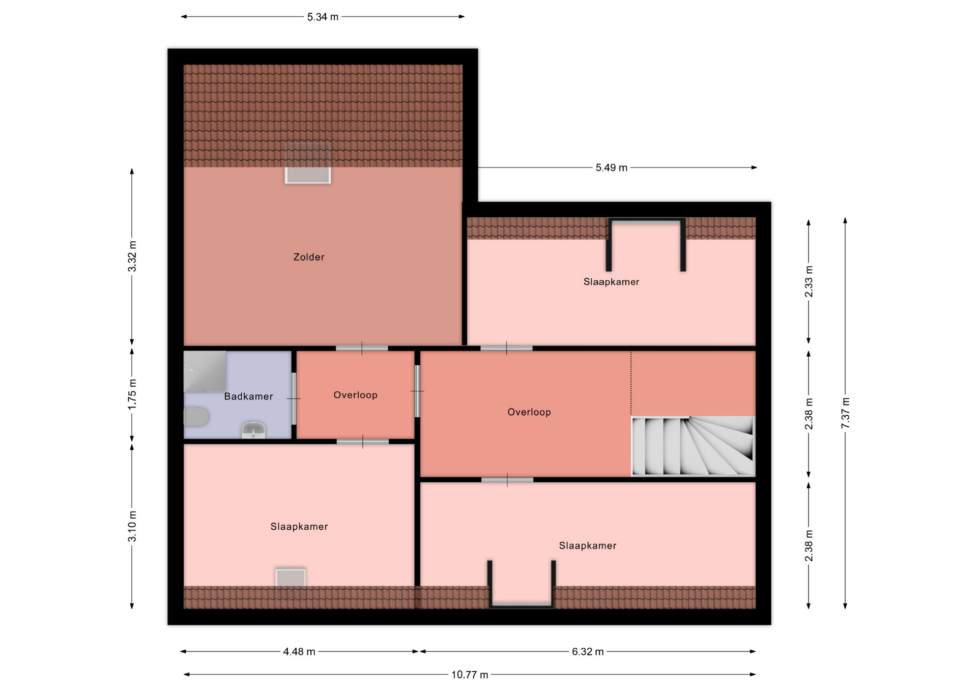 Op de tweede verdieping bevinden zich nog eens drie slaapkamers van ca. 15 m², 14 m² en 13 m². Vanuit de overloop is tevens de tweede badkamer (ca. 3 m²) bereikbaar, voorzien van een douche, toilet en wastafel. Daarnaast beschikt deze verdieping over een praktische bergruimte, vanwaar tevens een vliering bereikbaar is voor extra opslagruimte.
