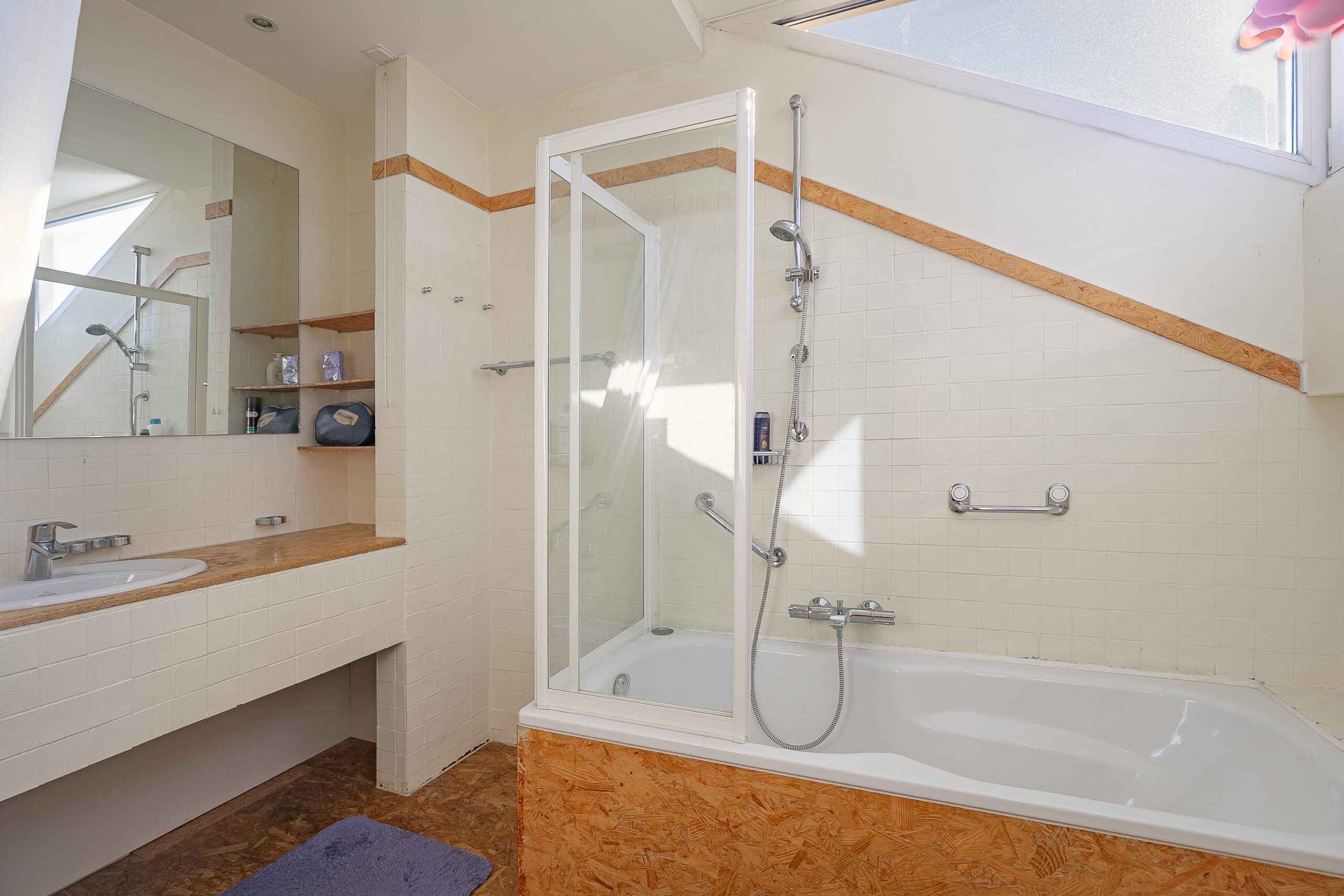 - Badkamervoorzieningen Douche, wastafel, ligbad, wastafel, douche, sauna