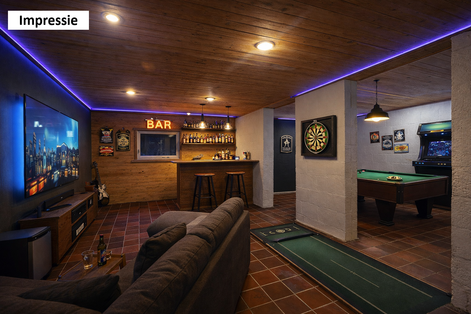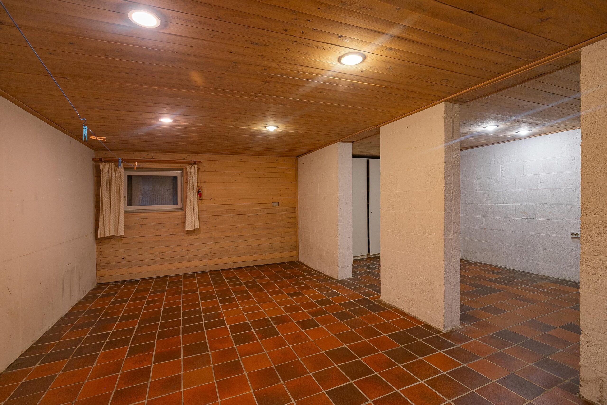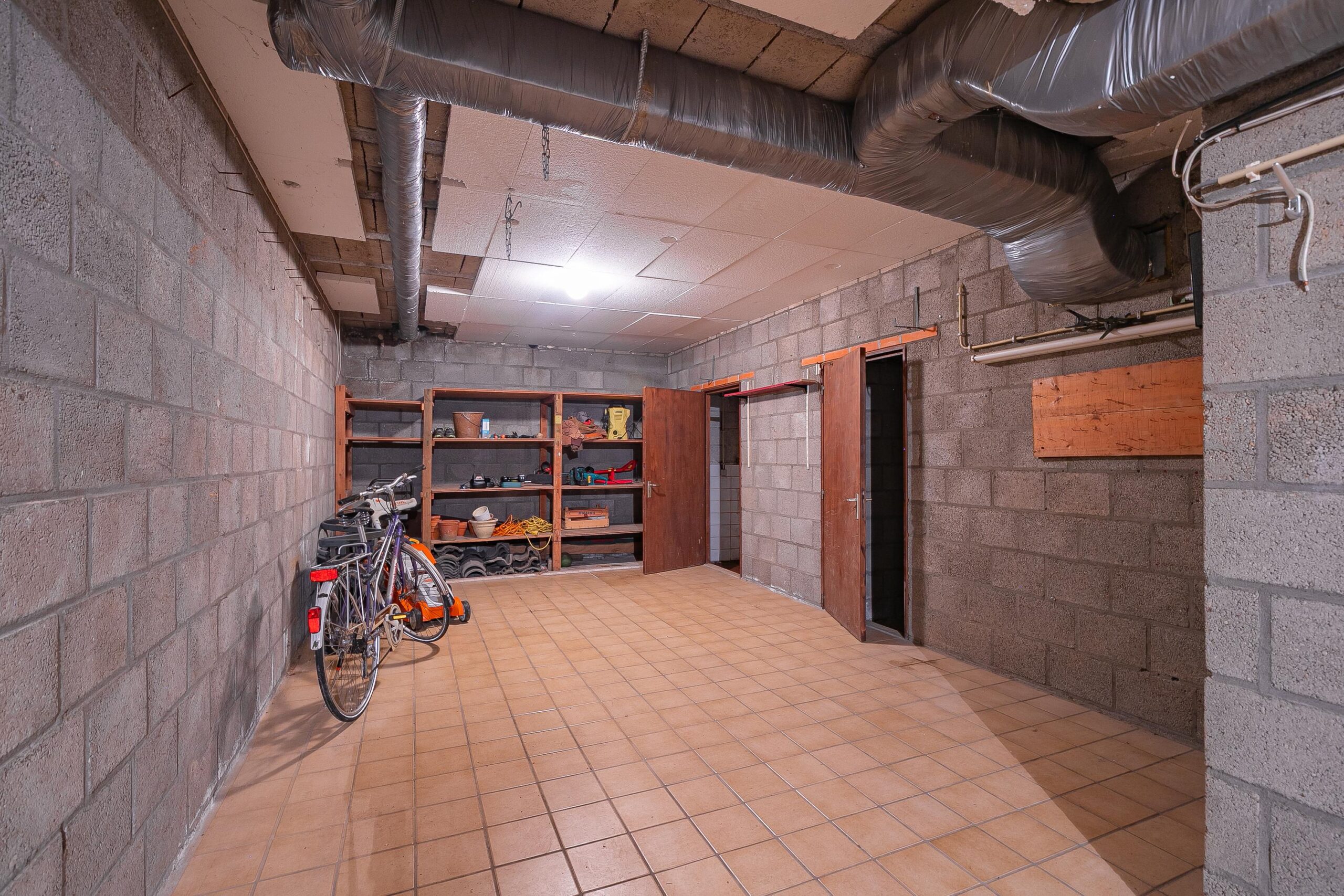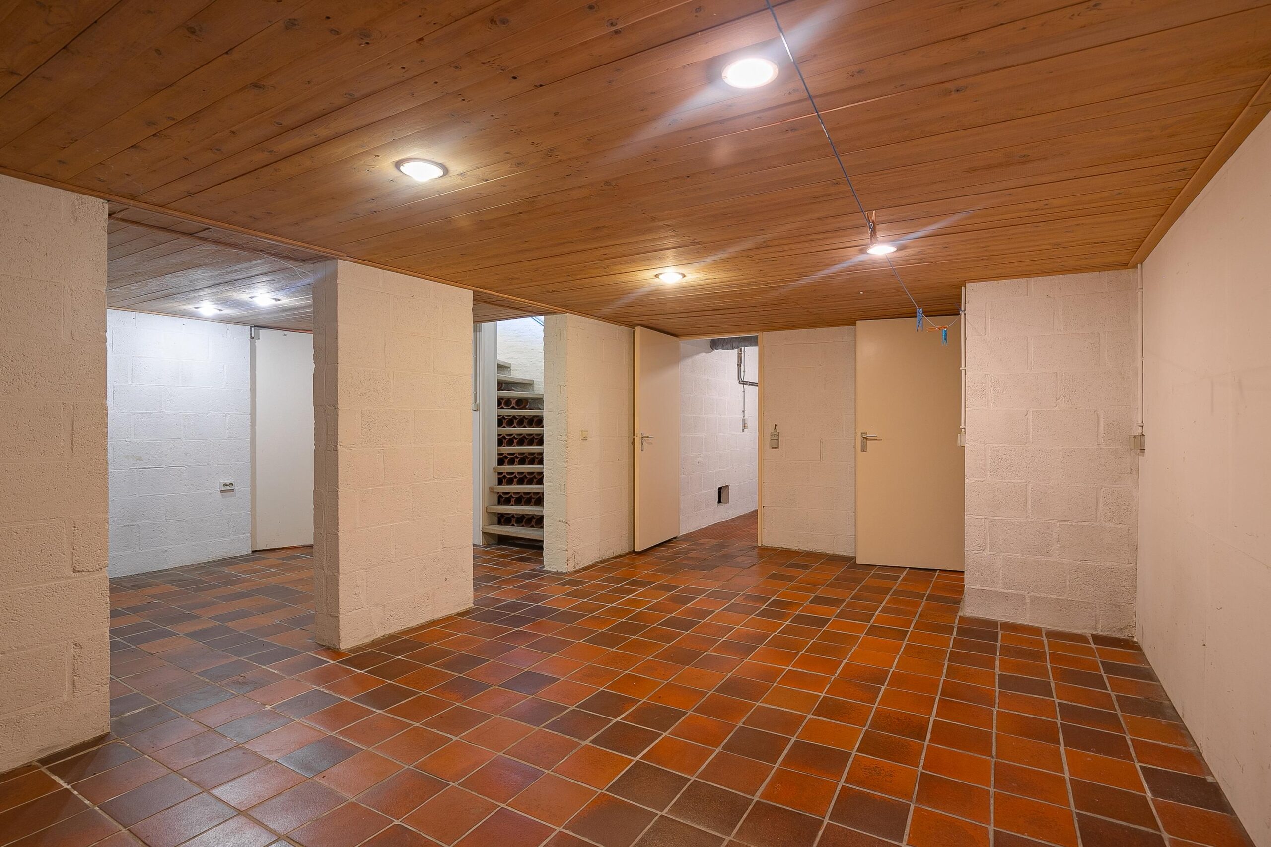 Vanuit de ruime oprit, welke plaats biedt voor het parkeren van meerdere voertuigen, bereikt men de ruime garage (ca. 42m²) welke is voorzien van een wateraansluiting, elektrische sectionaalpoort met loopdeur, elektrapunten en diverse berg- en stookruimtes. In totaal is het souterrain ca. 102m² groot. Naast de garage is een grote wasruimte aanwezig, evenals een badkamer met douche en sauna. Daarnaast is er een multifunctionele ruimte van ca. 34m² groot die toegang biedt tot het stijlvolle trappenhuis.