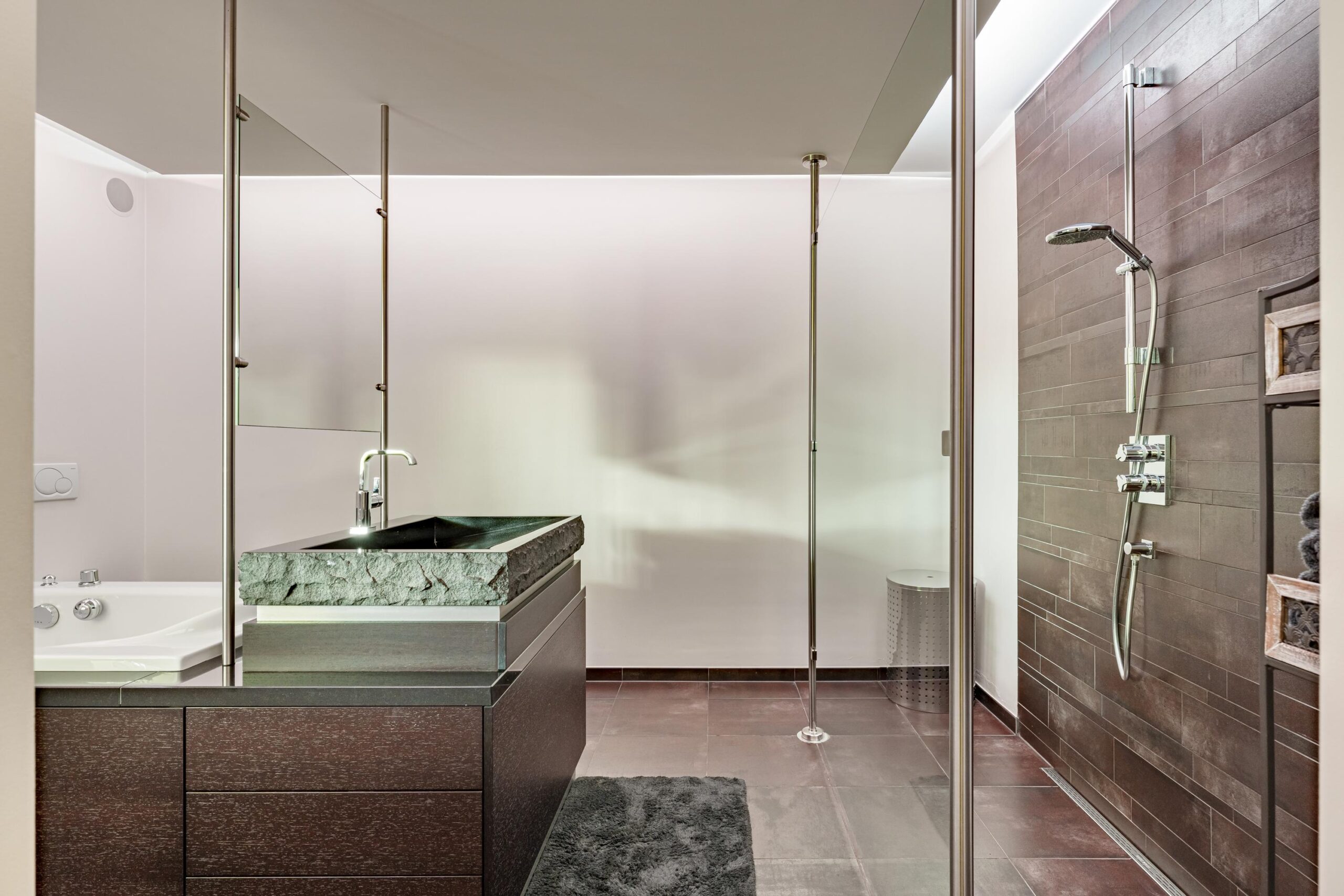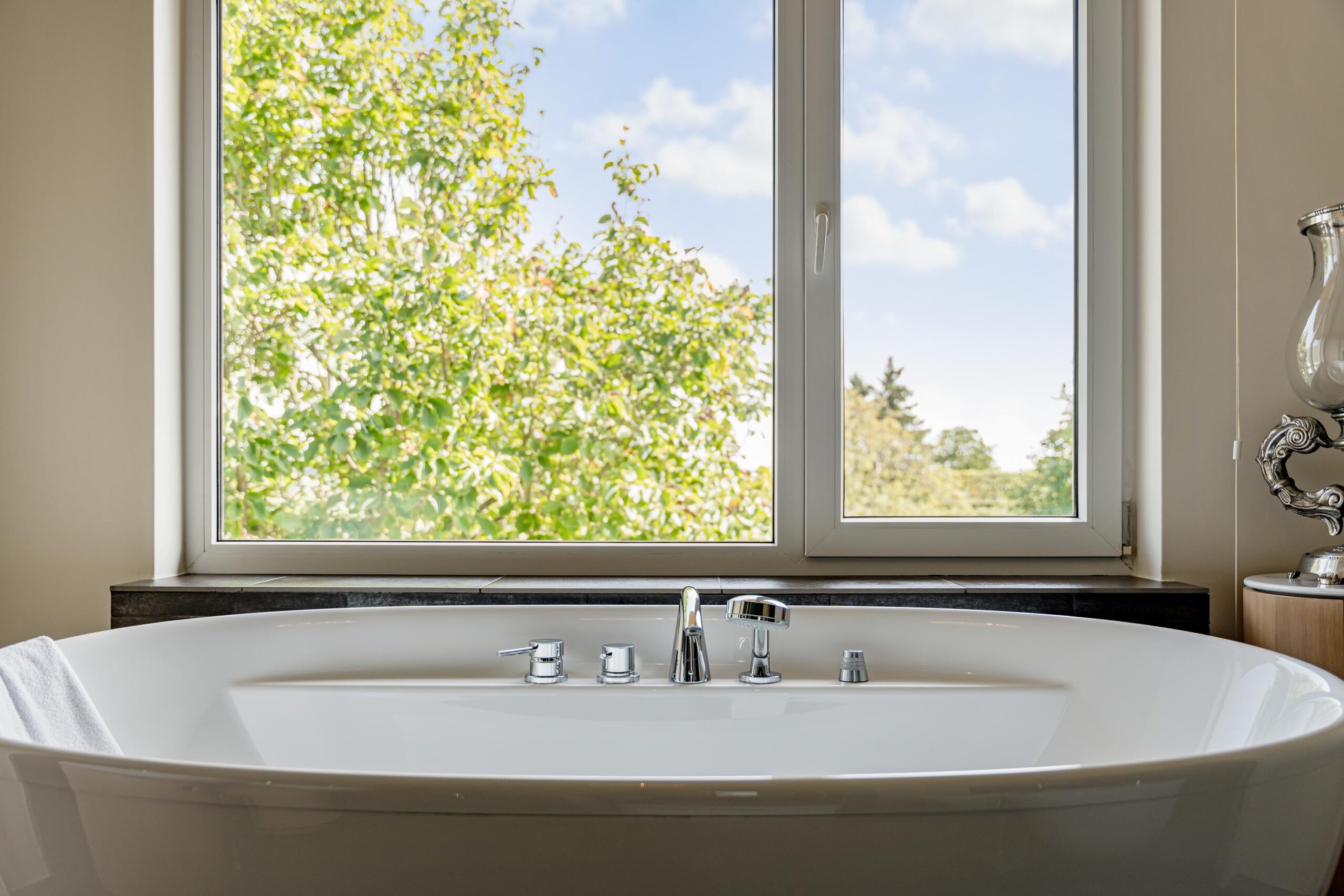 – Badkamer met ligbad met jetstreams, inloopdouche en wastafel