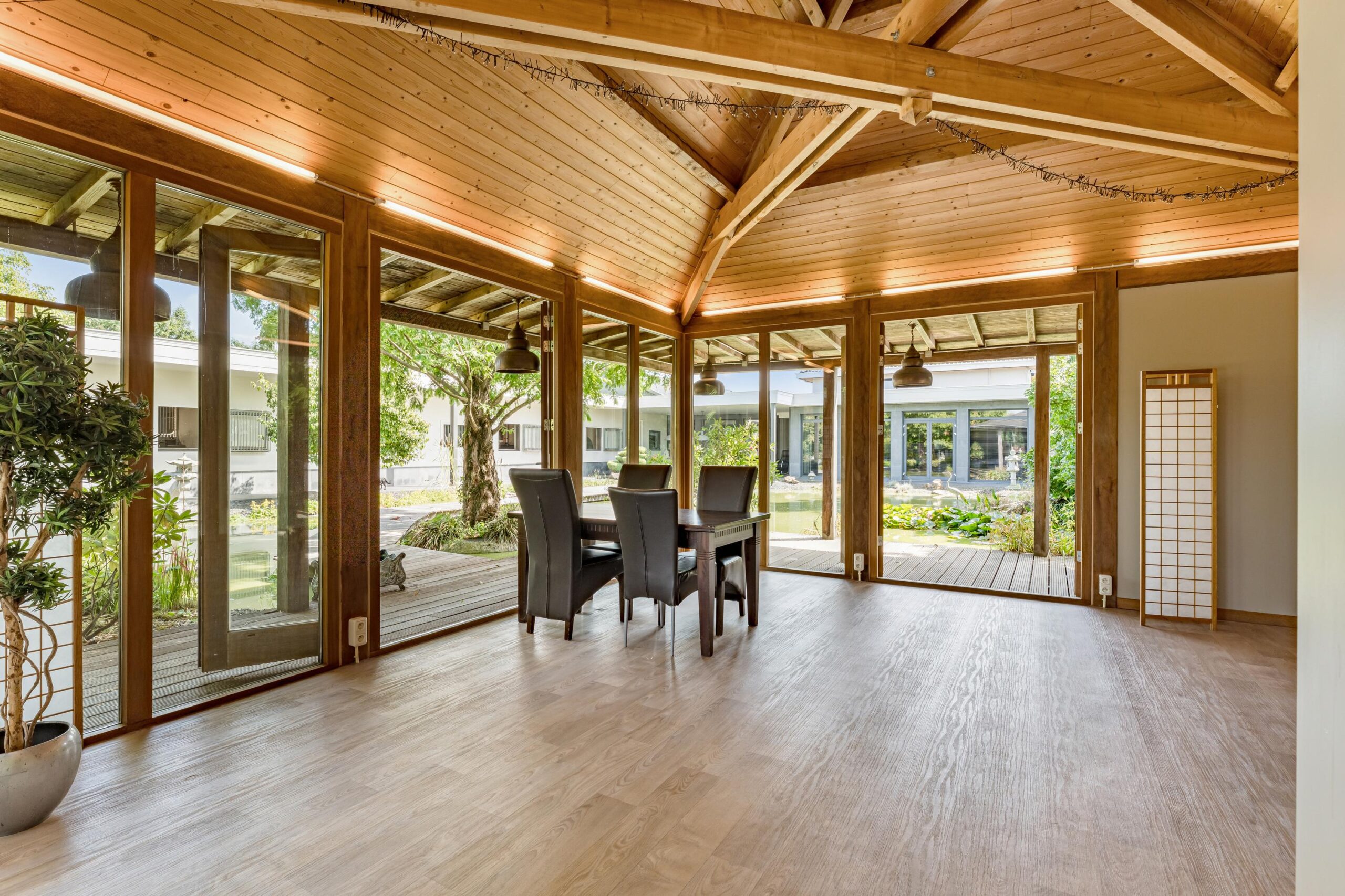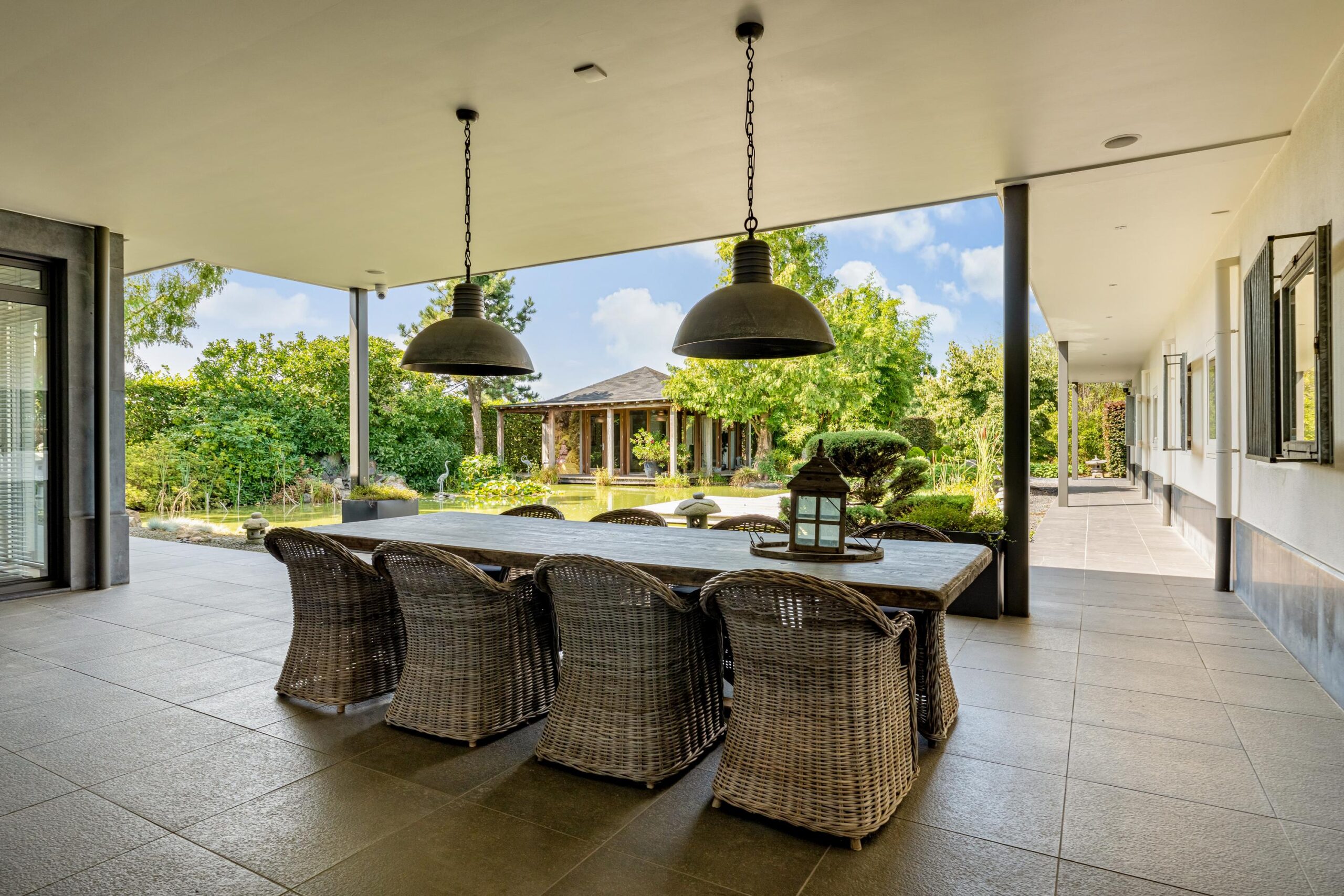 – Tuinhuis met twee toiletten, twee doucheruimtes, fitnessruimte en overdekt terras