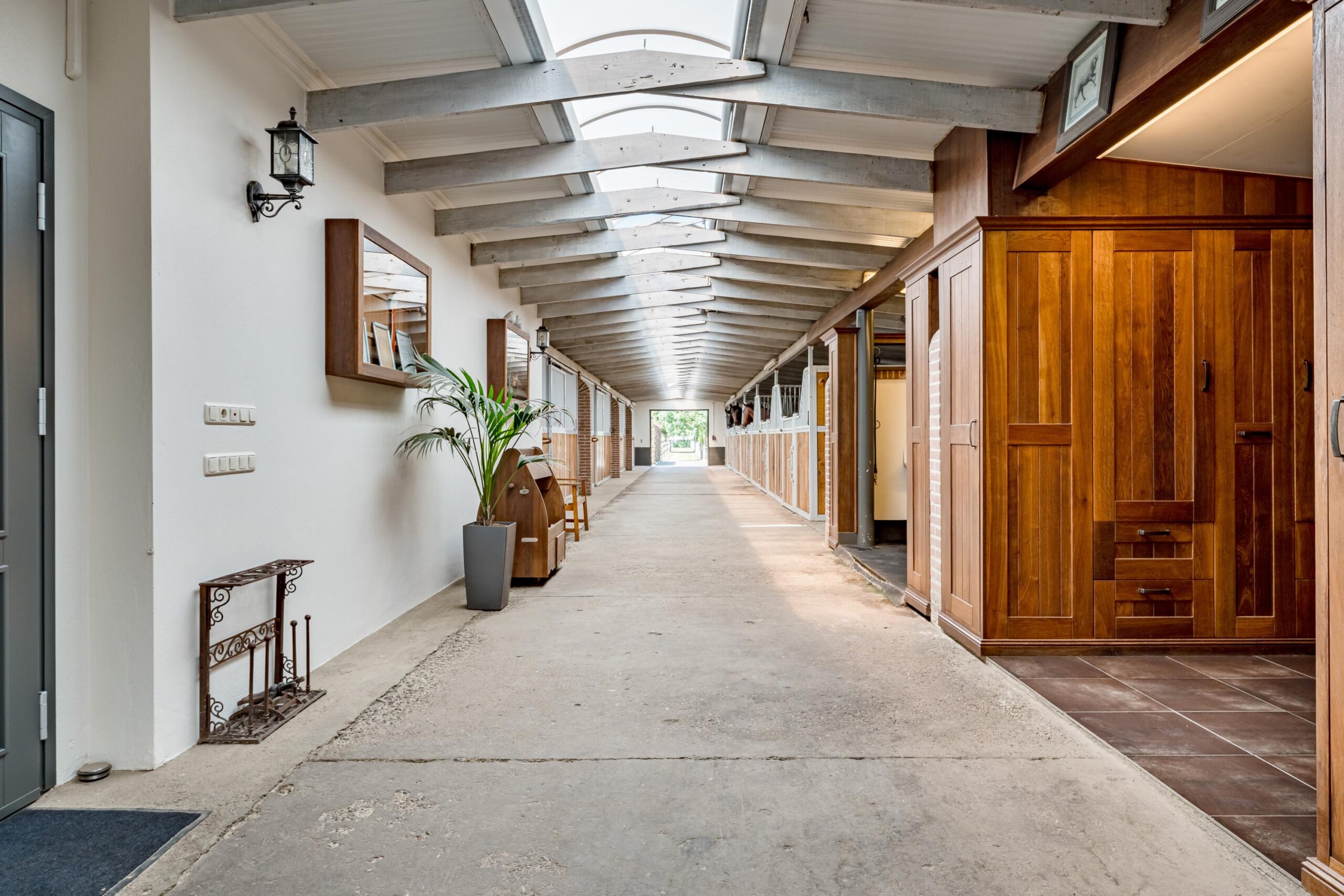 Deze ruime woning werd oorspronkelijk gebouwd in 1966 en in 2009 grondig gerenoveerd en uitgebreid. De eigendom omvat ook 55a45ca gehuurde grond van de Kerkfabriek van Elen, volledig geïntegreerd in het gebruik. Het domein is ideaal uitgerust voor paardenliefhebbers en beschikt over een vergunde accommodatie voor 17 paarden, waaronder 10 boxen. Voorzieningen zoals een overdekte longeerpiste, een buitenlooppiste van 62 x 25 meter en automatische beregening op grondwaterputten met zuiveringsinstallatie maken dit geheel tot een bijzonder functioneel en professioneel uitgebouwd paardencomplex.
