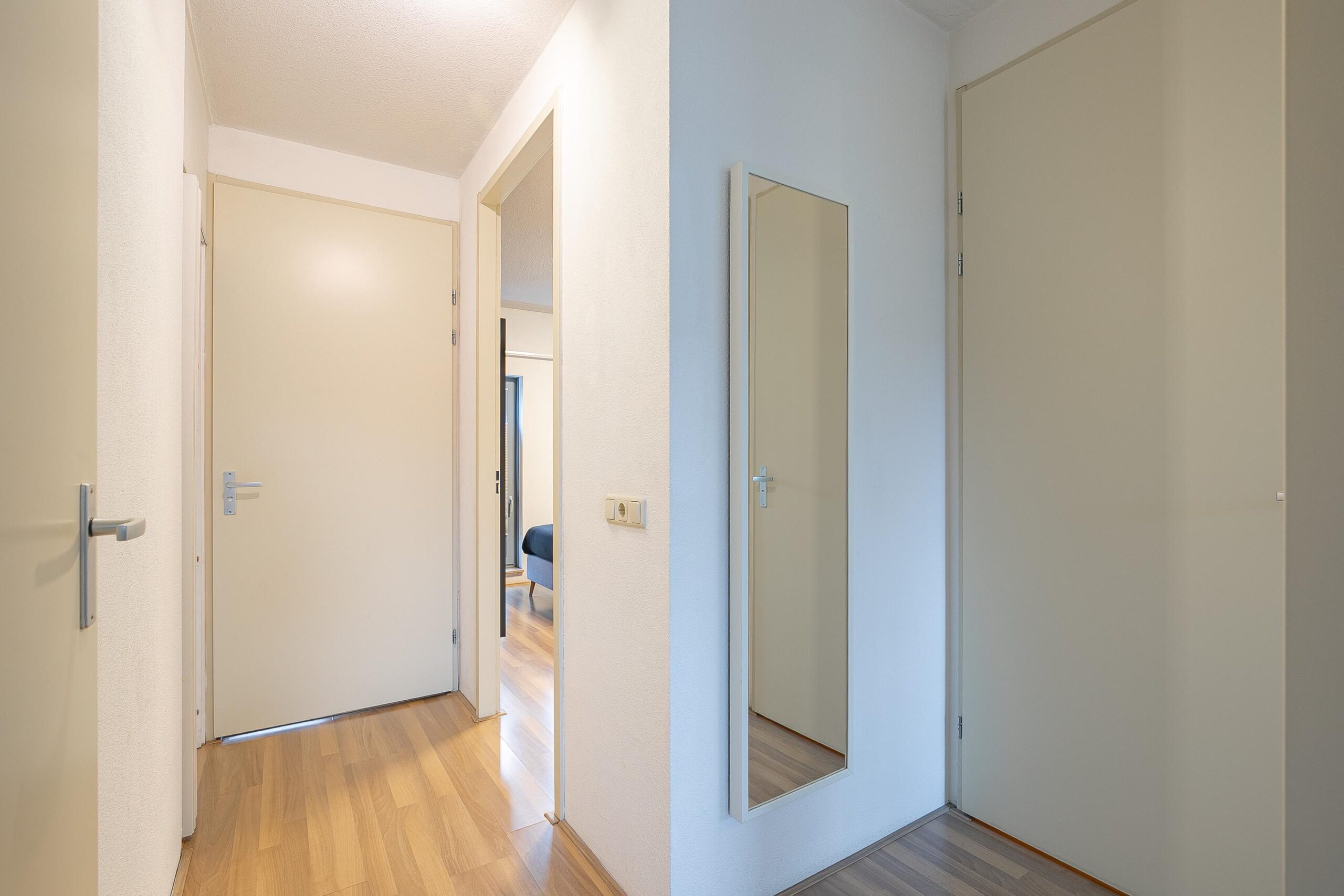 Hal, grotendeels betegelde toiletruimte met zwevend toilet en fontein, berging met garderobe en meterkast met dag- en nachtstroom.