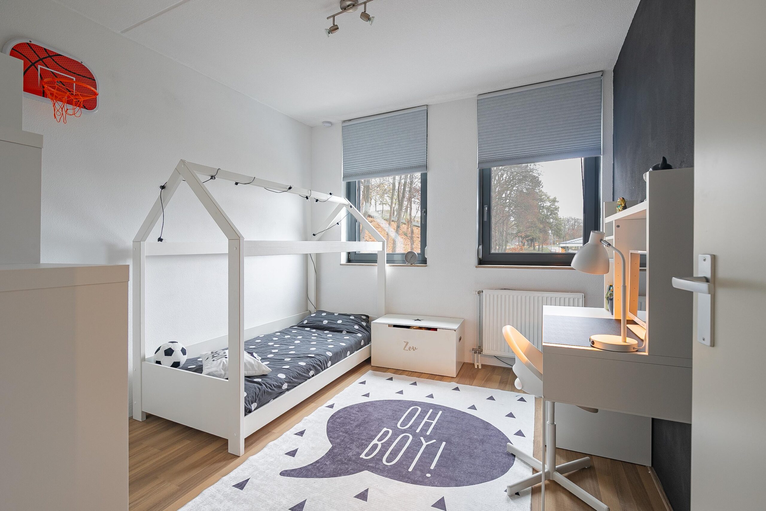 Op een rustige locatie vrijstaande zeer goed onderhouden geschakelde woning met 5 slaapkamers, garage, voor- en achtertuin, 14 zonnepanelen en 3 airco installaties gelegen te Brunssum, Limburgiaplantsoen 31.