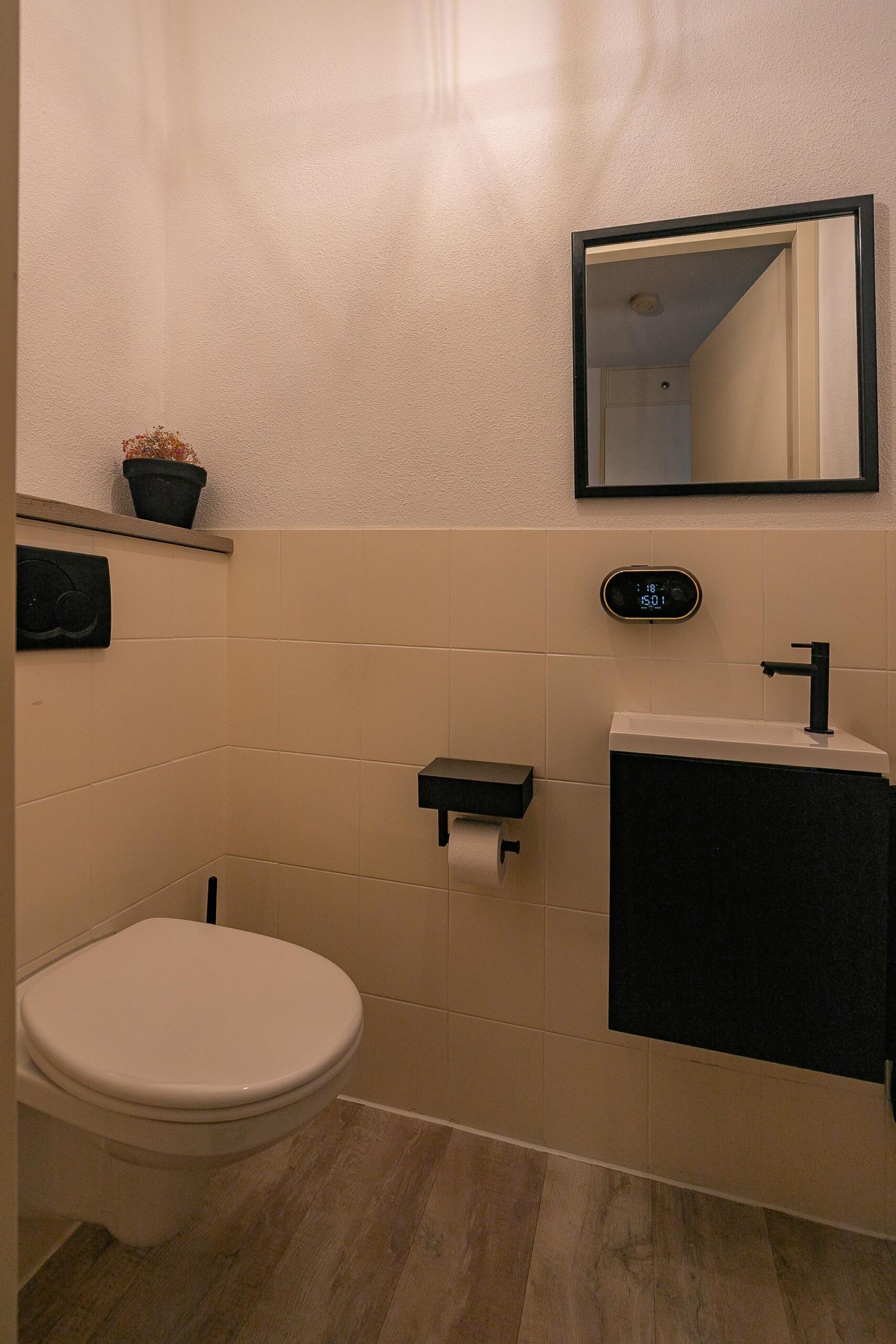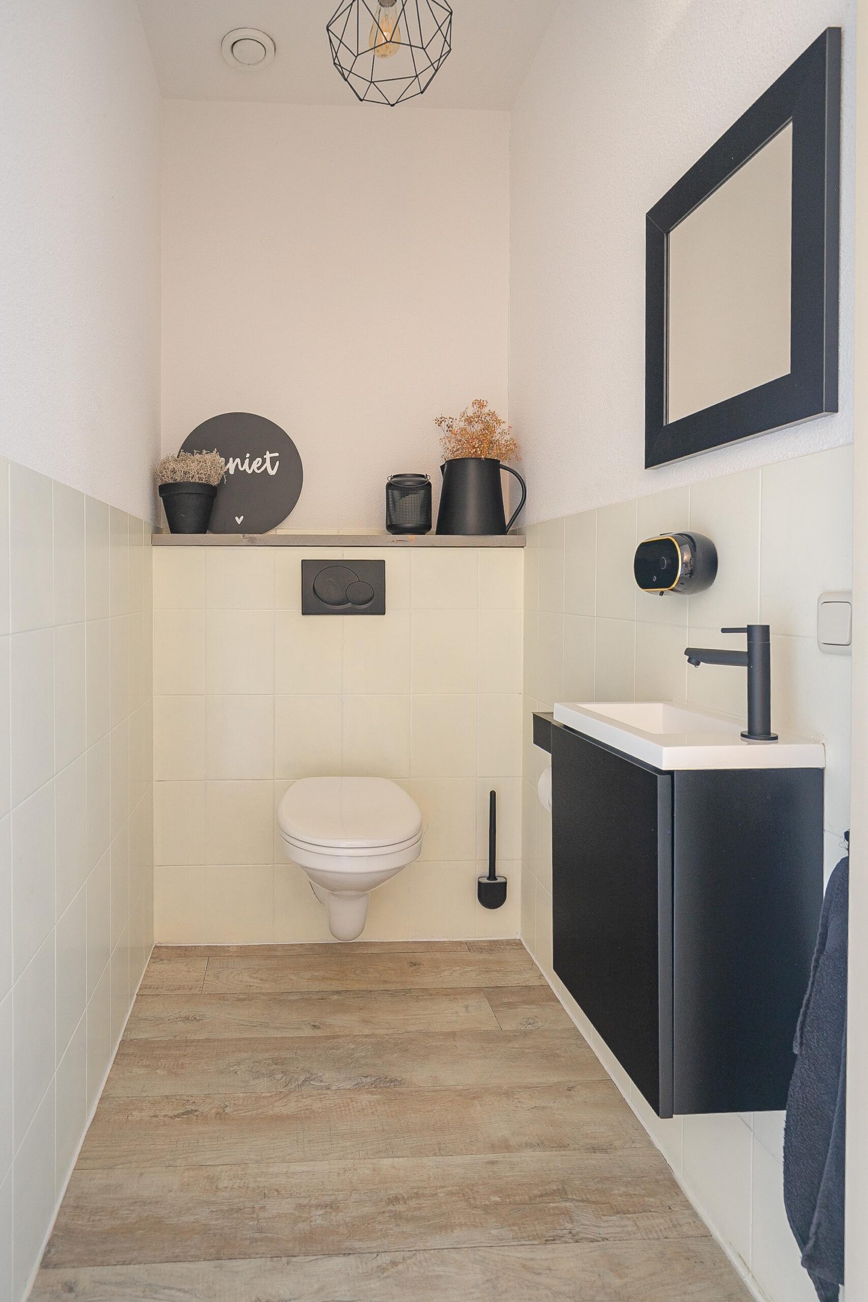 Separate toiletruimte met 2e zwevend toilet en fontein.