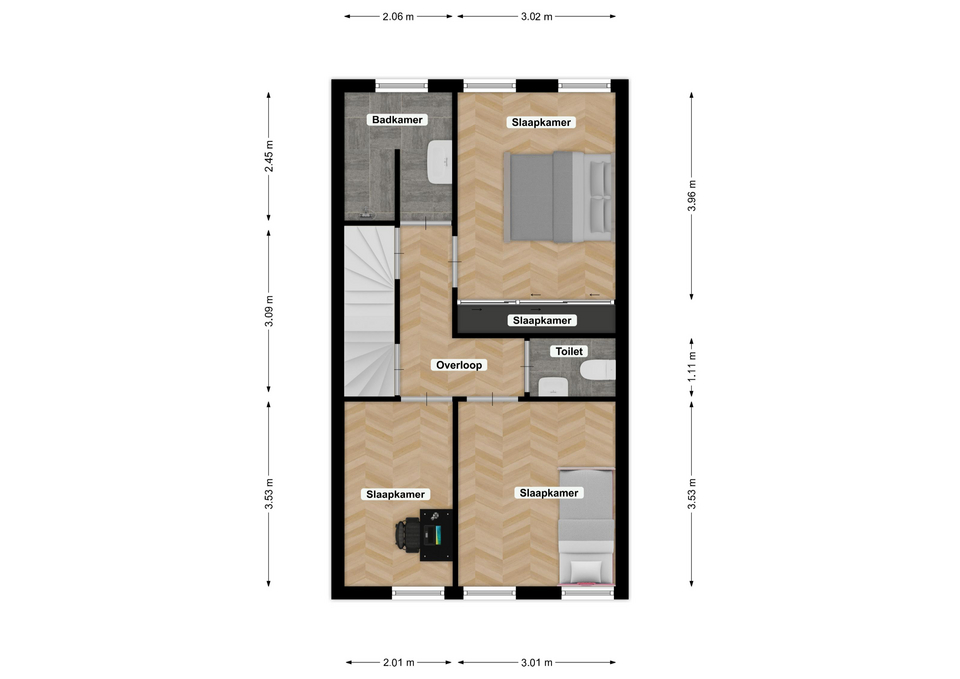 4e Slaapkamer met laminaatvloer en airco installatie.