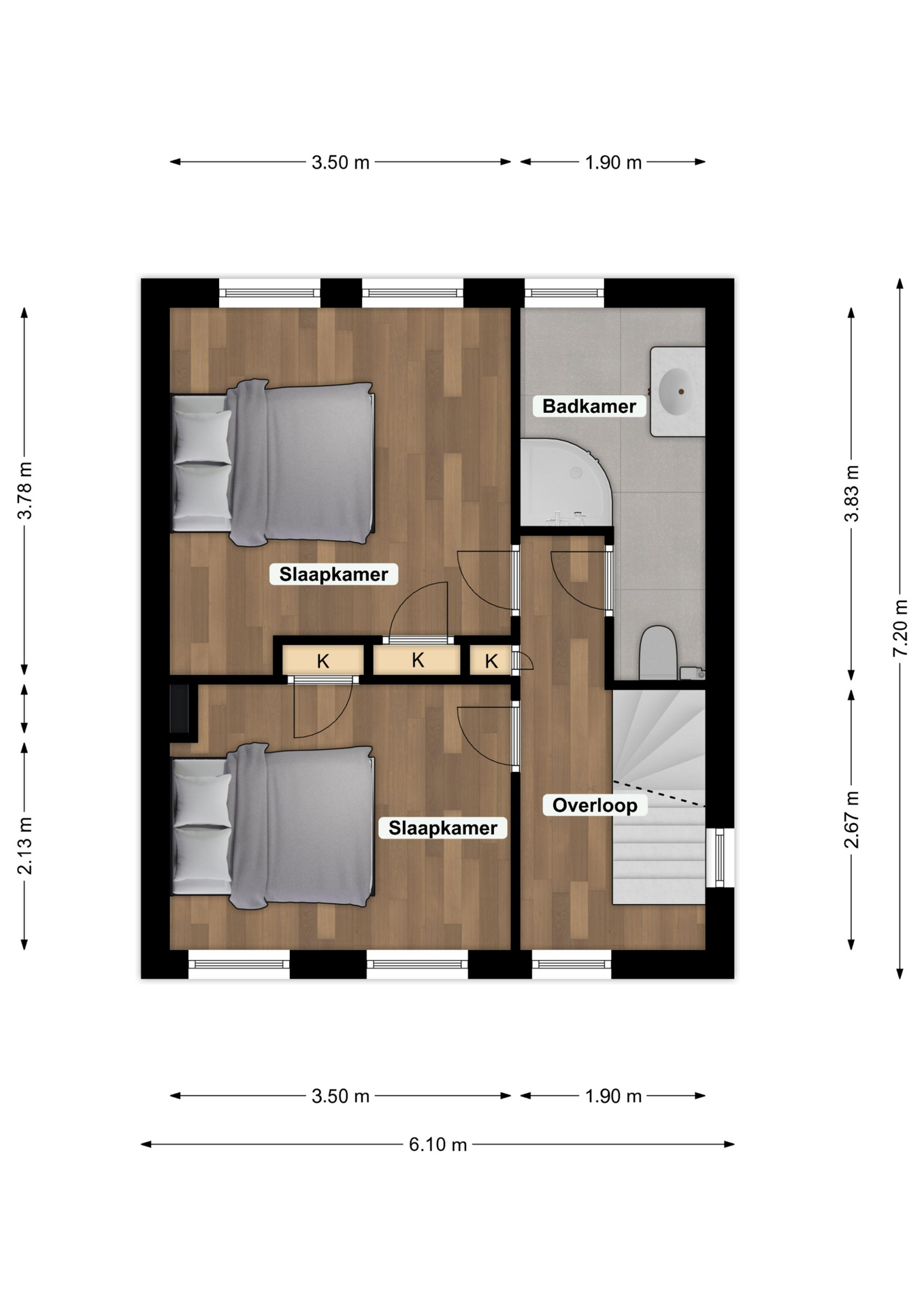 2) 3.50m x 2.13m