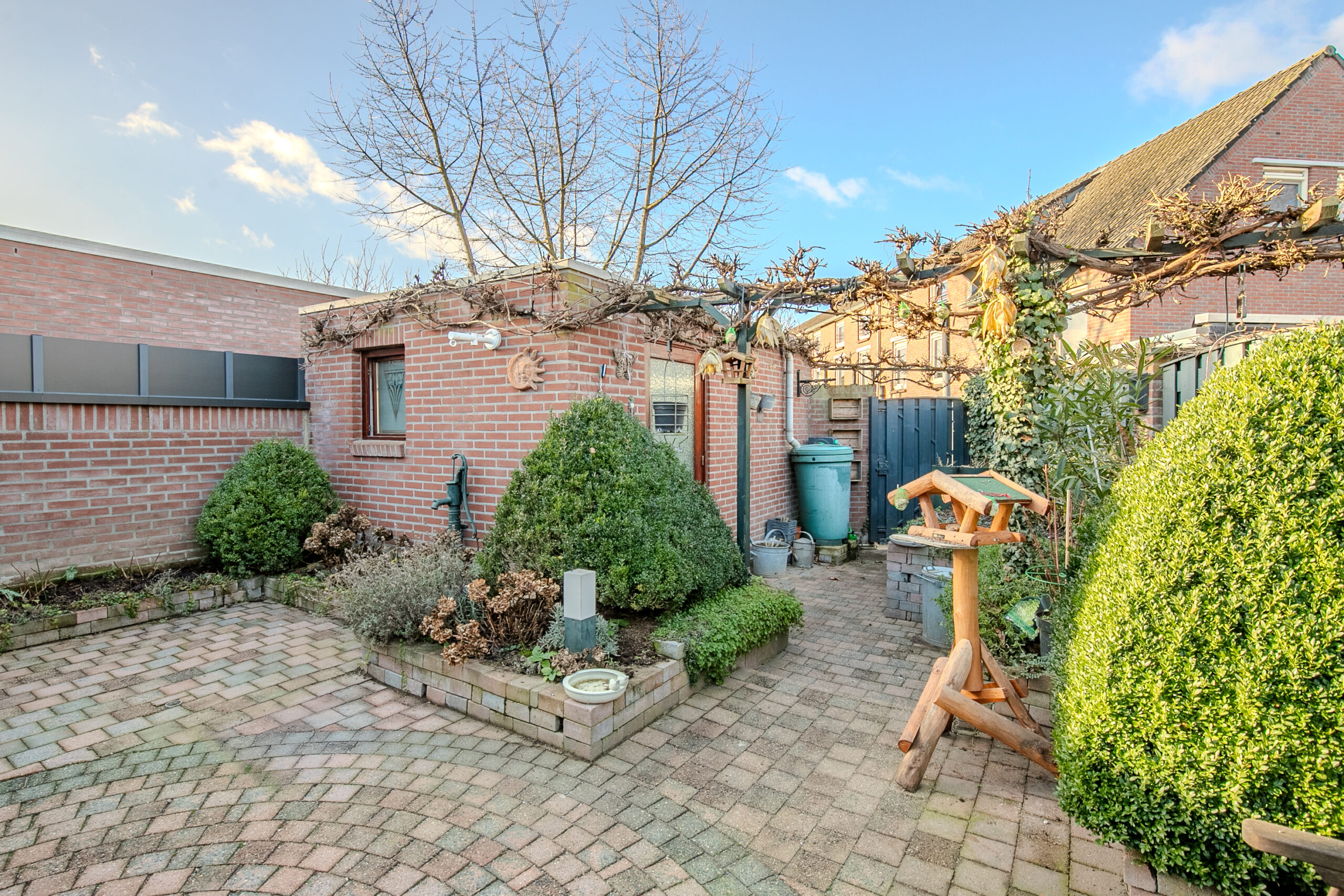 De fraai aangelegde tuin, voorzien van een stenen berging en diverse borders, is gelegen op het westen en is tevens via de achterzijde bereikbaar.