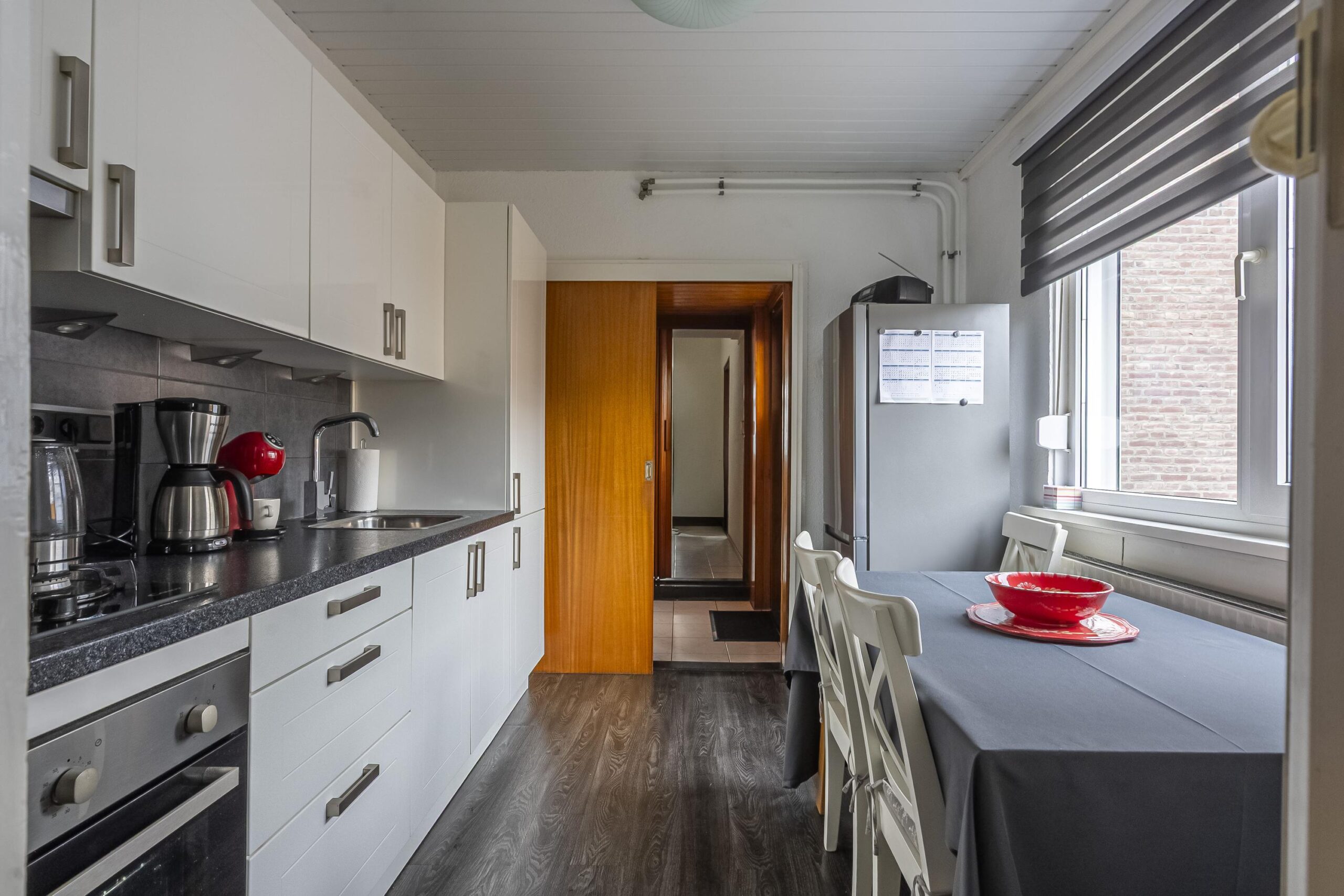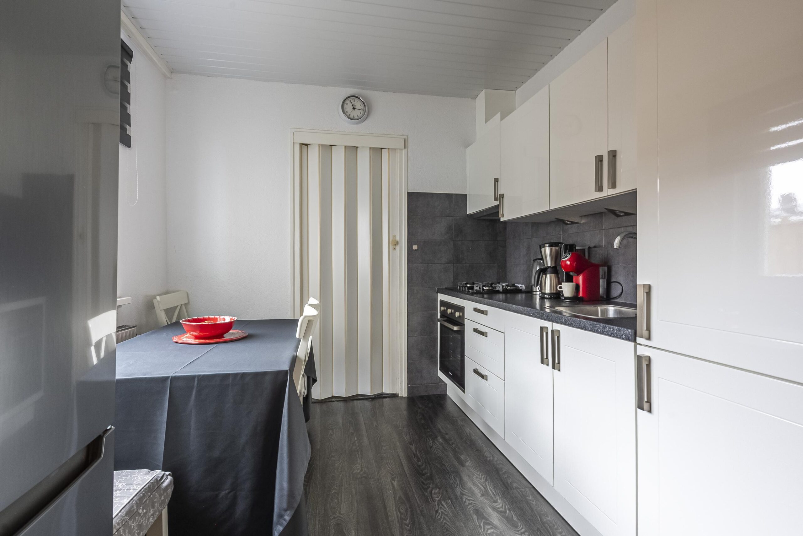 De gesloten keuken is groot ca. 8 m² en is voorzien van een recht opgestelde keukeninrichting met de navolgende apparatuur: 4-pits gaskookplaaat, afzuigkap en oven.