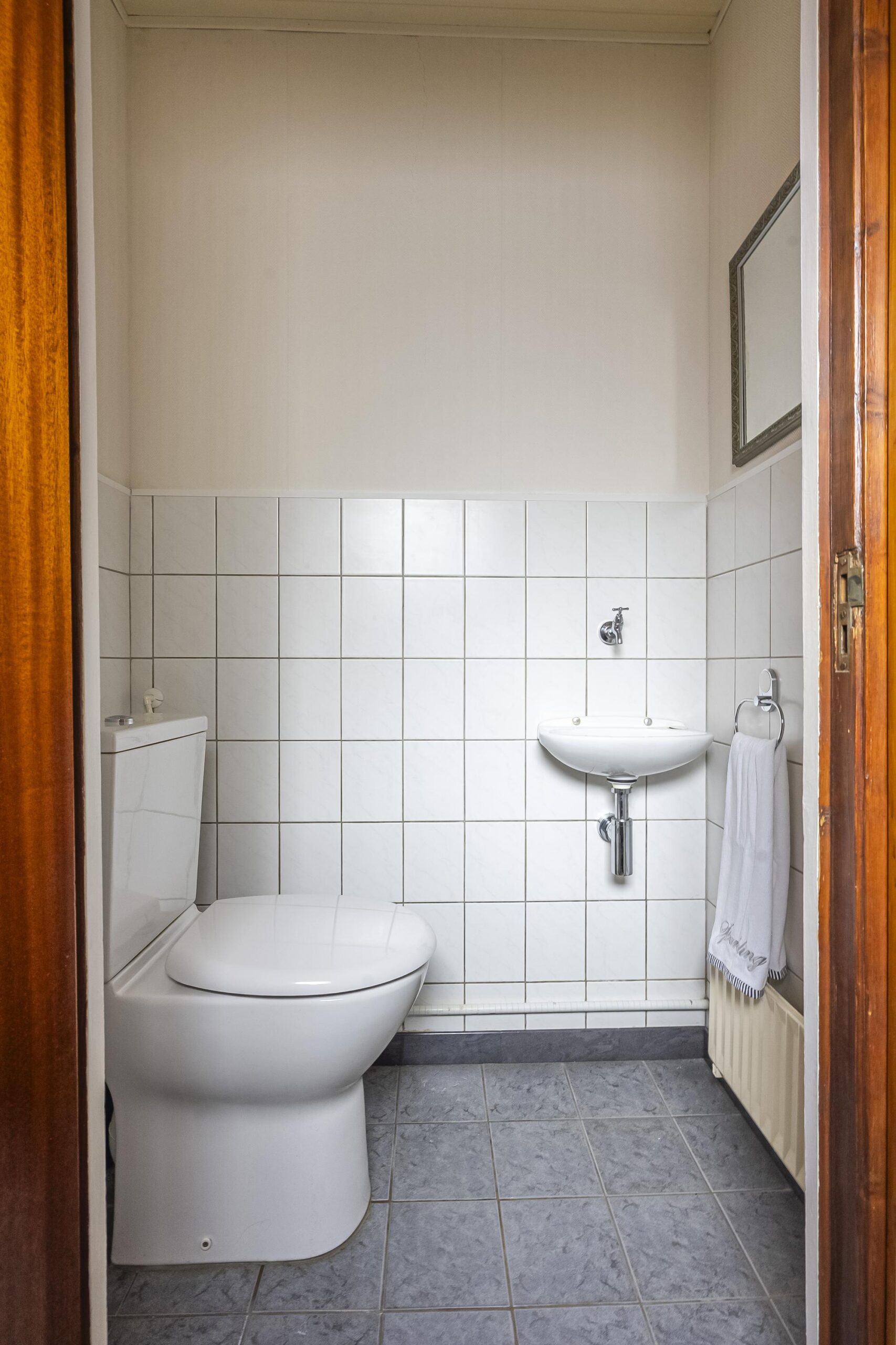 Achter de keuken is de badkamer gelegen. De badkamer is groot ca. 6 m² en is voorzien van een douche en een vaste wastafel. Tevens is op de badkamer de aansluiting voor de wasmachine alsmede de CV-ketel gesitueerd.