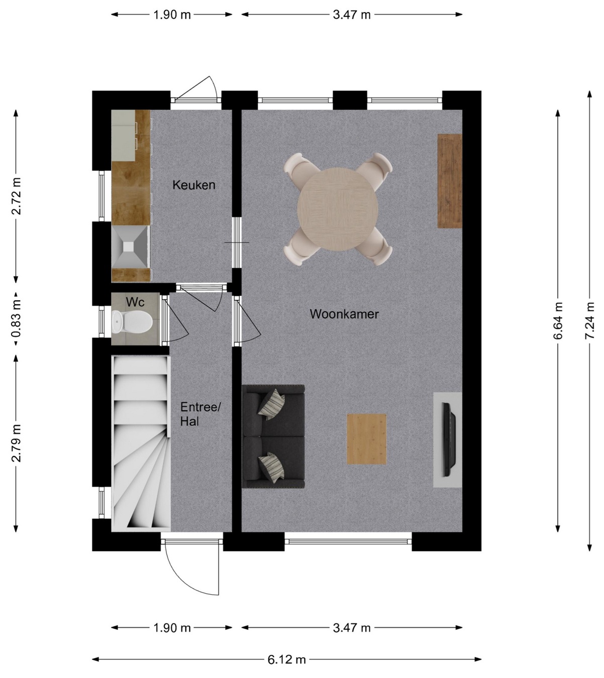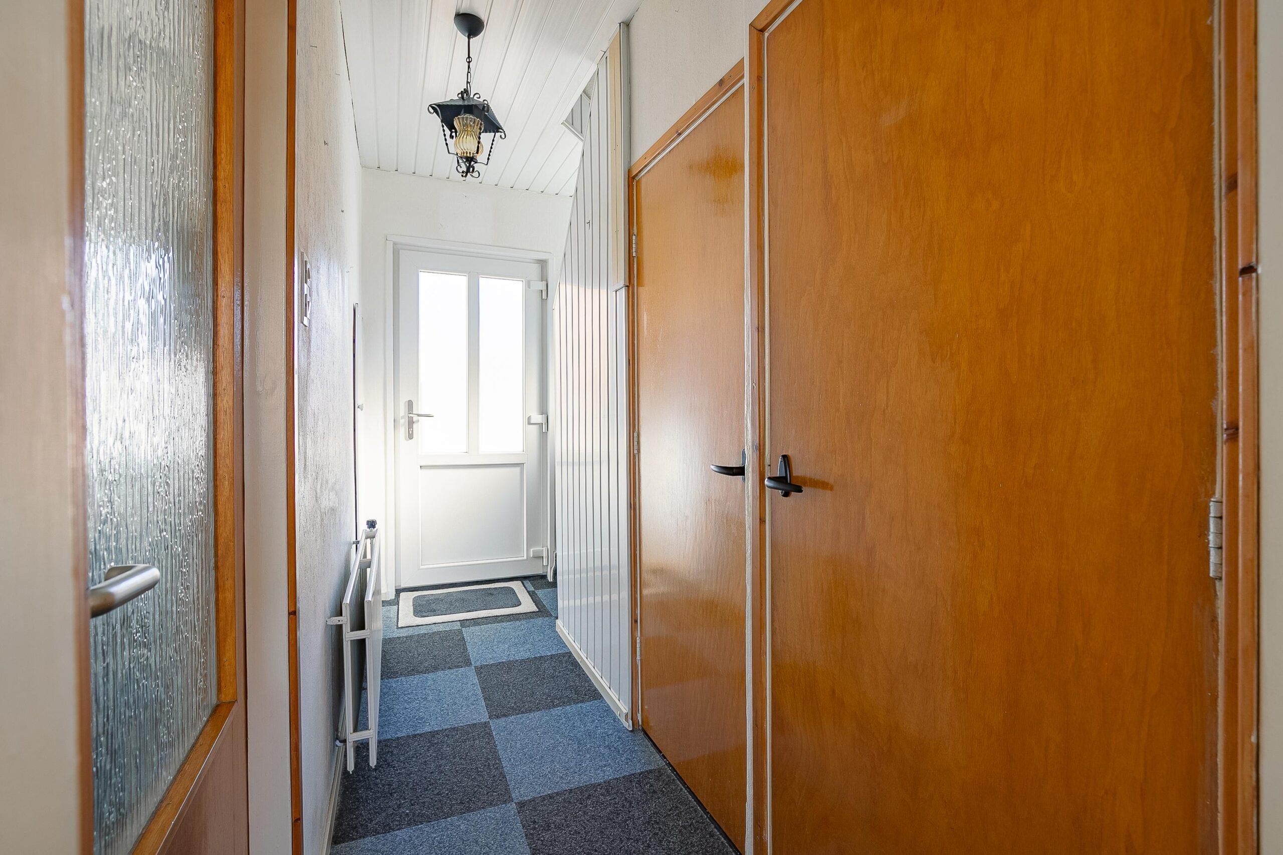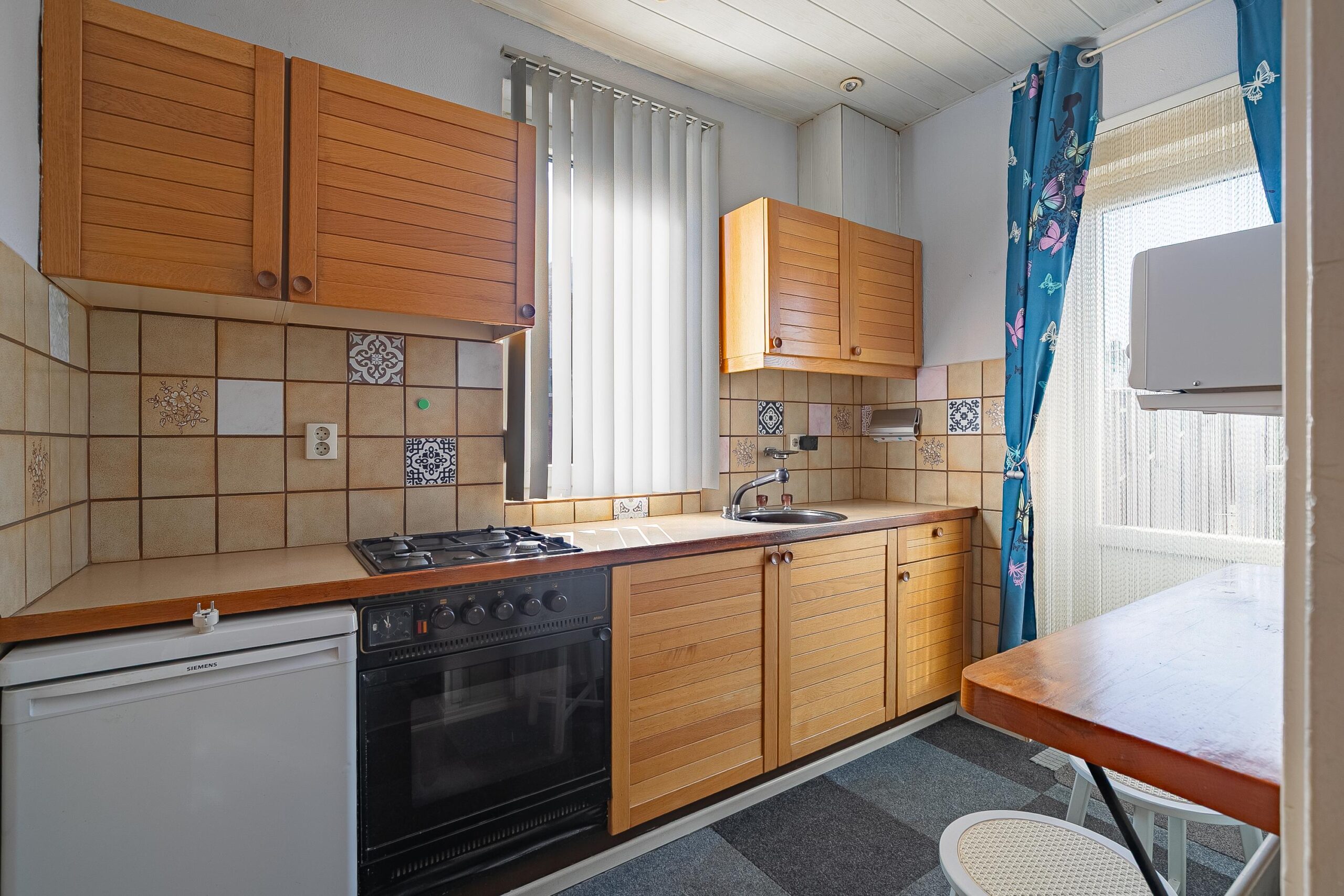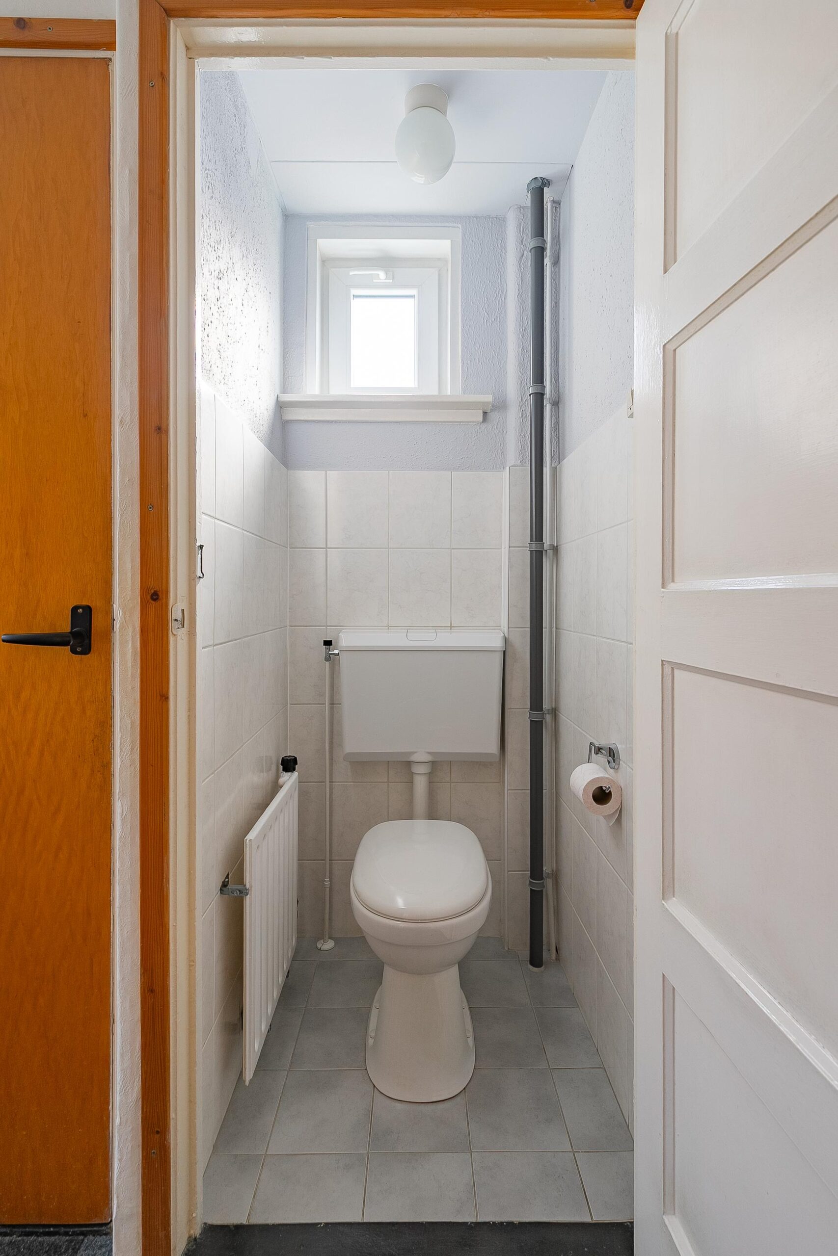 Begane grond: entree, hal, moderne meterkast, half betegeld toilet. De woonkamer heeft een gashaard en de keuken is gesloten en ingericht met een eenvoudig keukenblok en voorzien van een 4-pits gaskookplaat en oven. Toegang tot de tuin; onderhoudsvriendelijk aangelegd met tevens groot zij-perceel. Er is een stenen buitenberging; vrijstaand.
