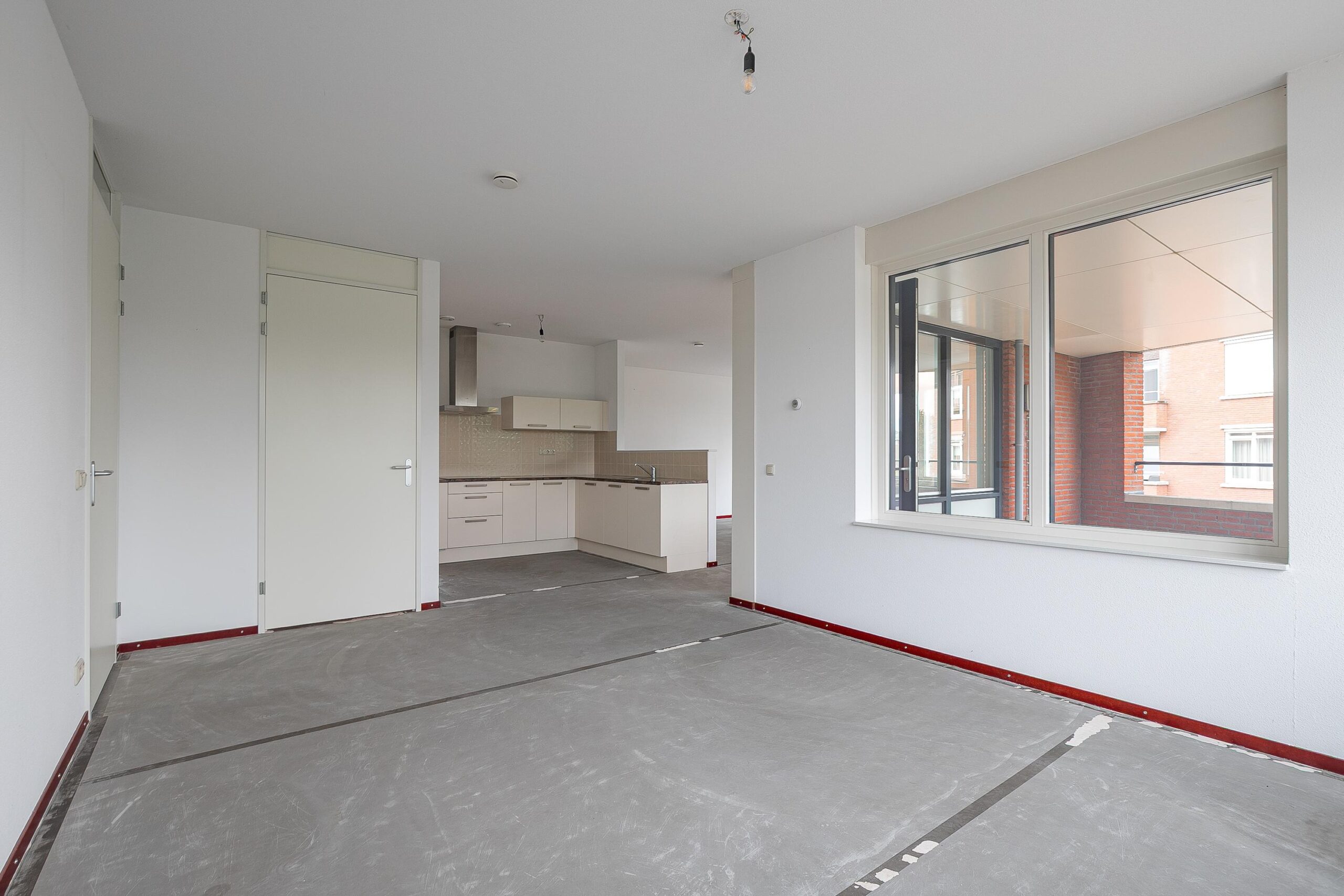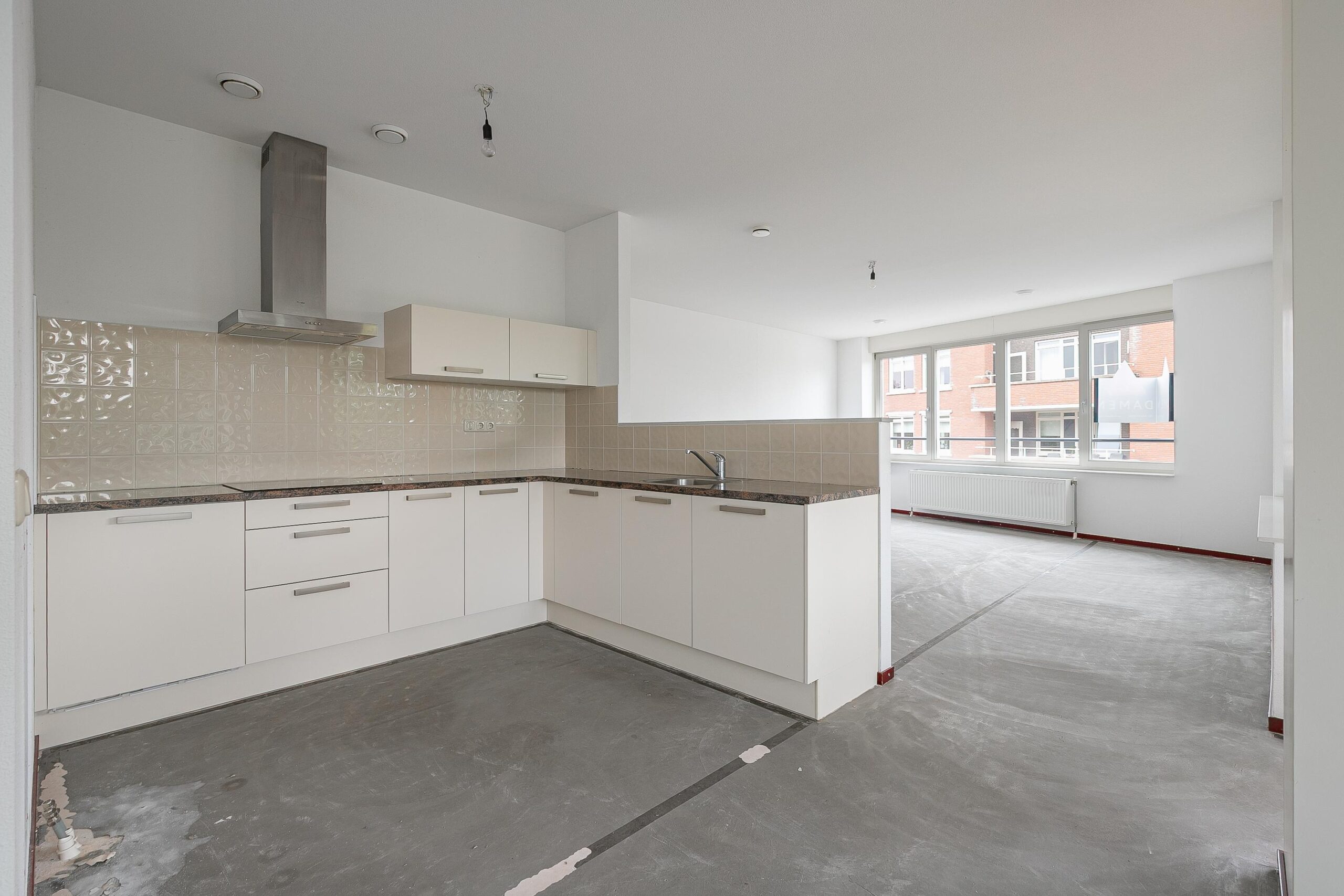 Bij binnenkomst via de hal zijn het gastentoilet en de meterkast bereikbaar, evenals de toegang tot de woonkamer. De lichte woonkamer met open keuken biedt veel ruimte en staat in directe verbinding met het ruime balkon van ca. 16.5m². De keuken is voorzien van diverse inbouwapparatuur, waaronder een koelkast, vriezer, inductiekookplaat, afzuigkap, gootsteen en voldoende bergruimte.