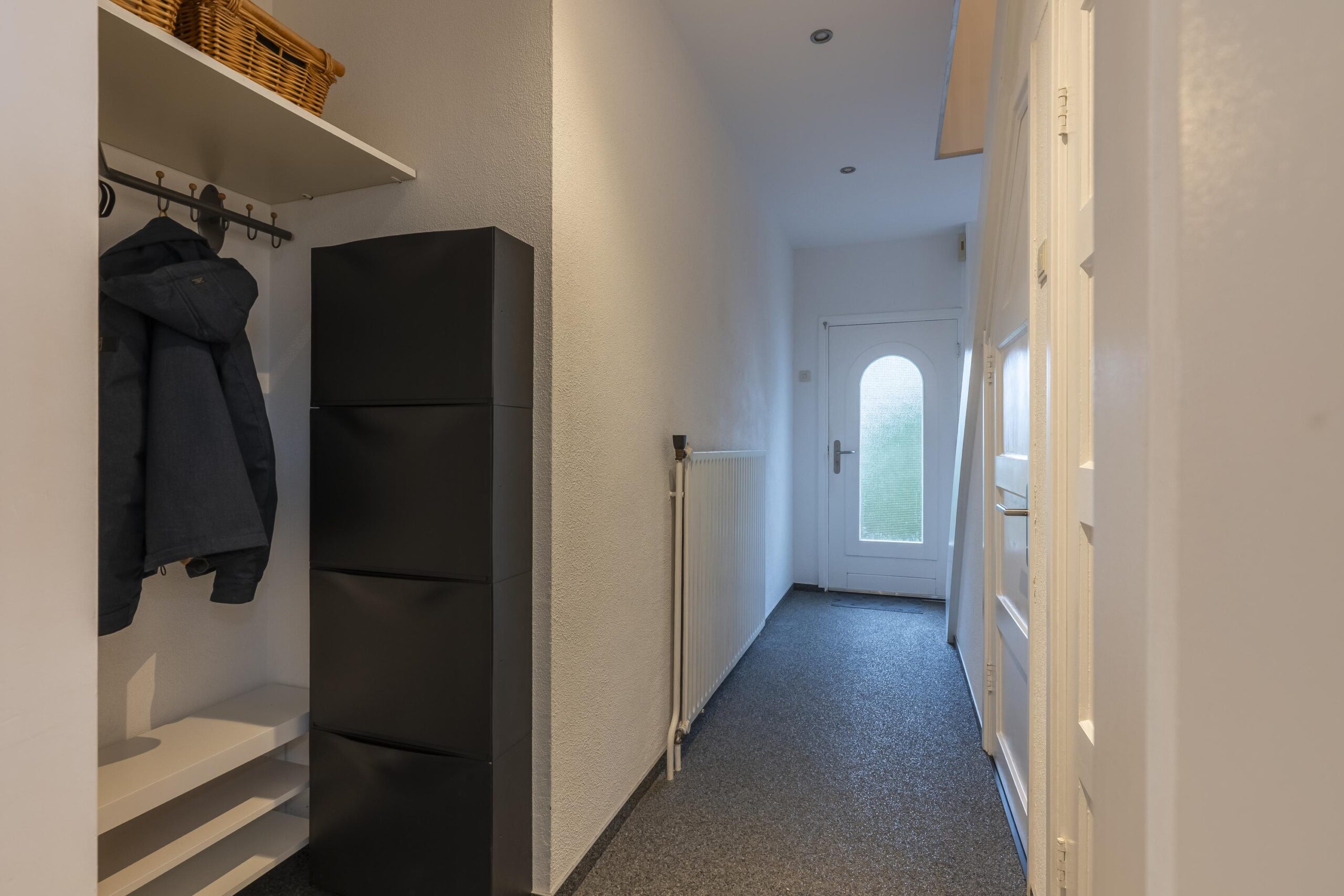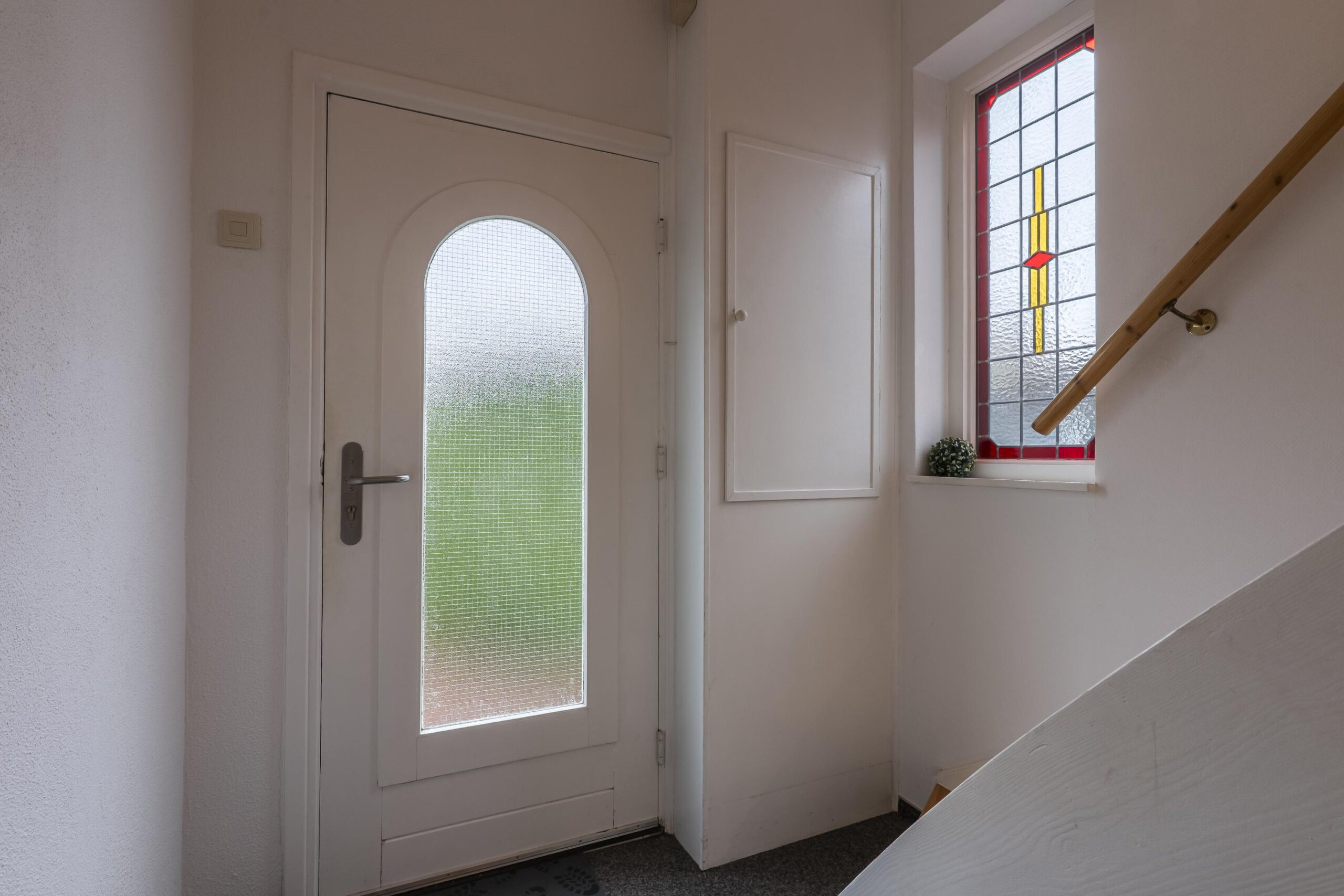 Via de fraai aangelegde voortuin bereik je de entree. De ruime hal verwelkomt je met een authentieke trap naar de eerste verdieping, een sfeervolle glas-in-lood raampartij, vernieuwde meterkast, garderobenis en een deels betegeld vrijhangend toilet met fonteintje.
