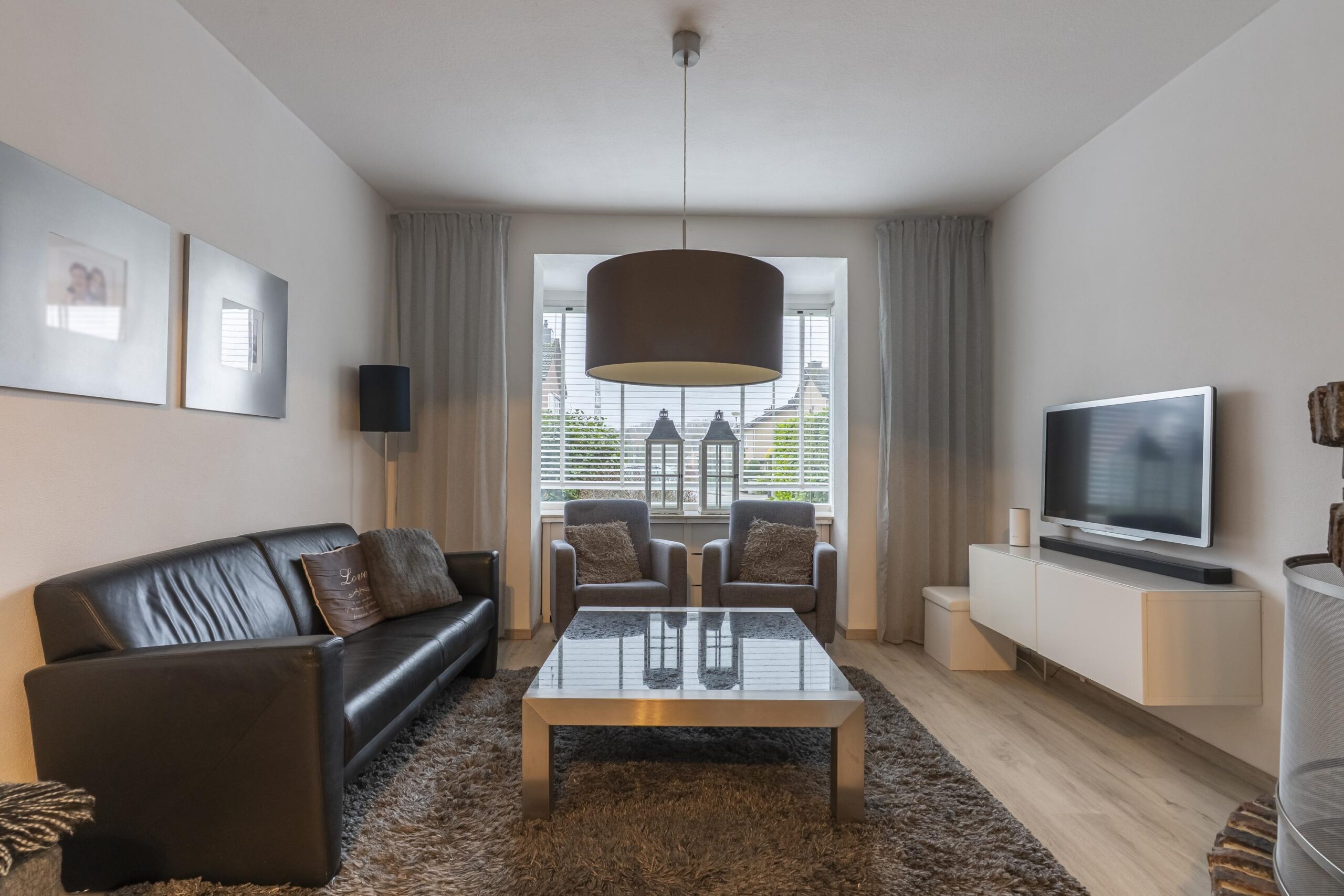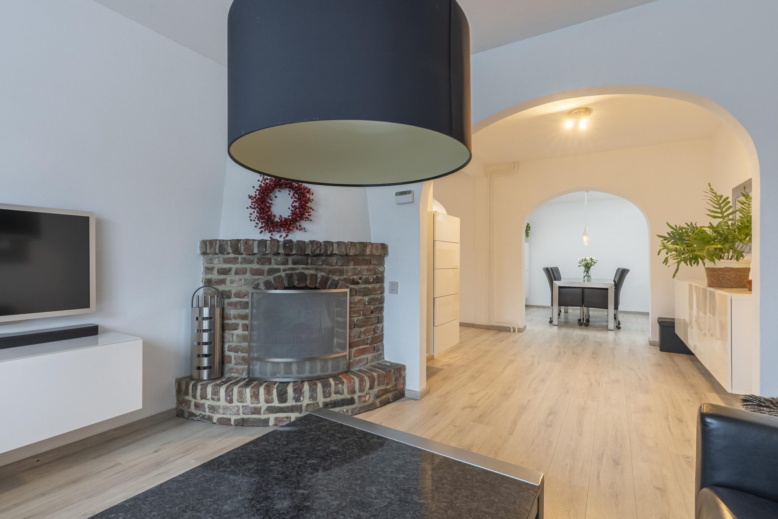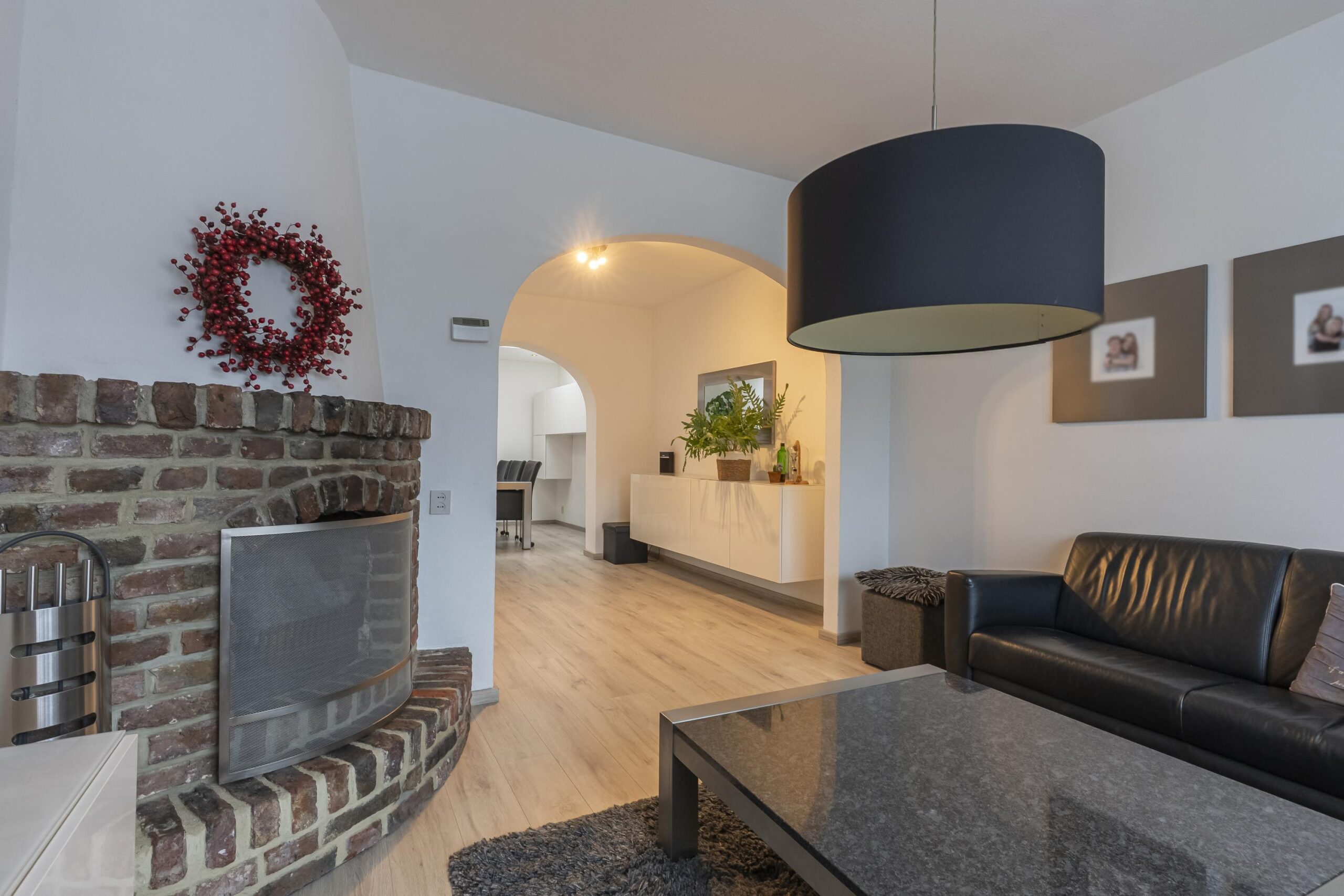 Het royale leefgedeelte is praktisch ingedeeld en ruim van opzet. Aan de voorzijde bevindt zich een gezellige zitkamer met erker en vrij uitzicht naar voorzijde, gezellige gemetselde, functionele open haard voor de koude winterdagen.