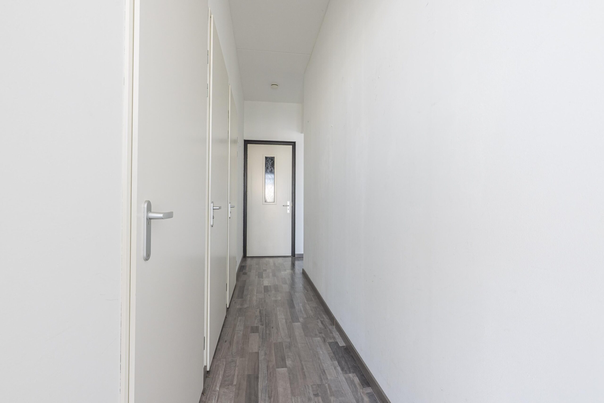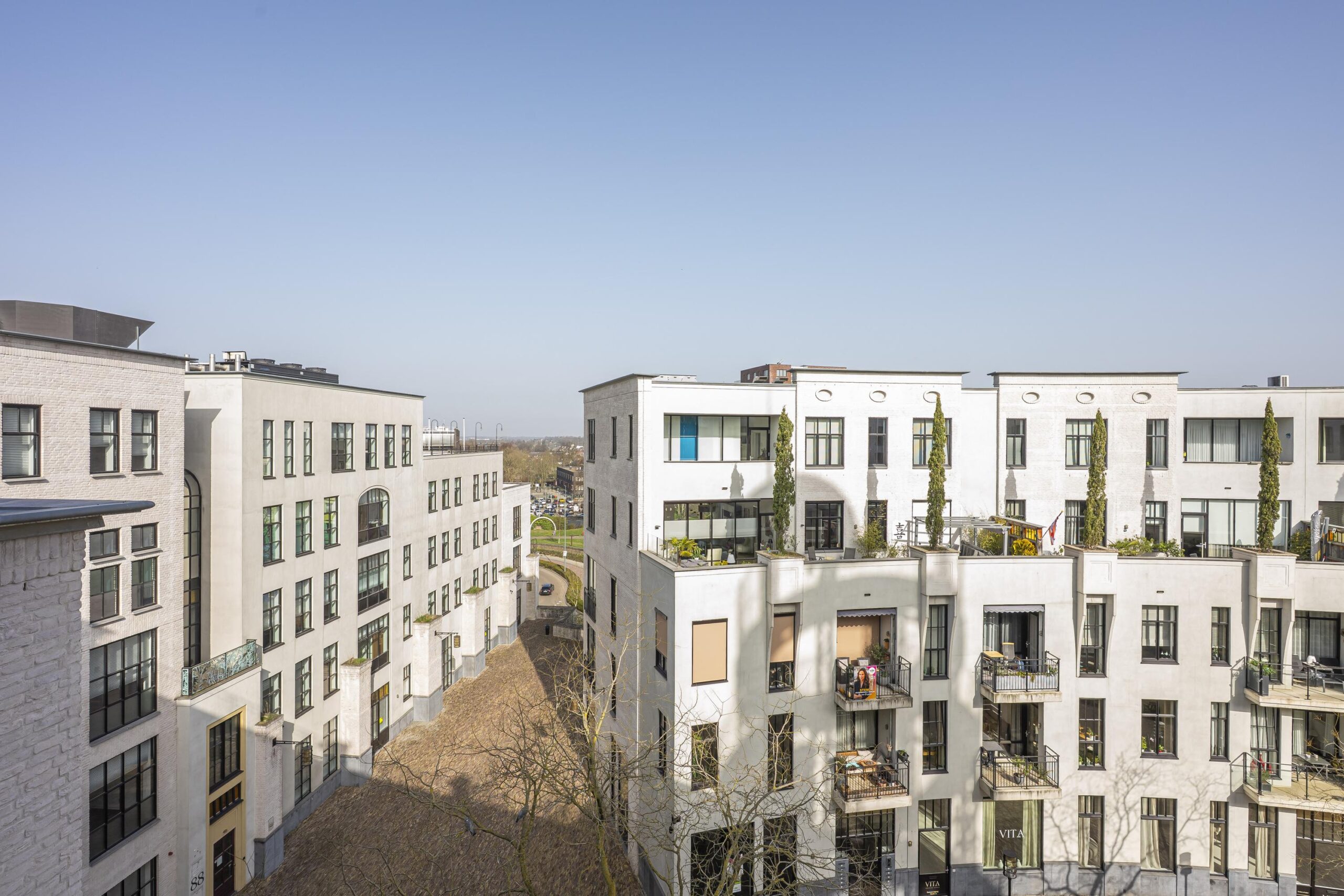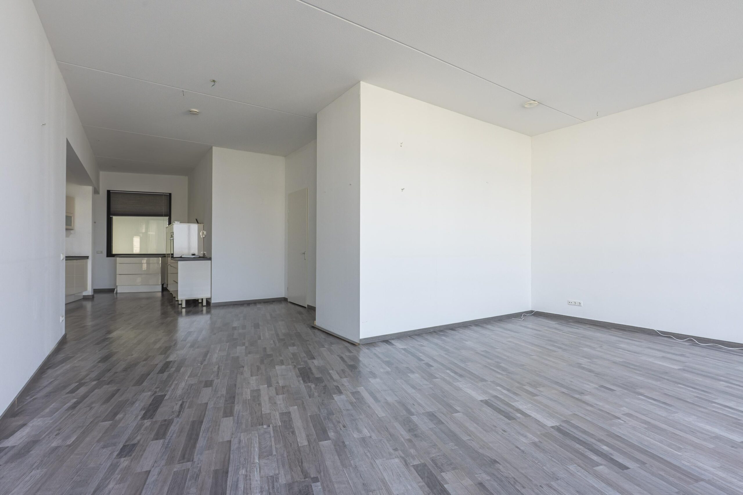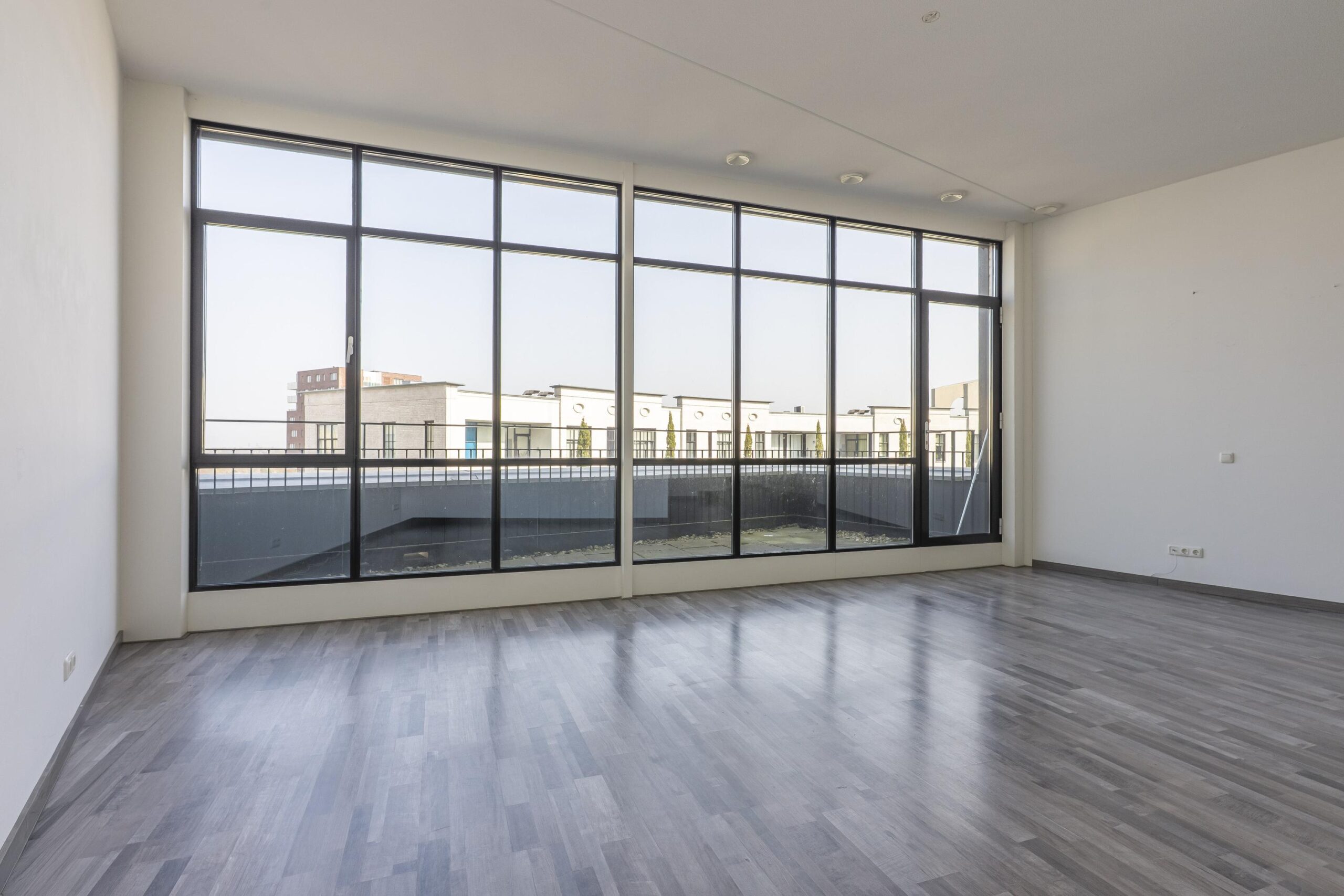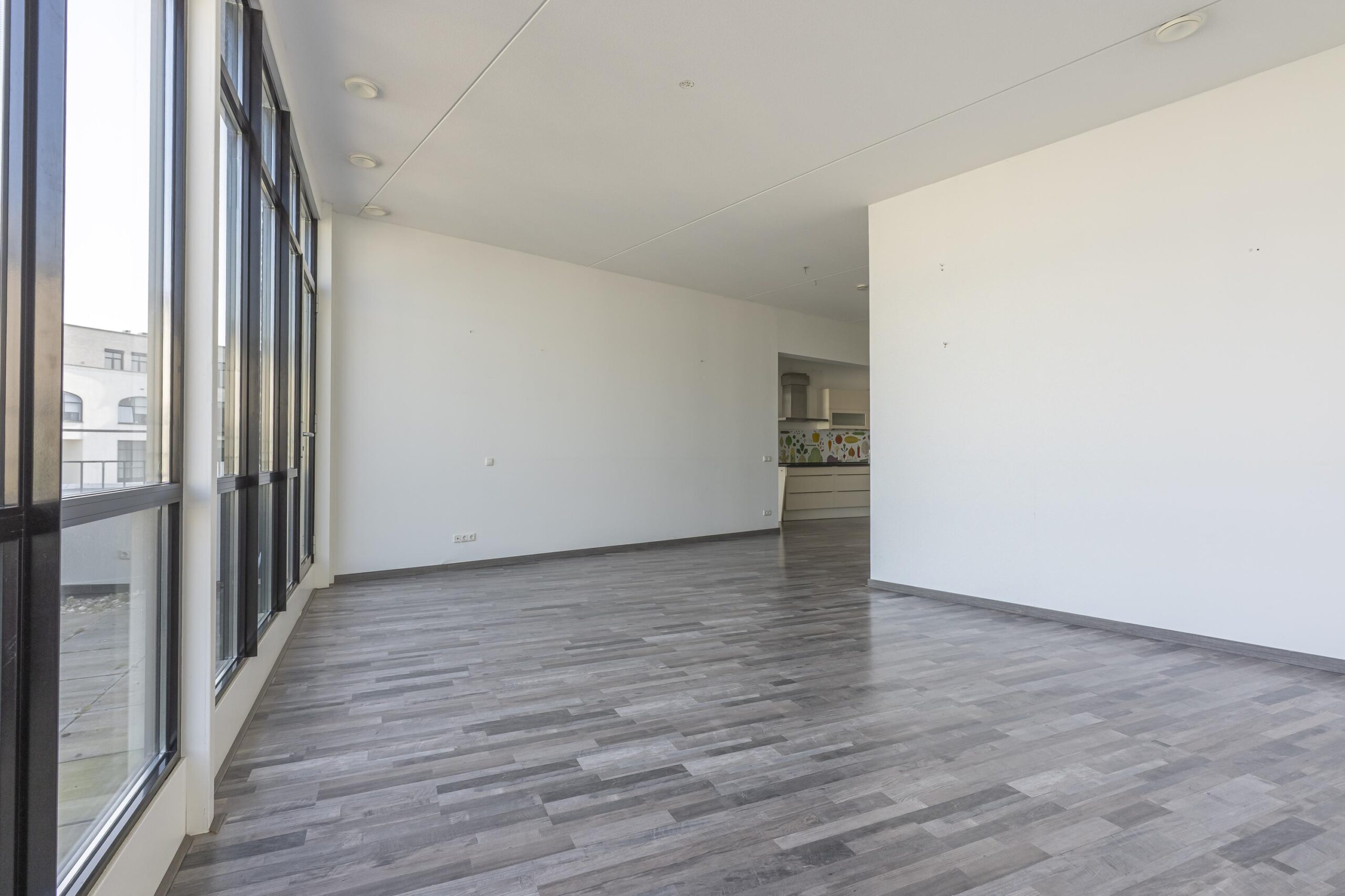 De keuken is voorzien van een keuken in twee wandopstellingen in hoogglans uitvoering en de navolgende apparatuur: oven, inductiekookplaat, afzuigkap, koelkast en vaatwasser. De woonkamer geniet veel lichtinval door de imposante raampartij die uitzicht biedt op het dakterras en het Maankwartier.