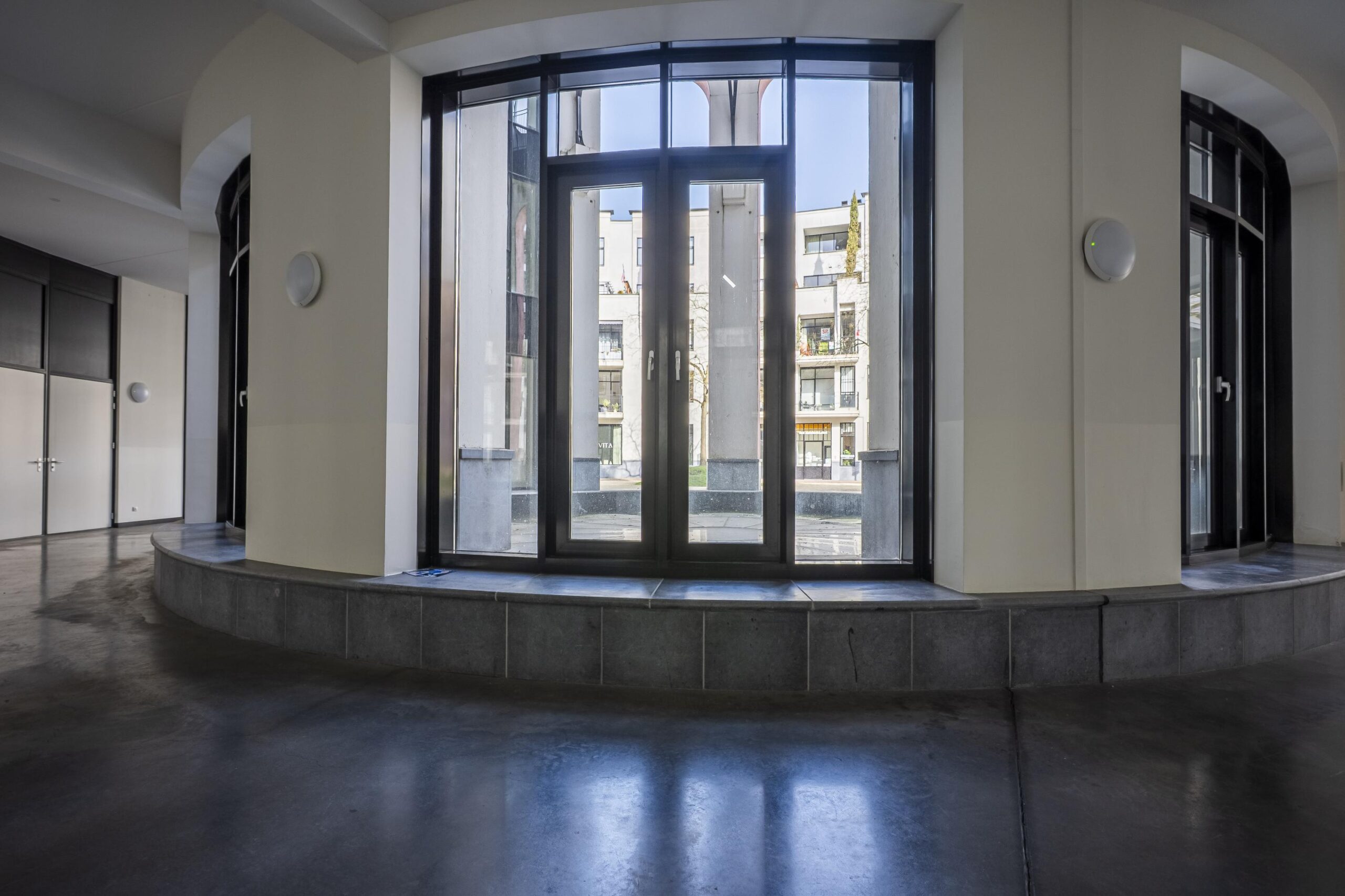 Gezamenlijke entree, brievenbussen en bellentableau. Centrale hal met trappenhuis en liftinstallatie naar de verdiepingen.