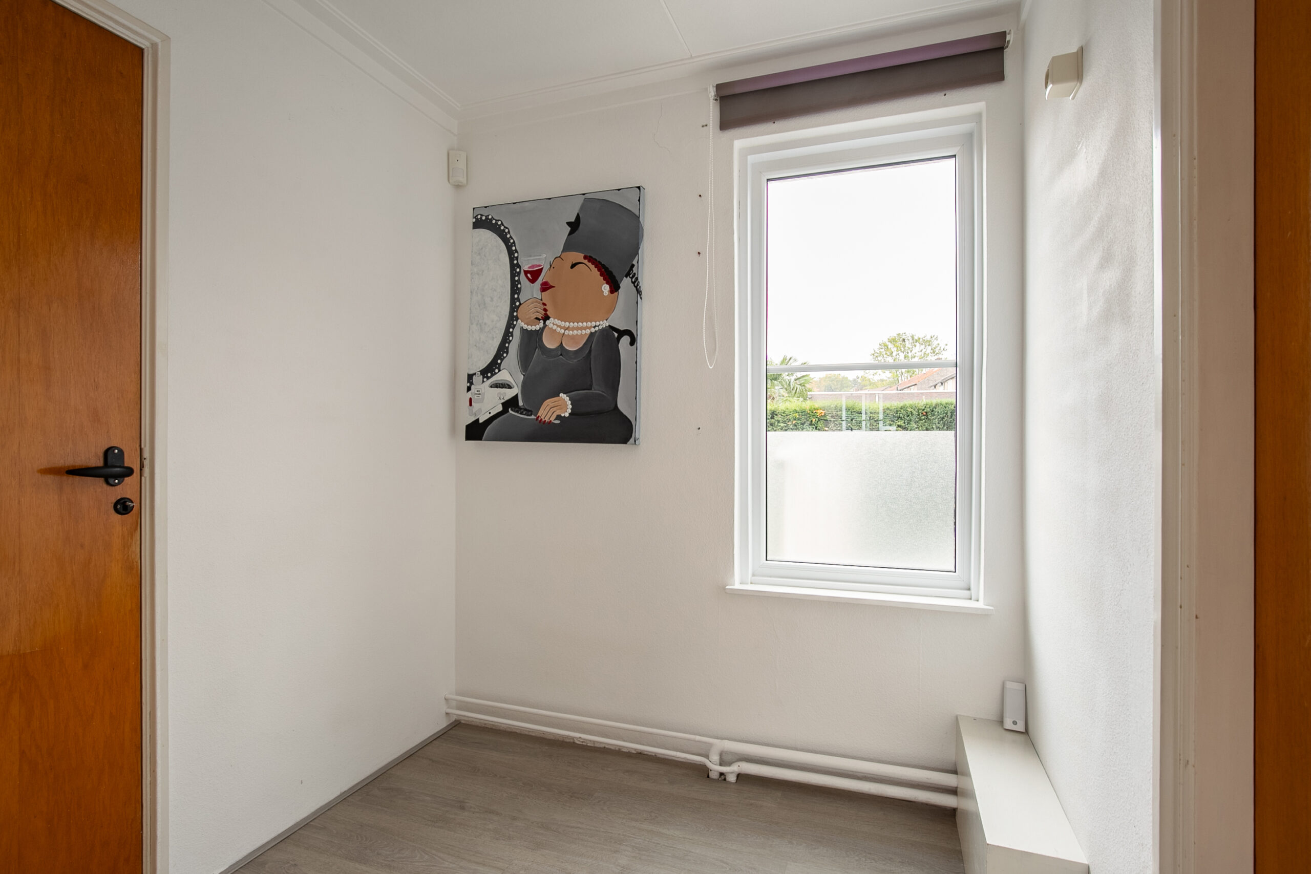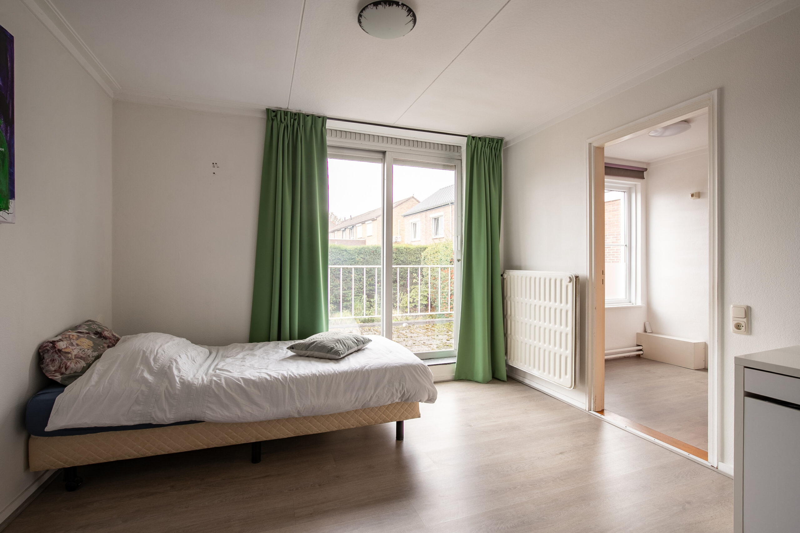 Vanuit de overloop bereikt u een kleine verdeelhal, welke toegang biedt tot derde slaapkamer en badkamer. De derde slaapkamer is respectievelijk groot: