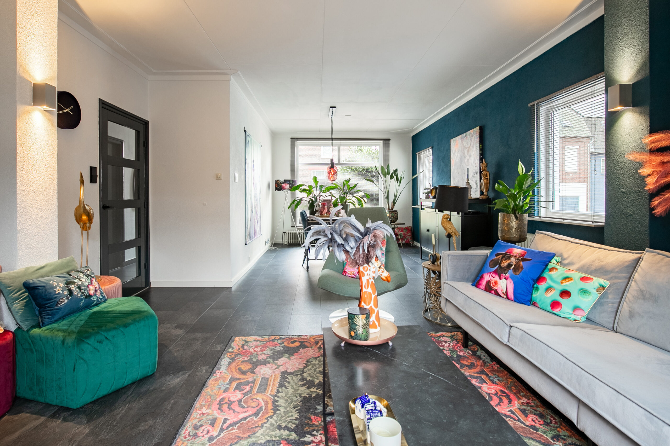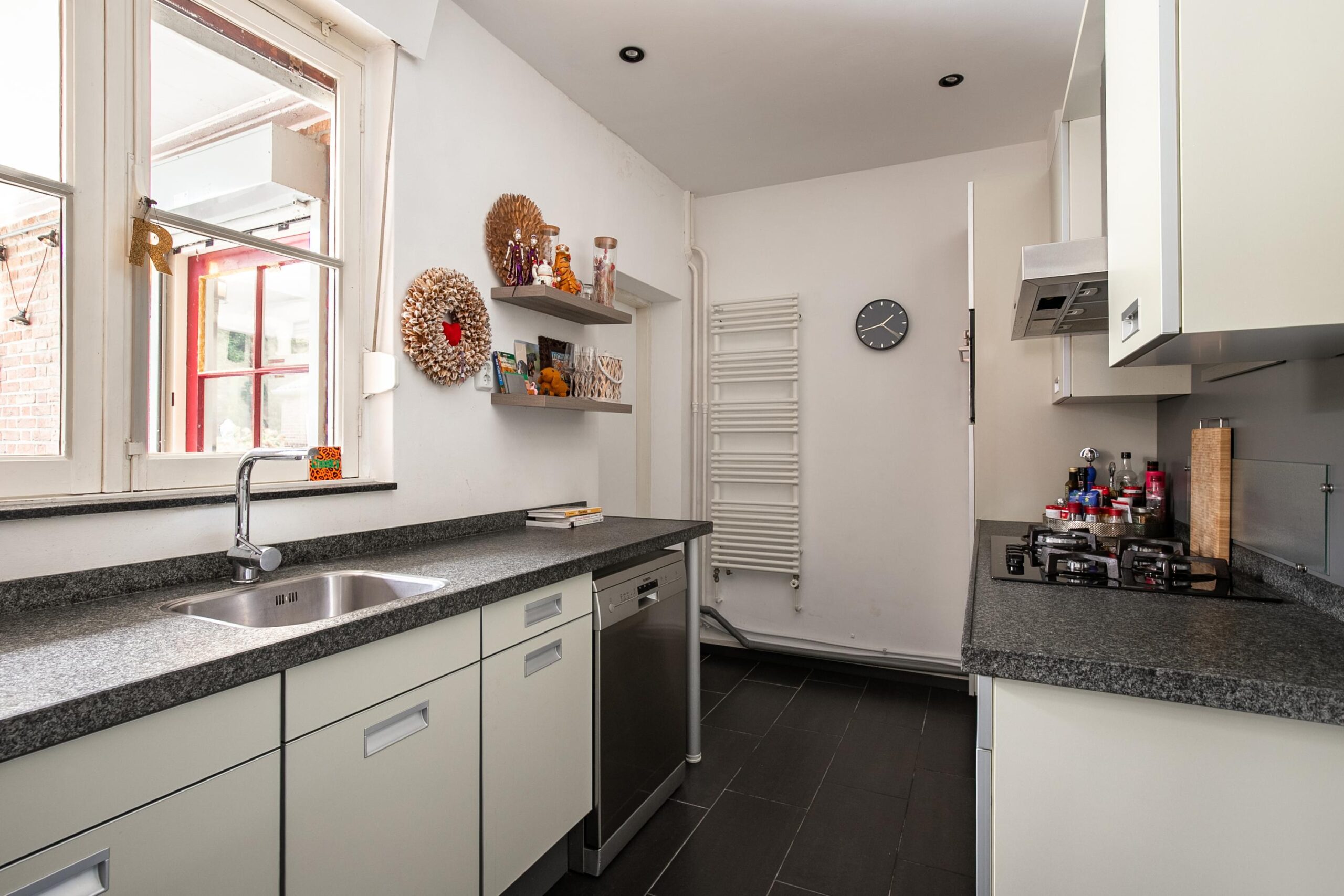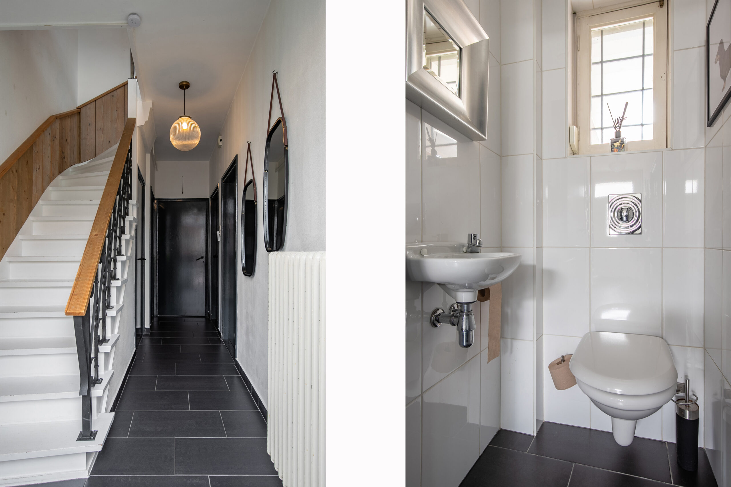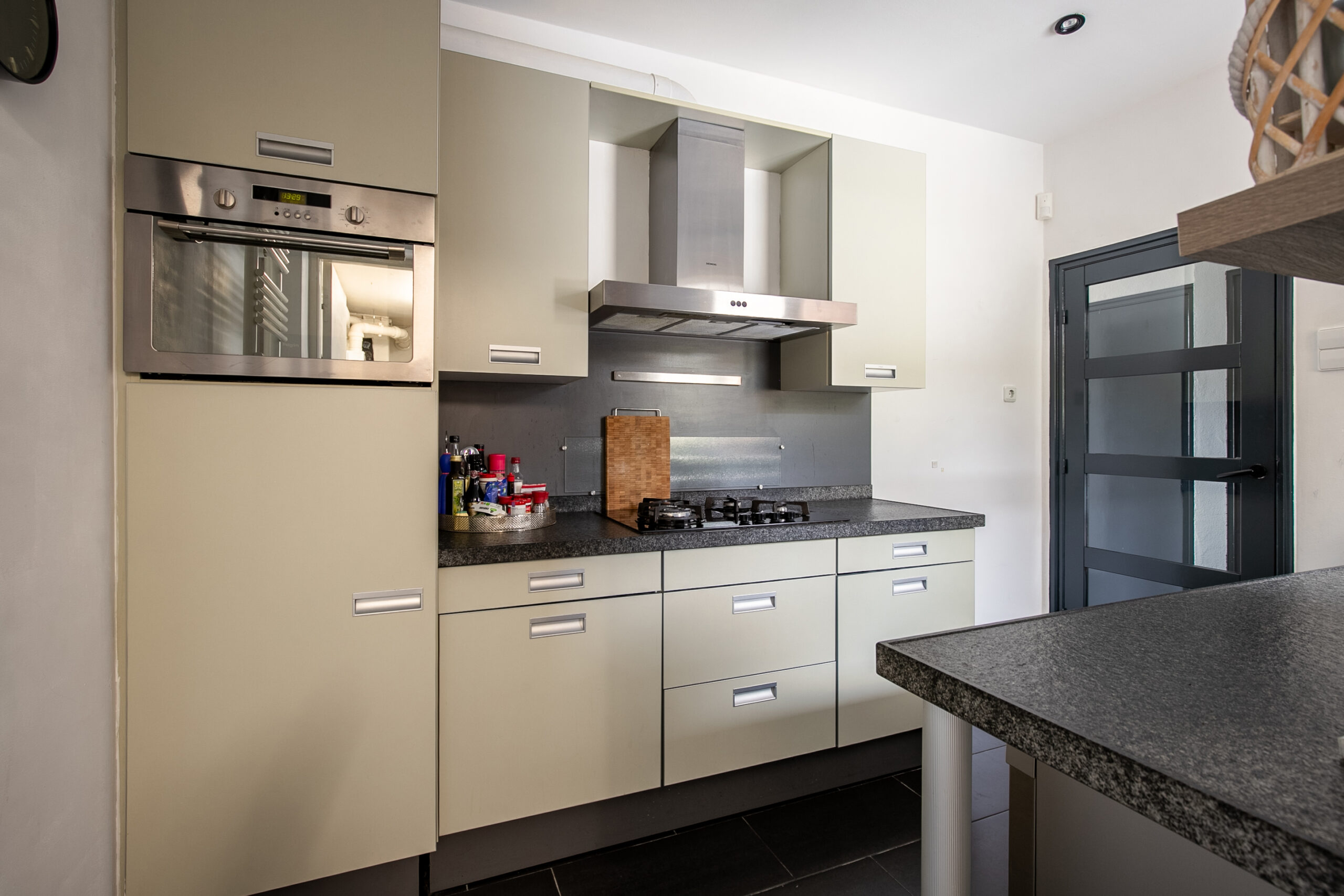 Via de verzorgde voortuin toegang tot de entree/hal met meterkast, trapopgang naar de eerste verdieping, toegang tot het souterrain, betegelde toiletruimte met vrijhangend toilet en een multifunctionele kamer op de begane grond (ca. 3.56 m x 3.49 m). Deze ruimte kan uitstekend dienen als slaapkamer of werkkamer, waarmee de woning levensloopbestendig kan worden ingericht. De sfeervolle, lichte woonkamer (ca. 33 m²) is voorzien van een donkere laminaatvloer en biedt via openslaande deuren toegang tot de achtertuin. De keuken (ca. 8 m²) is praktisch ingericht met twee separate keukenblokken met granieten werkbladen en is uitgerust met een vaatwasser, koelkast met vriesvak, oven, 4-pits gaskookplaat en afzuigkap (schouwmodel). Aansluitend bevindt zich de verwarmde bijkeuken/wasruimte (ca. 8 m²) met de opstelling van de cv-combiketel (Intergas, huur, 2021) en witgoedaansluitingen. Deze ruimte kan, indien gewenst, worden omgevormd tot badkamer, zodat gelijkvloers wonen mogelijk wordt.