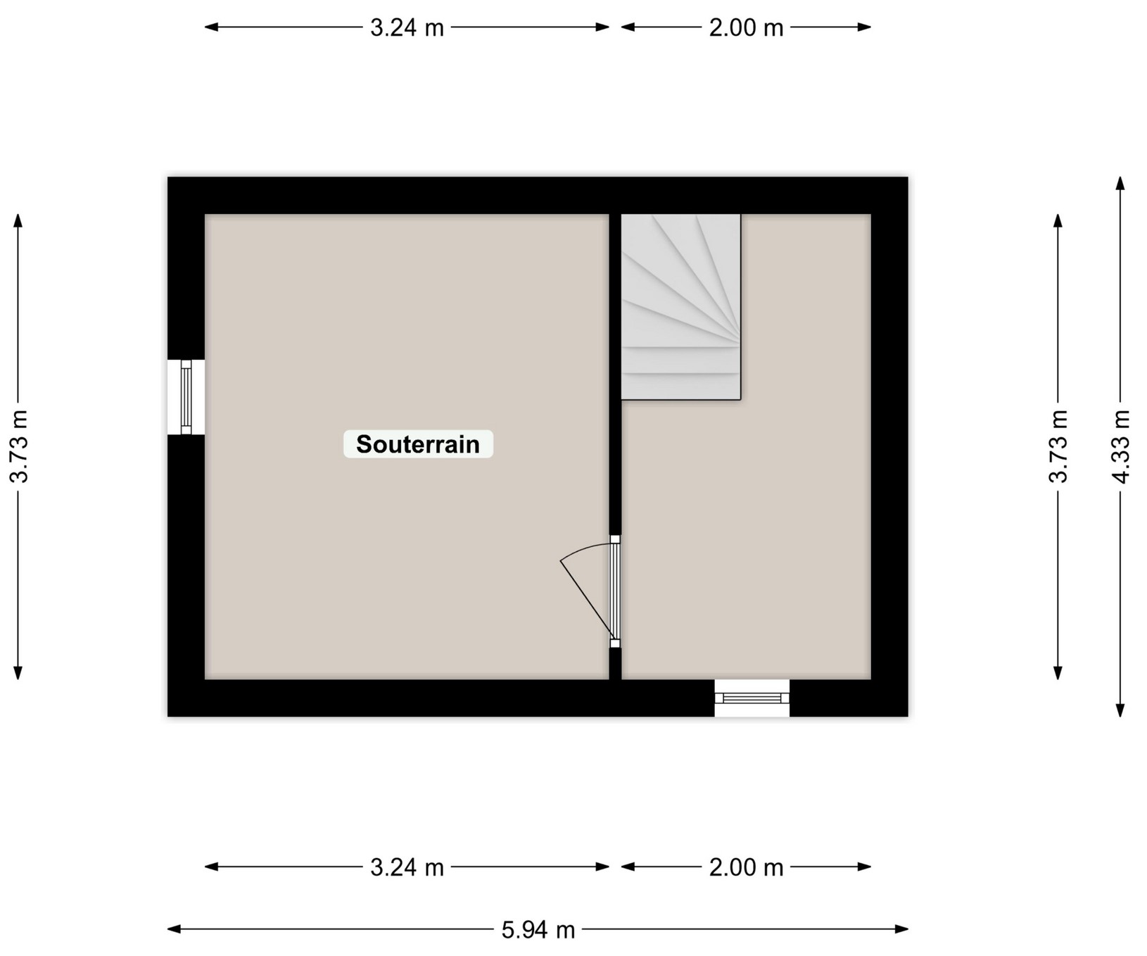 Ruim souterrain, onderverdeeld in twee separate kelderruimtes, beide voorzien van ventilatiemogelijkheden. Ideaal als provisie- of hobbyruimte.