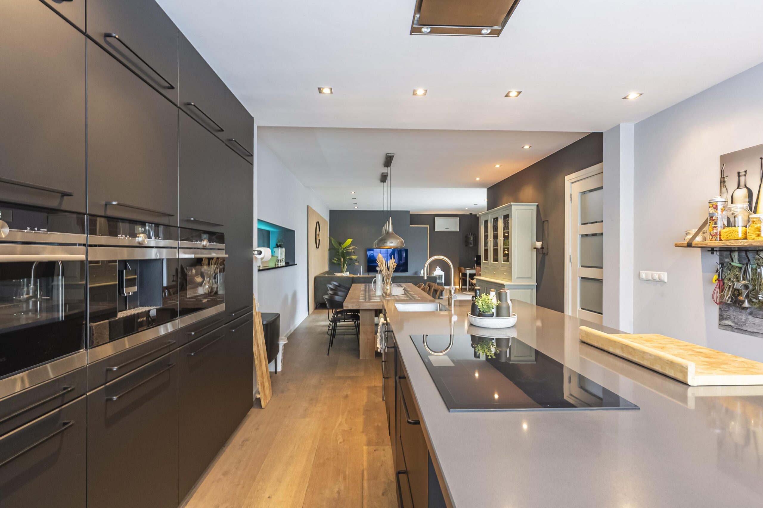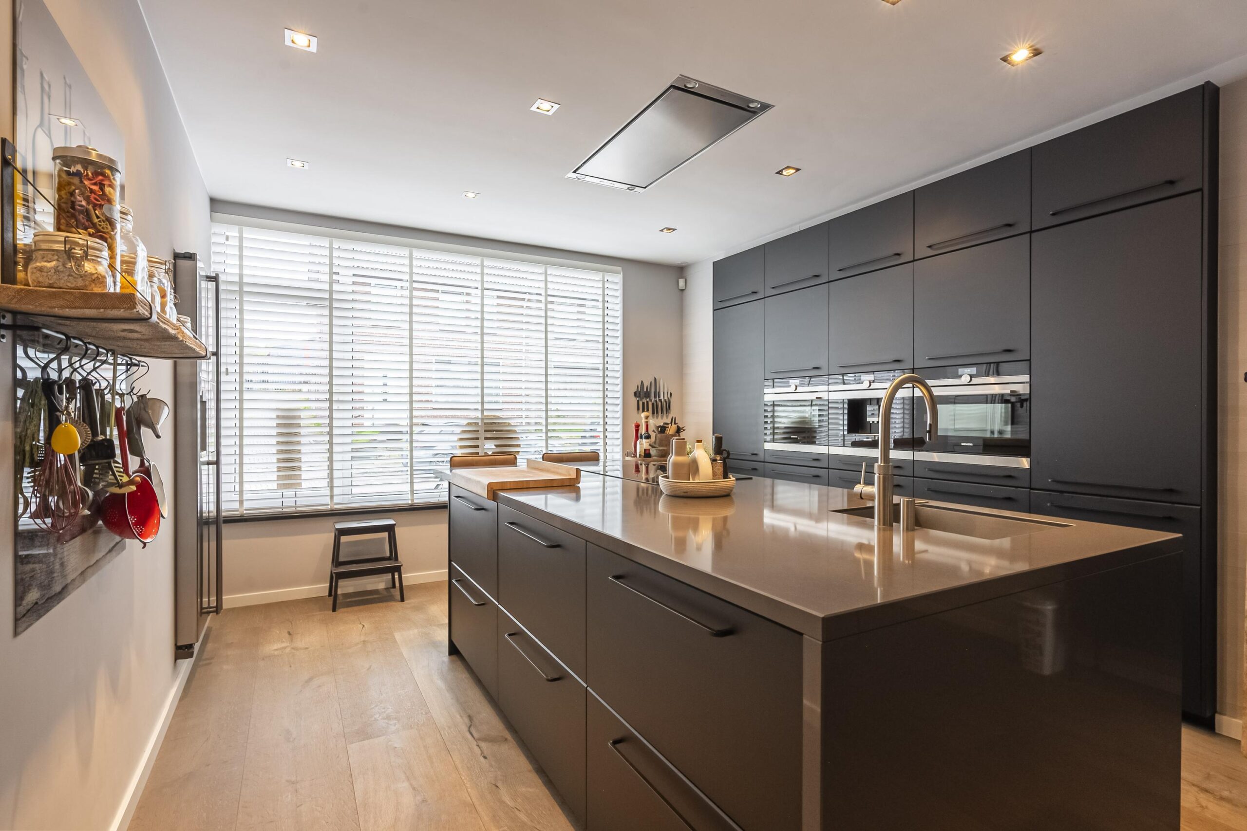 Aan de voorzijde van de woning bevindt zich de luxe open leefkeuken (bj.2018) met kookeiland, voorzien van de navolgende hoogwaardige apparatuur: combimagnetron, stoomoven, koffiemachine, inductiekookplaat (2023), vaatwasser (2023), Quooker en een Amerikaanse koelkast. De keuken is ontworpen als het hart van de woning en vormt een uitnodigende plek om te koken en samen te komen.
