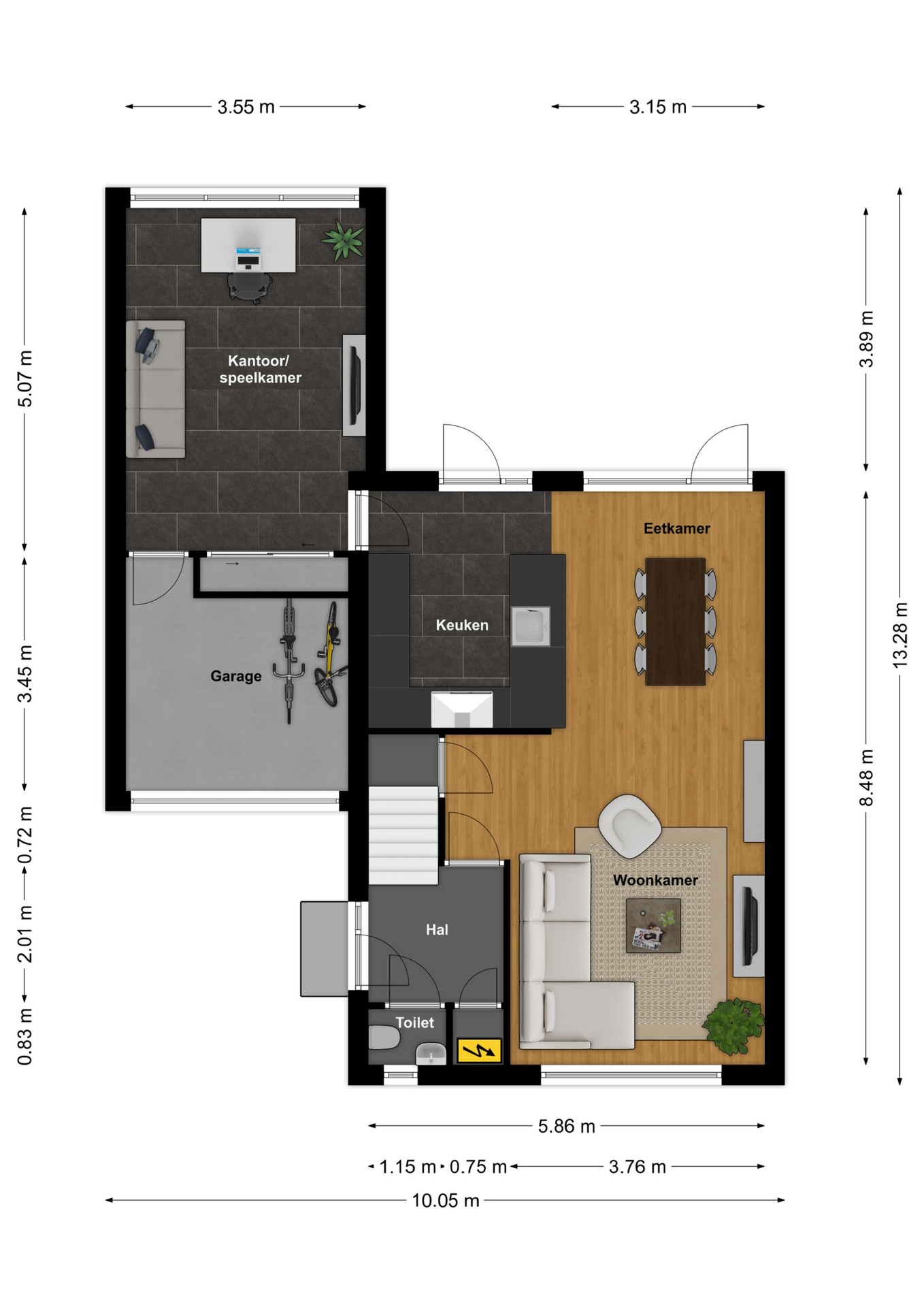 – Ruime kantoor-/speelruimte aangebouwd op begane grond;