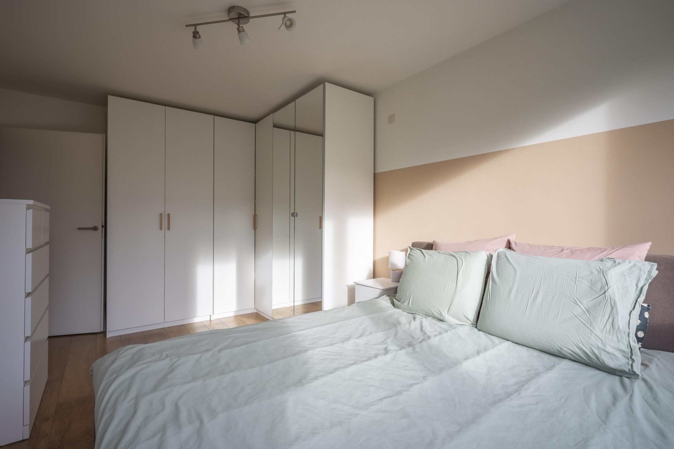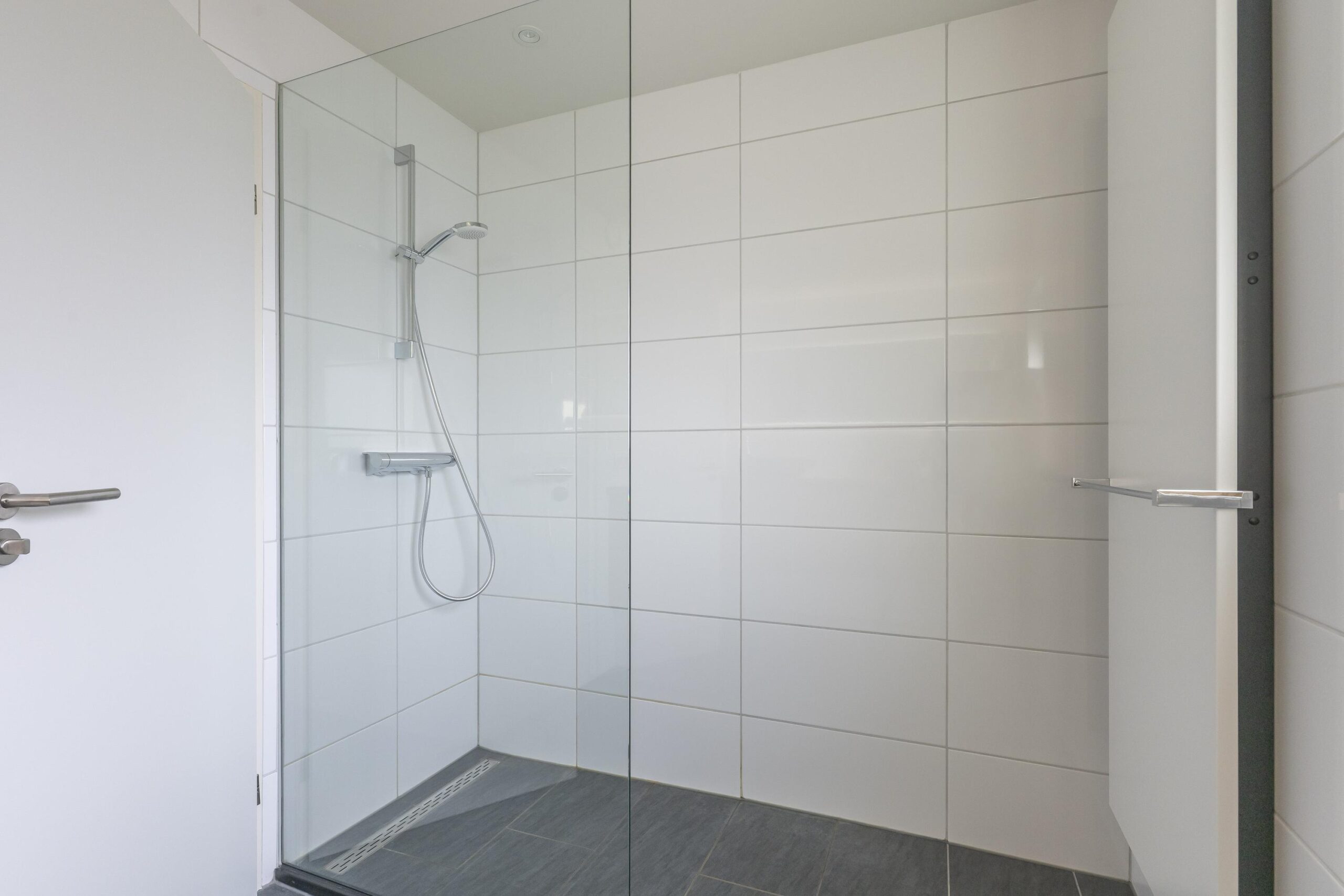Ruime overloop met nette laminaatvloer. Drie slaapkamers, resp. groot ca. 14.5/12/11 m2 met laminaatvloer en glad stucwerk, de kamer aan de voorzijde met balkon. Volledig betegelde toiletruimte met hangcloset en mechanische ventilatie. Moderne, volledig betegelde badkamer (ca. 6 m2) met ruime inloopdouche, dubbel wastafelmeubel met 2 kommen en verwarmde spiegel, inbouwspots en ventilatie.