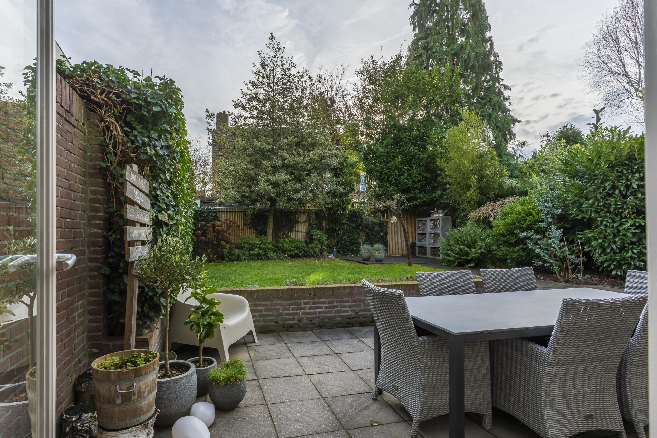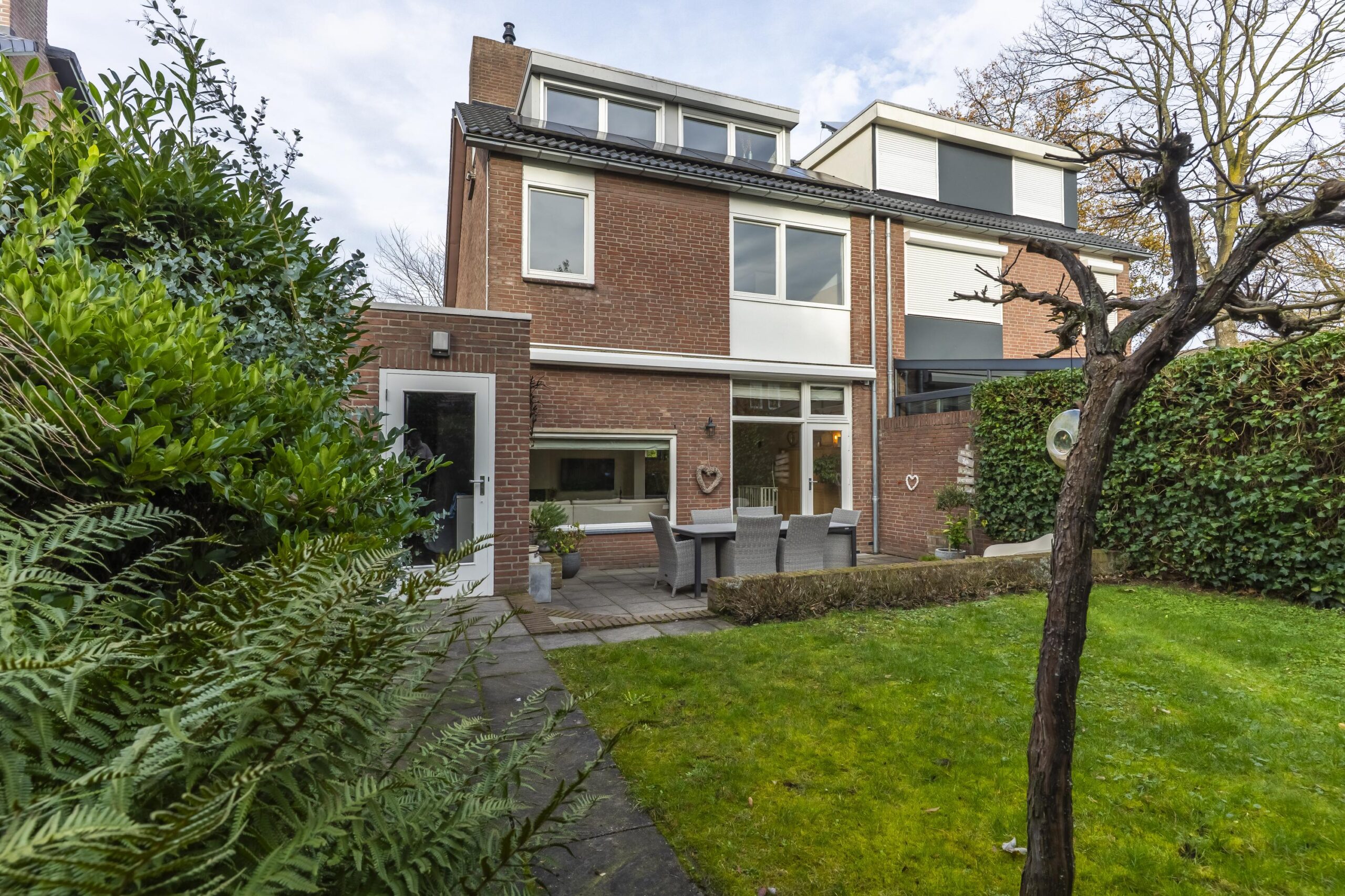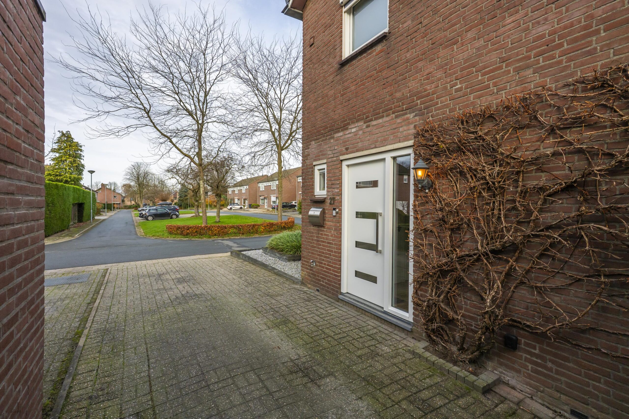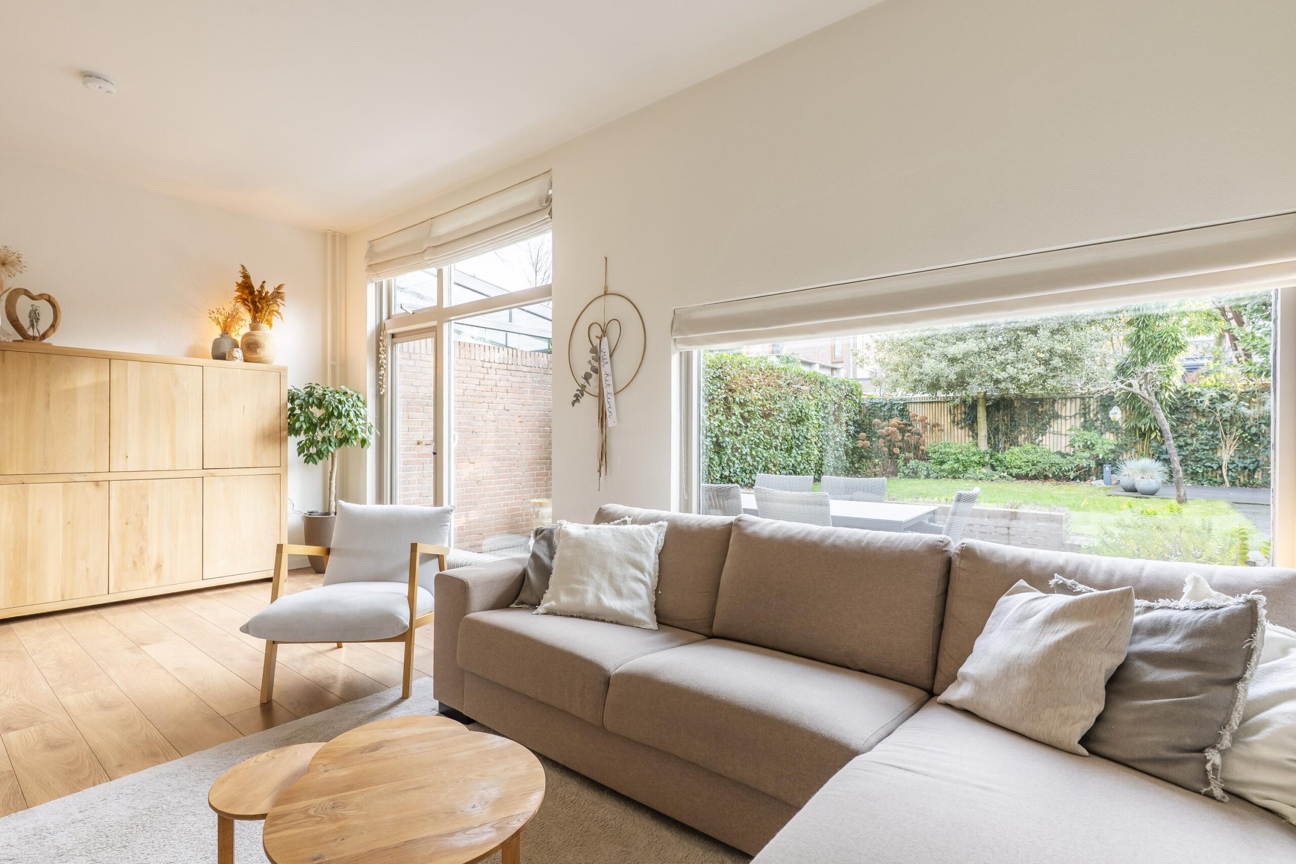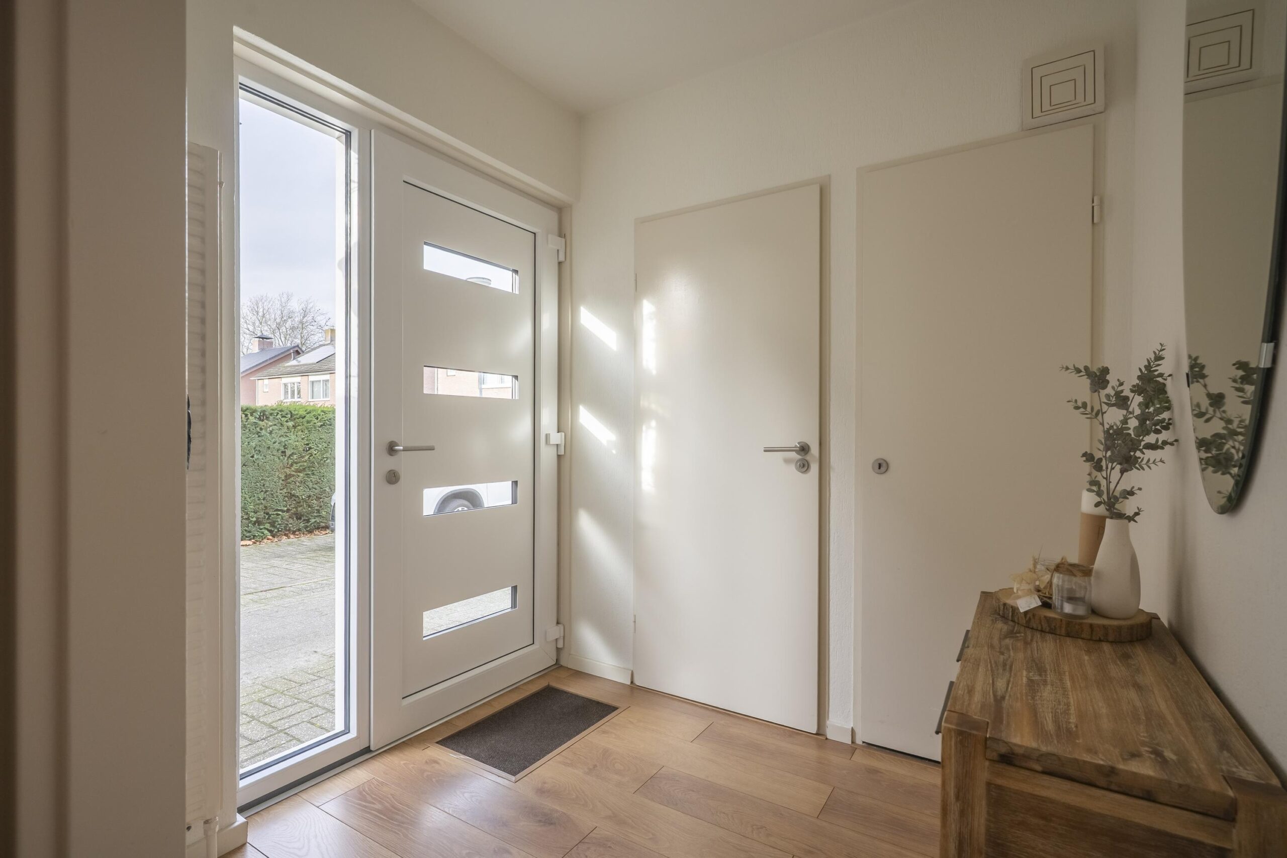Oprit voor het stallen van meerdere voertuigen en verzorgd aangelegde voortuin. Entree/hal met nette laminaatvloer en vernieuwde meterkast. Moderne en volledig betegelde toiletruimte met hangcloset en fonteintje. Keuken aan de voorzijde met U-vormige opstelling v.v. combi-oven, koelkast, vaatwasser, 4-pits keramische kookplaat en afzuigkap. Woonkamer in L-vorm v.v. laminaatvloer verdeeld over twee niveaus met centraal gelegen de eetkamer, trapkast en trap naar verdieping. In de verdiepte zitkuil is het zit-/tv-gedeelte gesitueerd met grote glaspartijen naar de tuin en sfeervolle gashaard. In totaliteit is de living ca. 47 m2 groot! De privacyvolle en zonnig op het zuiden gelegen tuin beschikt over een fijn terras met zonnescherm en verder een fijn grasveld, tweede zitje achterin en fraaie en gevarieerde aanplant rondom. Tot slot de garage (ca. 20 m2) met elektrische sectionaalpoort en aanrechtblokje met wateraansluiting.