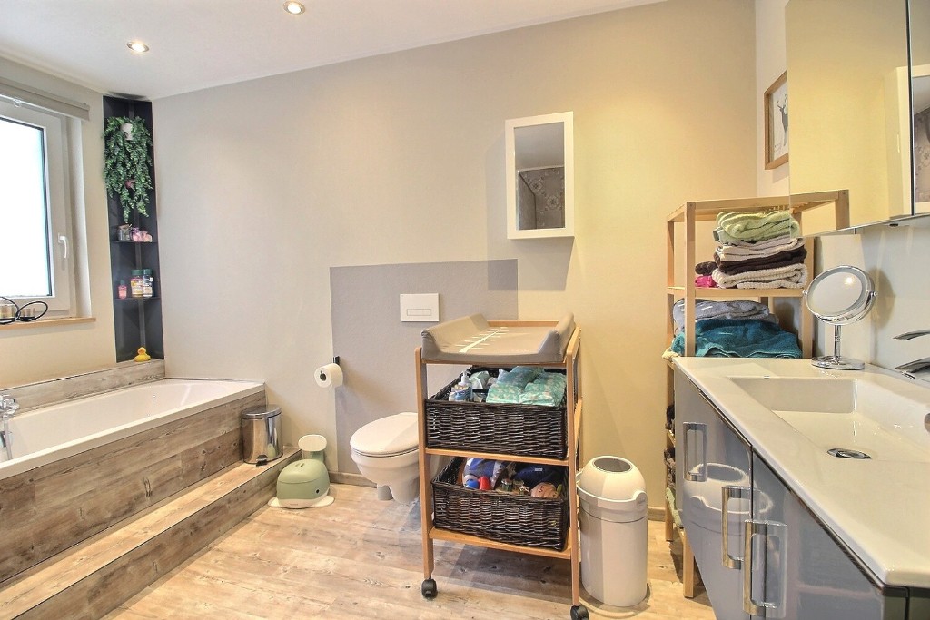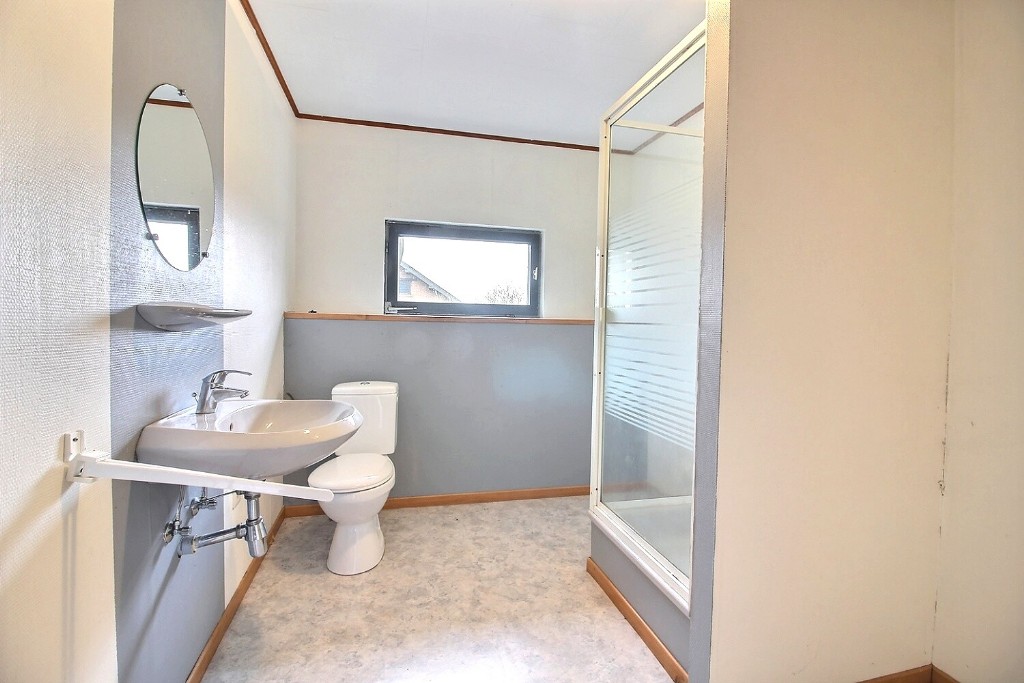 - Badkamervoorzieningen Ligbad, toilet, wastafel, wastafelmeubel, toilet, douche, wastafel