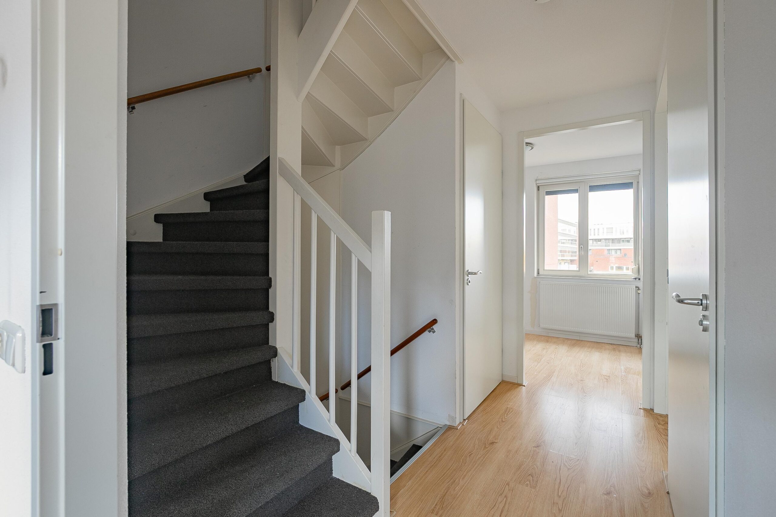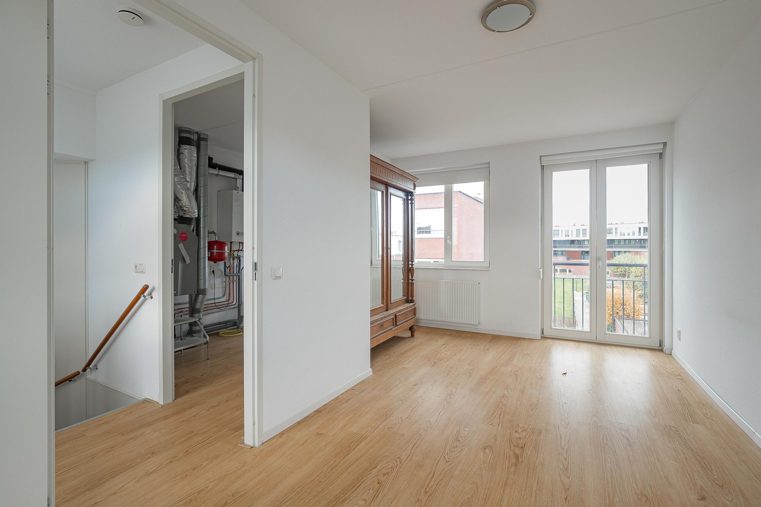 Via de vaste trap op de eerste verdieping toegang tot de 2e verdieping. Op deze verdieping bevinden zich de 4e slaapkamer (ca. 17 m²) en de installatieruimte/wasruimte (ca. 5 m²). De slaapkamer beschikt over veel lichtinval en is eveneens voorzien van een laminaatvloer. De installatieruimte/wasruimte is voorzien van een wasmachineaansluiting. Tevens bevindt zich hier de HR c.v.-ketel (Ferroli uit 2019, eigendom) en de WTW (warmte terugwin installatie).