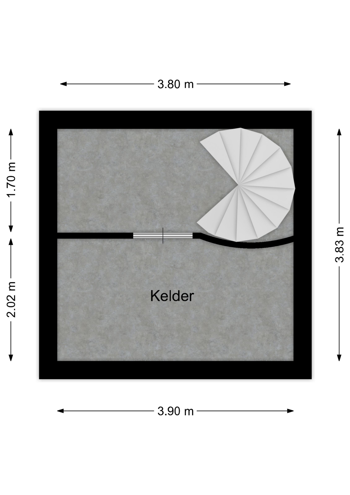 Verwarmde kelder, verdeeld in twee ruimtes (resp. ca. 7.7m² en 6.8m²) met een stahoogte van 1.84 meter.