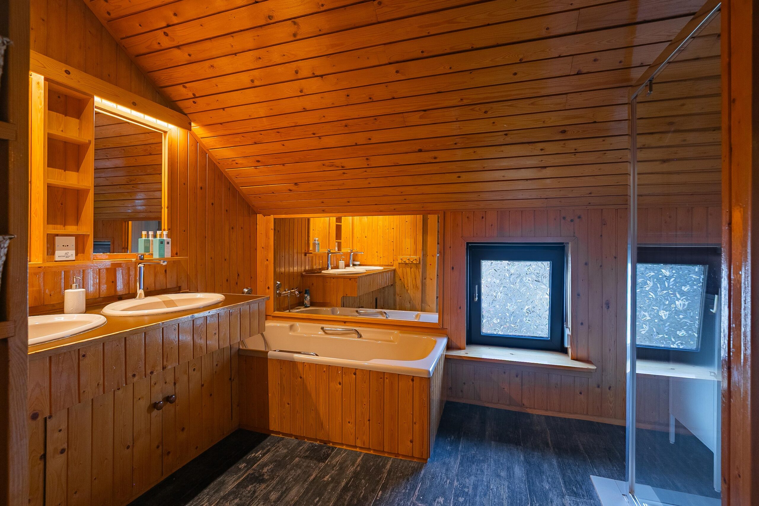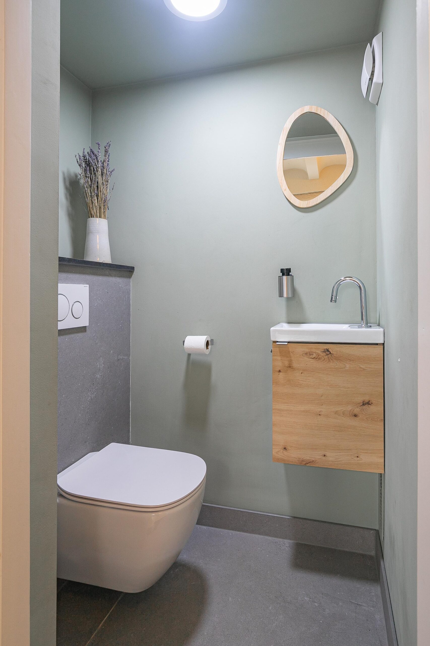 - Badkamervoorzieningen Ligbad, toilet, dubbele wastafel