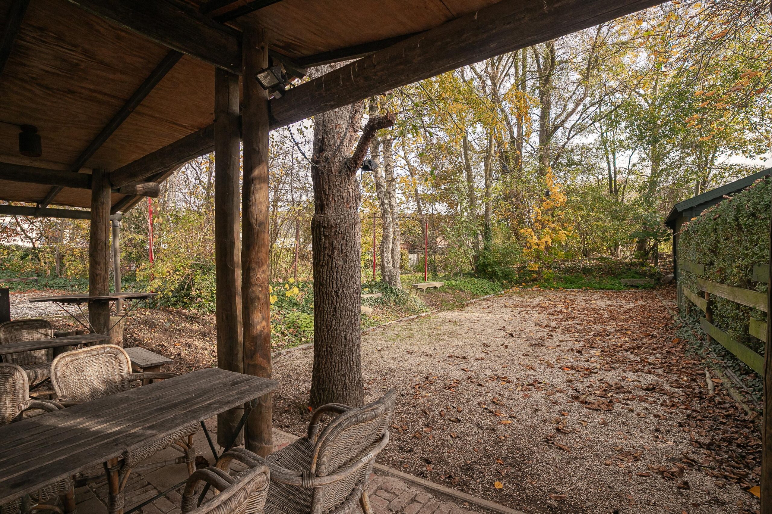 Bij binnenkomst in de tuin ervaart u direct een gevoel van ruimte, rust en comfort. Hier geniet u van optimale privacy en een vrij, groen uitzicht. De royale en verzorgde buitenruimte biedt alles voor het ultieme buitenleven. Er is een ruim betegeld terras met overkapping, diverse volwassen beplanting en een praktische berging voor fietsen en tuingereedschap aan de rechterzijde van de woning. Vanuit deze berging is tevens een doorgang naar de royale voortuin.