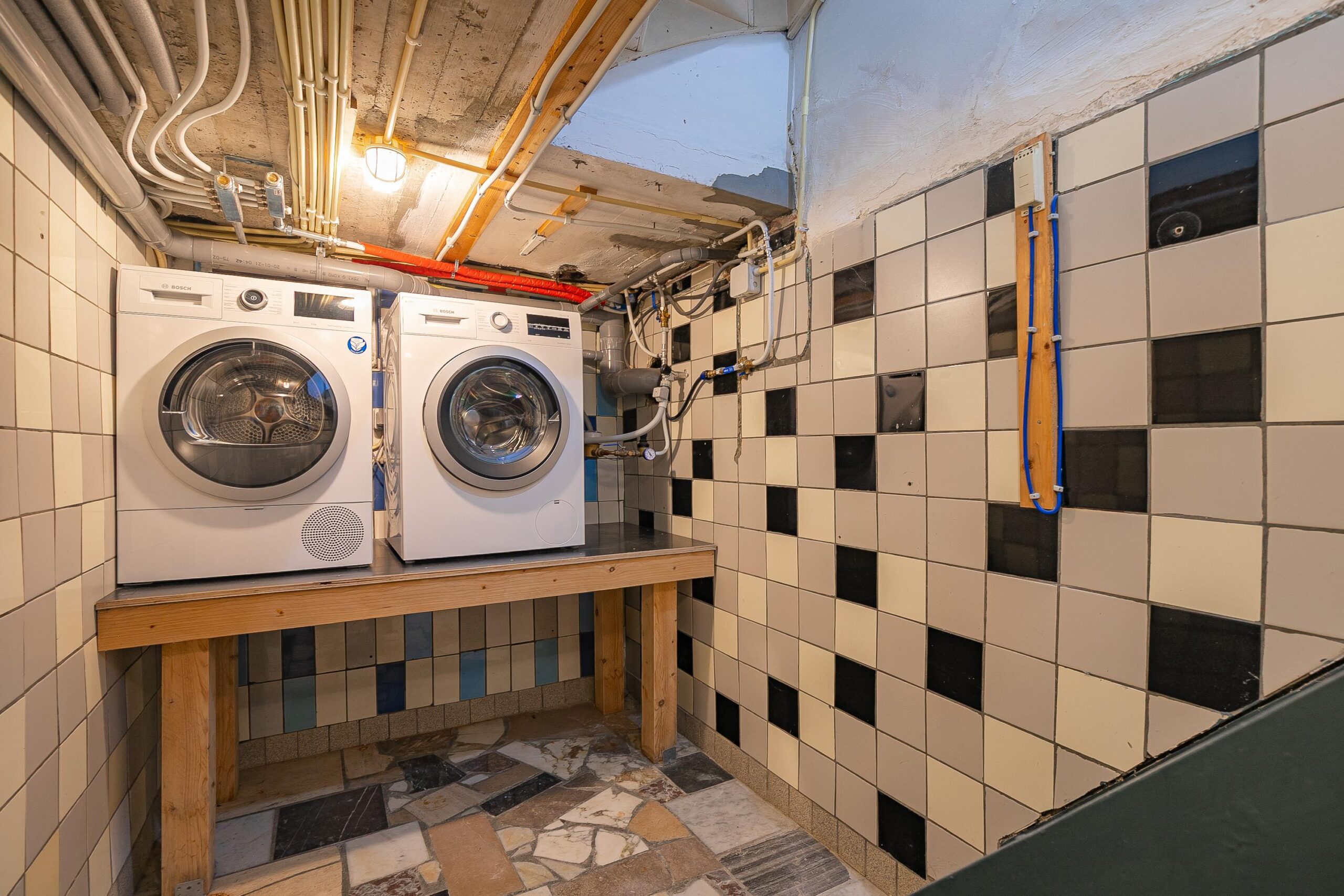 Vanuit de hal te bereiken ruime provisiekelder (ca. 8m²) met de aansluitingen voor het witgoed en de opstelling van de watermeter.