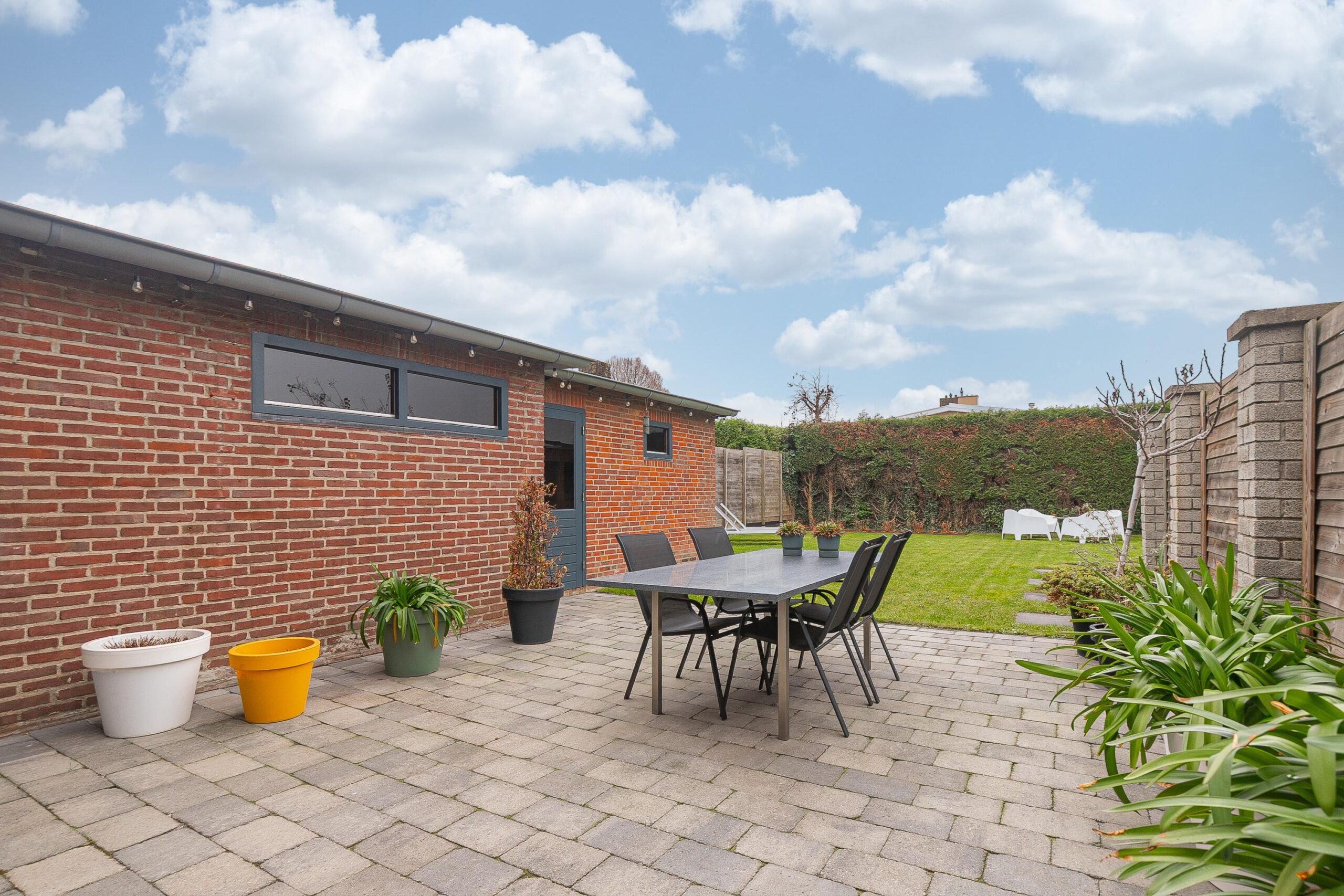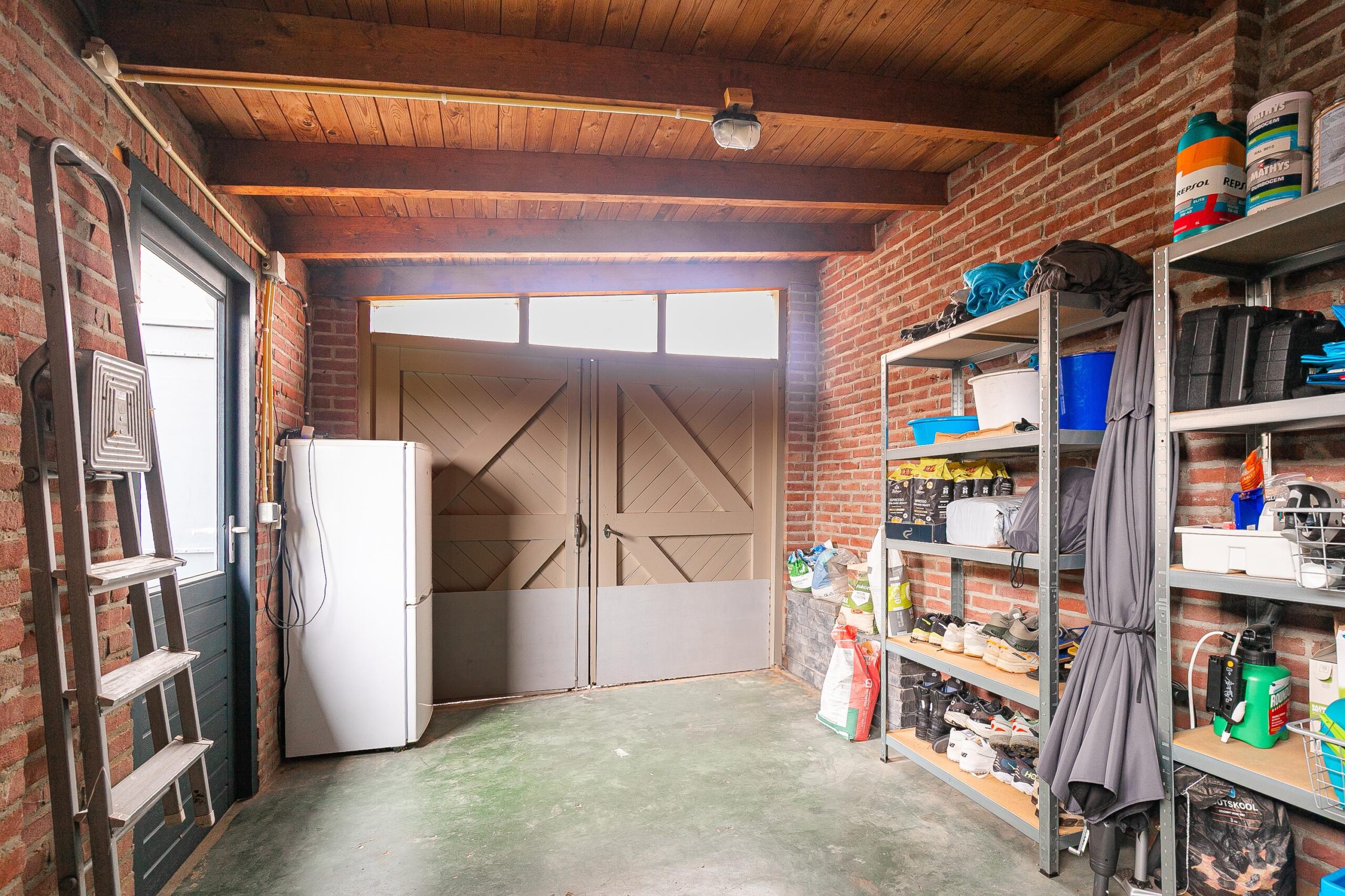 Diepe achtertuin, gelegen op het zuidoosten. De tuin heeft een ruim betegeld terras en veel privacy. Vanuit de tuin is de garage (ca. 16m²) bereikbaar, voorzien van een dubbele houten deur richting de oprit. Aansluitend aan de garage ligt een werkplaats van ca. 10 m². Achter in de tuin bevindt zich bovendien een extra grote multifunctionele hobbyruimte (ca. 38 m²), voorzien van licht en elektra. Deze ruimte kan voor diverse doeleinden worden gebruikt.