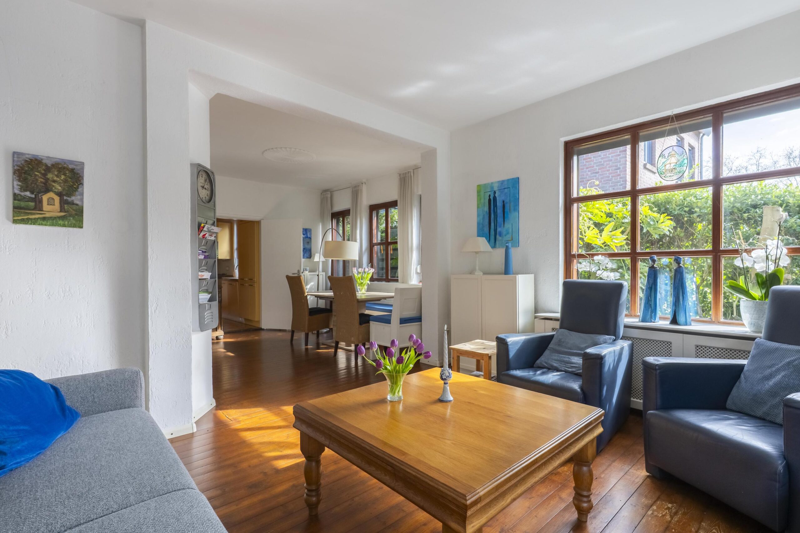 Middels de hal/entree met vernieuwde meterkast, trapopgang en toiletruimte met zwevend toilet en fonteintje komt u in de woonkamer.