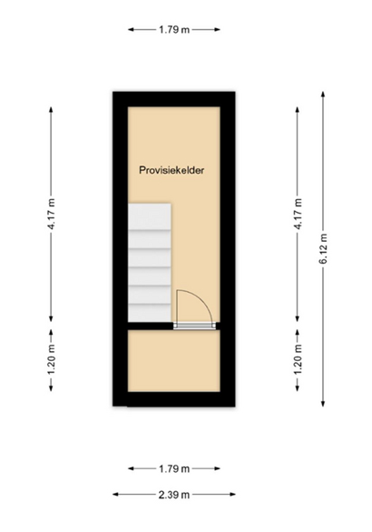 De provisiekelder is groot ca 10m2 alwaar eveneens de Remeha CV-ketel gesitueerd is.
