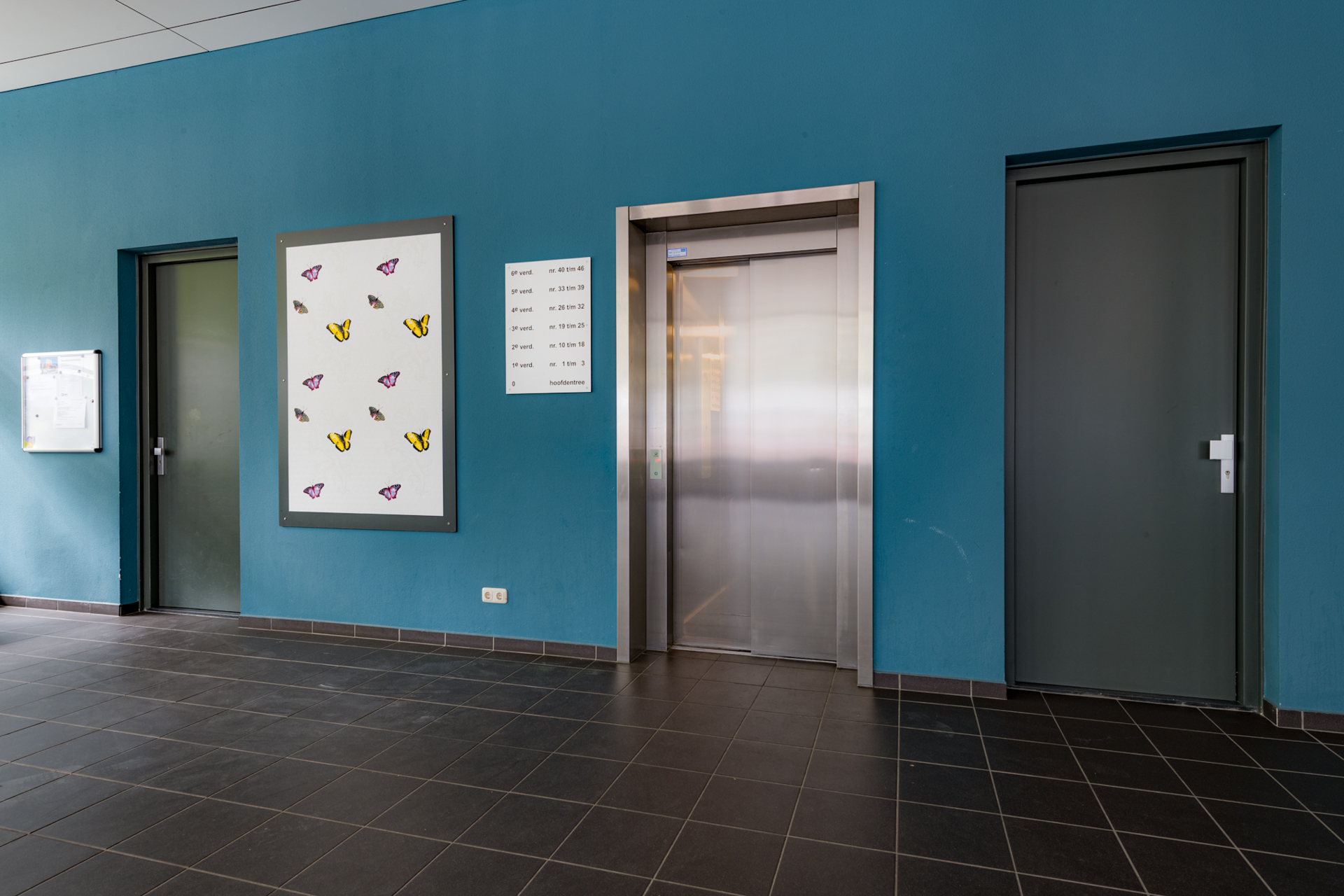 Via de gemeenschappelijke entree komt u in de ruime hal met bellentableau met videocom-installatie, brievenbussen, lift-/ en trapopgang en heeft u toegang tot de bergingen en de parkeergarage.