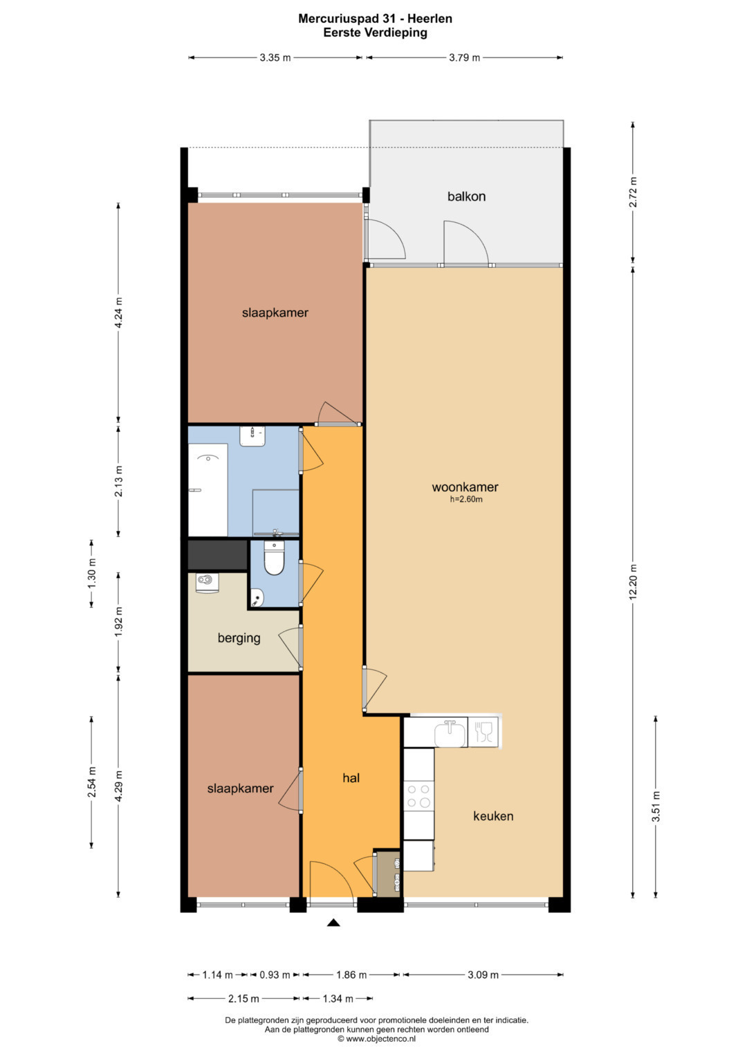 Indeling appartement derde verdieping: