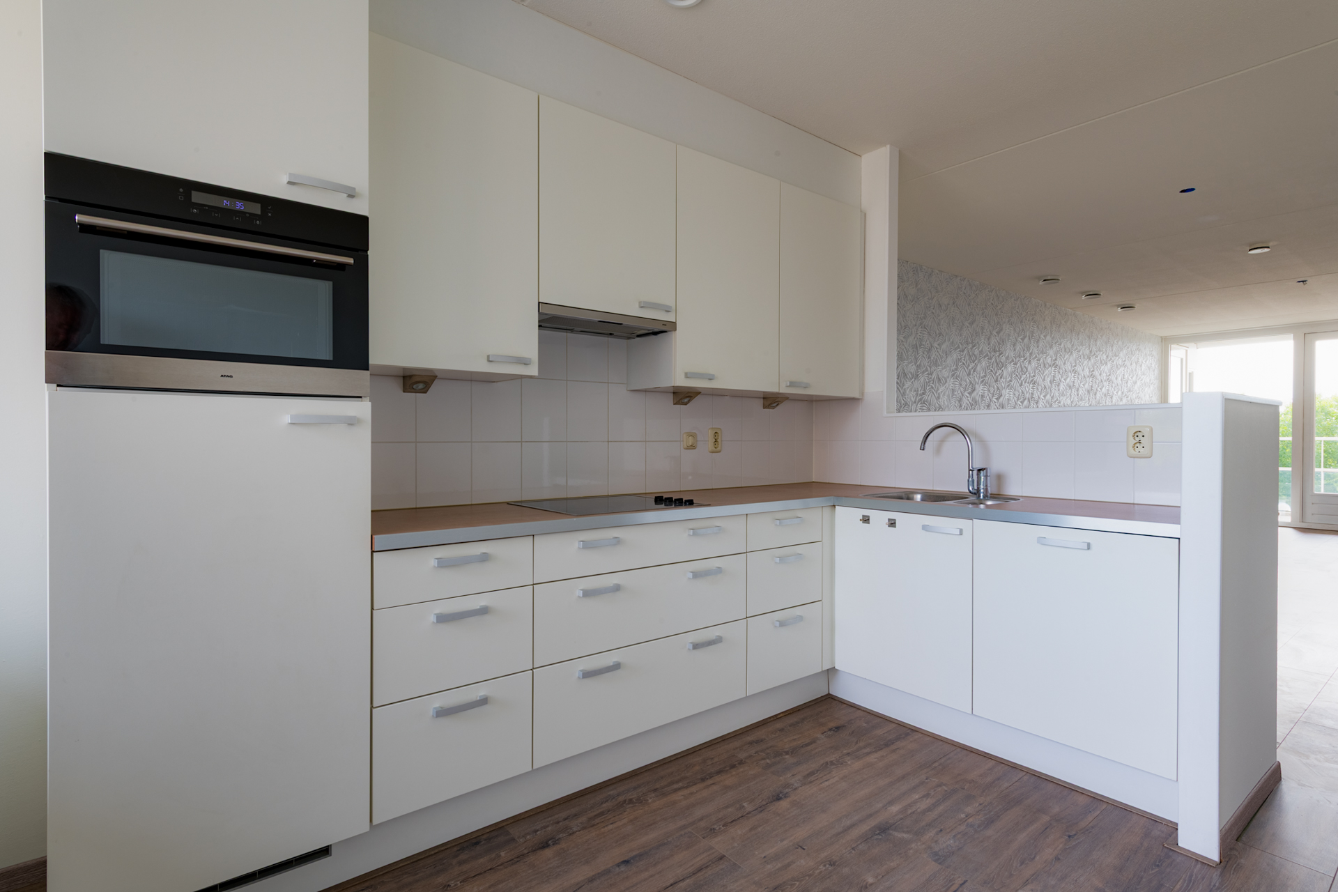 Royale hal met meterkast en garderobe. Deels betegelde toiletruimte met toilet en fonteintje. Technische ruimte alwaar zich de aansluitpunten voor witgoedapparatuur bevinden, alsmede de WTW installatie. Tevens is hier ook nog genoeg plek voor extra opslag. Geheel betegelde, moderne badkamer voorzien van ligbad, douche en wastafel. Ruime living met open keuken en toegang tot het ruime balkon. De keuken is voorzien van een nette keukeninstallatie in hoekopstelling voorzien van de navolgende apparatuur: koelkast met vriesvak, inductie kookplaat, afzuiging, vaatwasser en combimagnetron.
