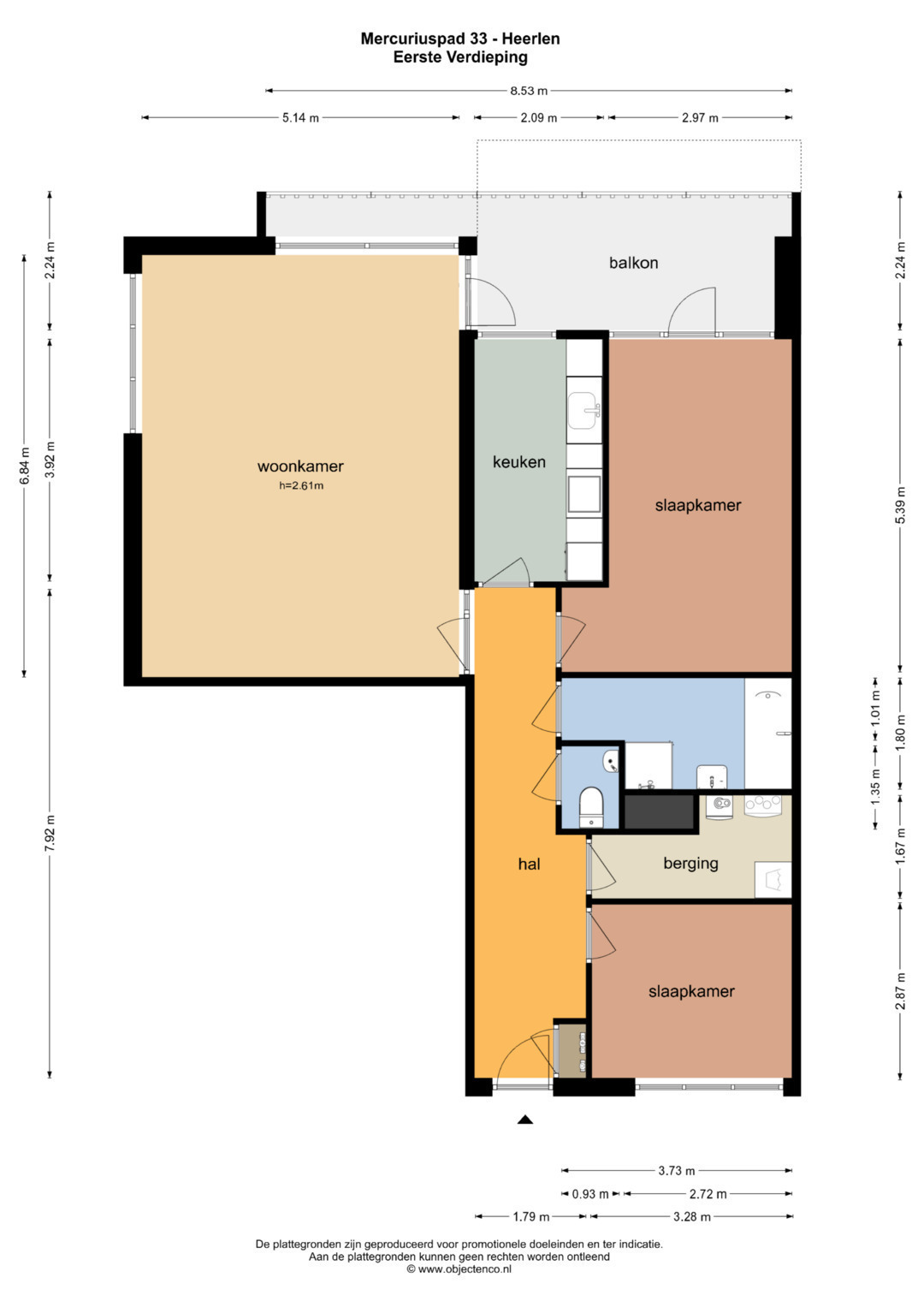 - Aantal kamers 3 kamers