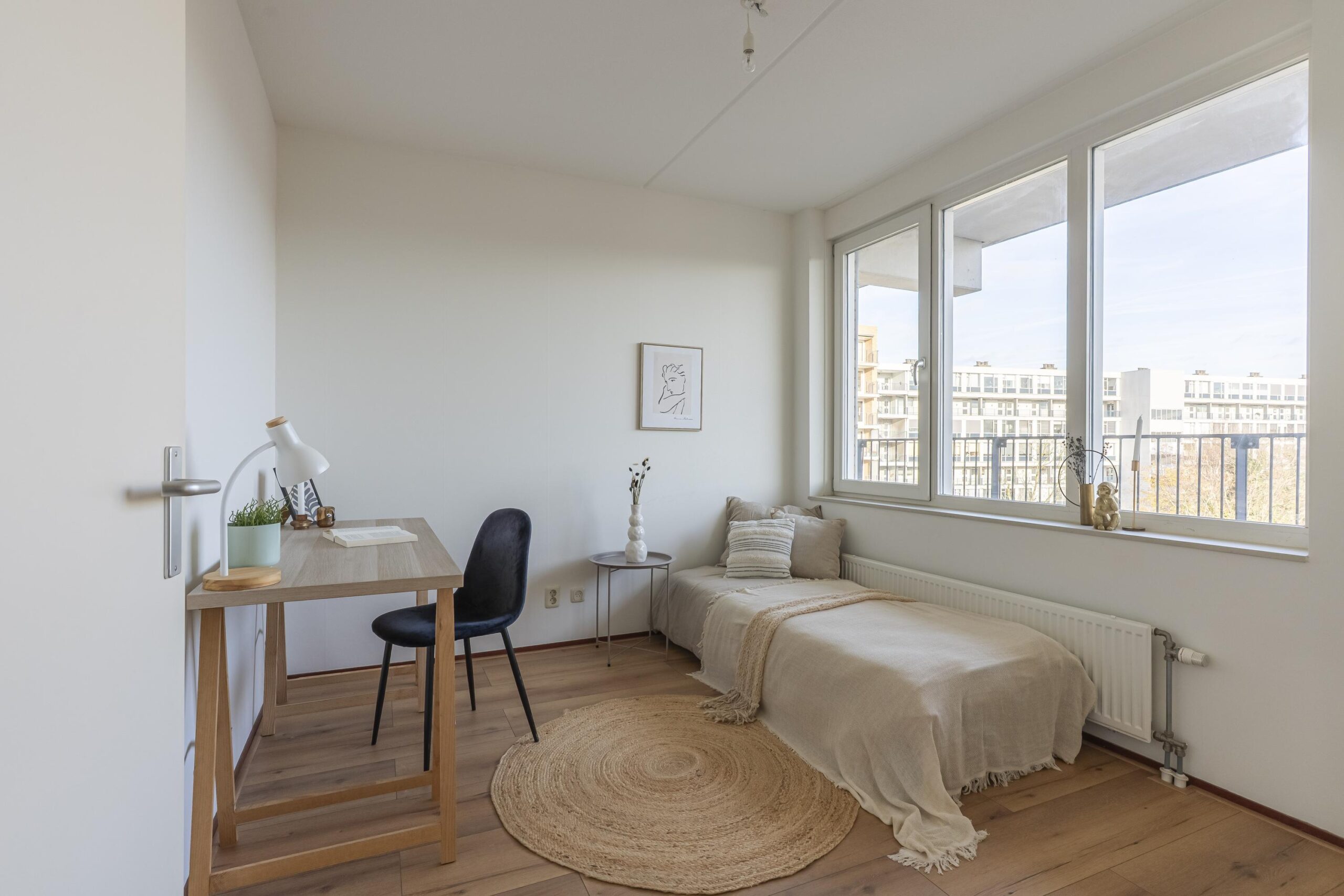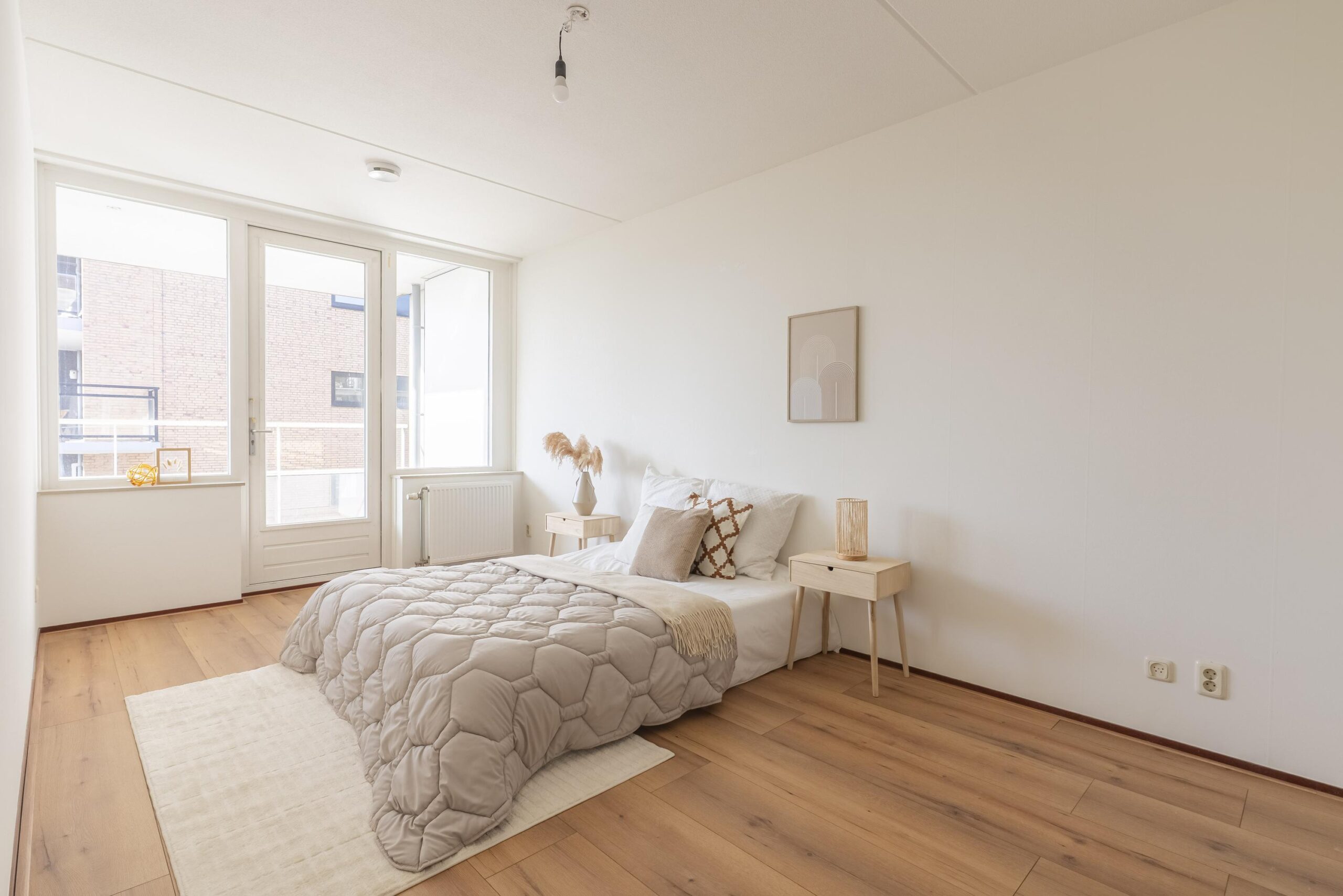 Ruime slaapkamer met directe toegang tot het balkon. De 2e slaapkamer is naast de ingang gelegen en zeer geschikt als bijvoorbeeld hobby-/ werkkamer of logeerkamer voor gasten.