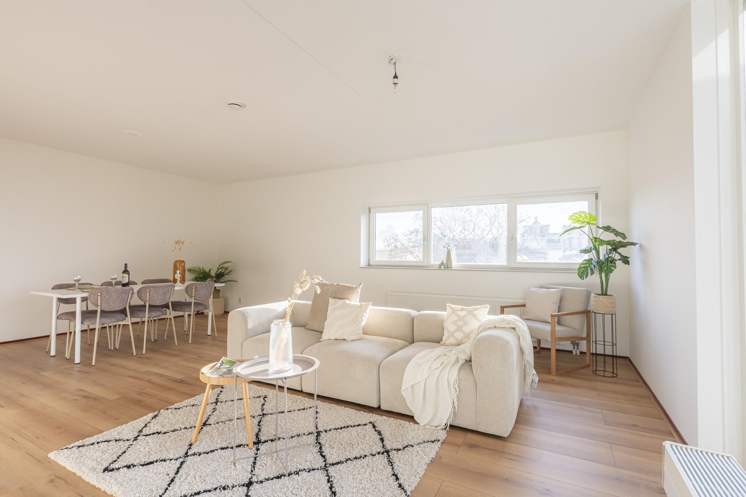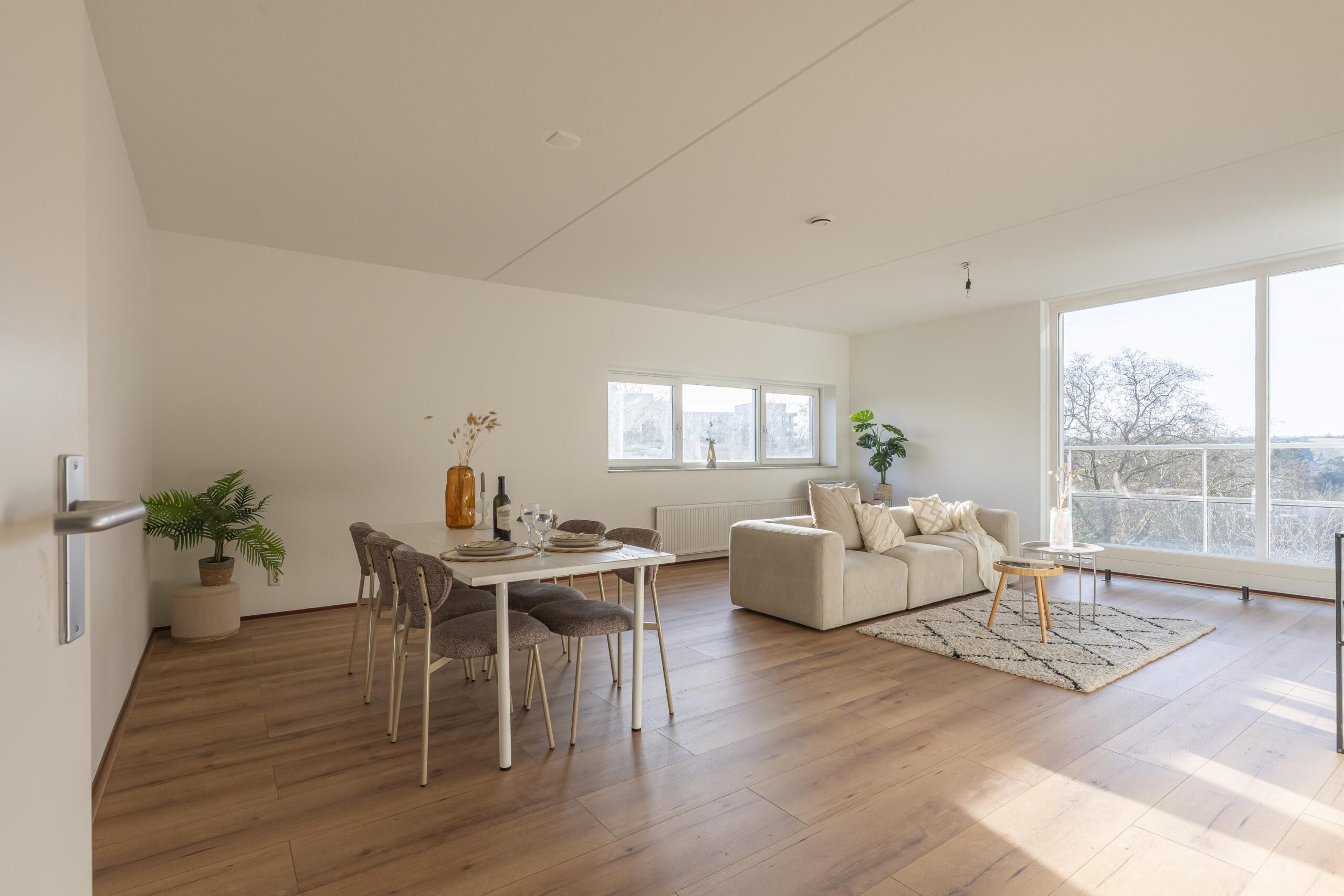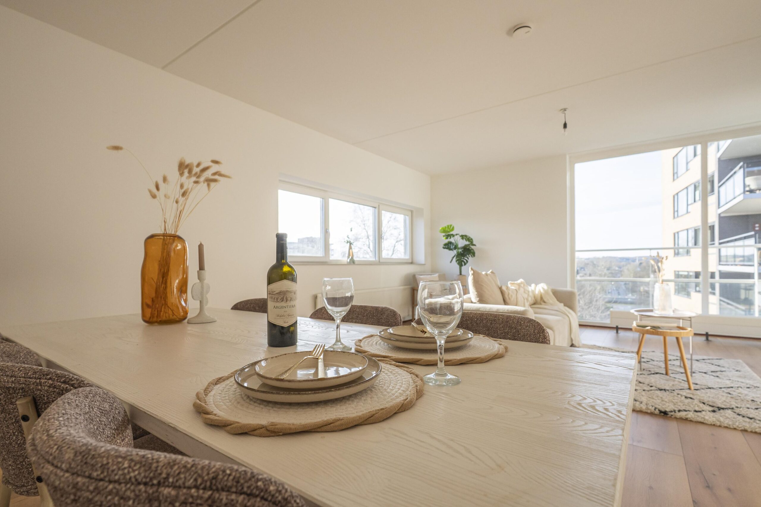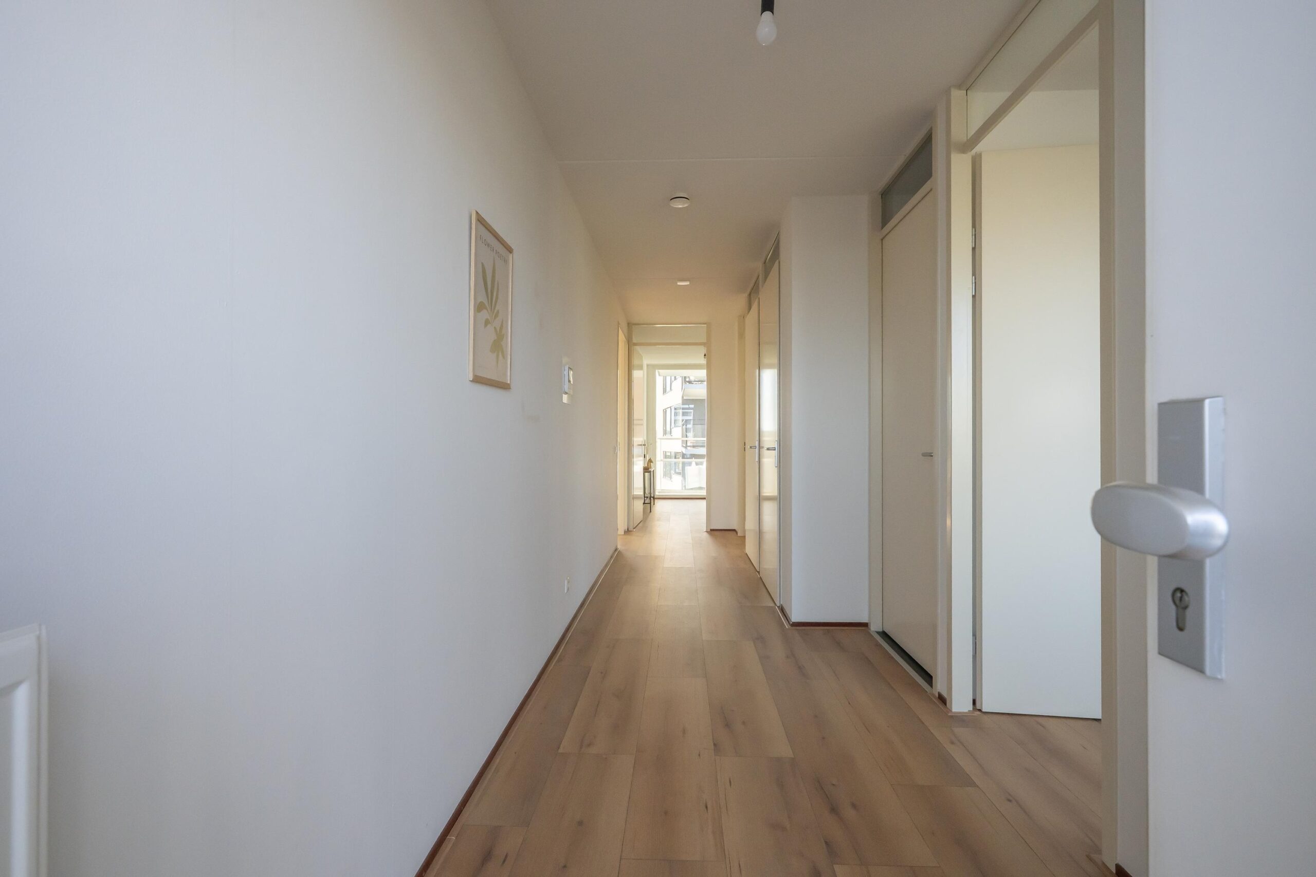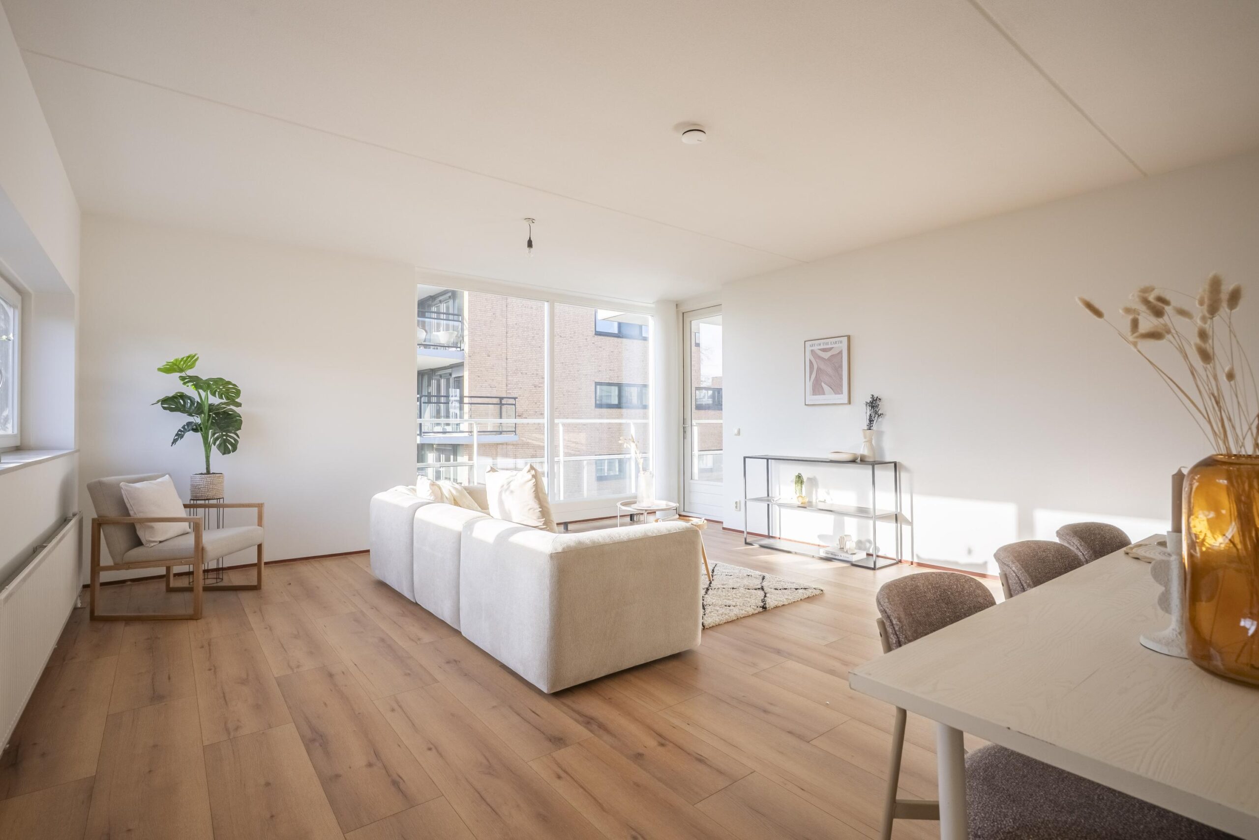Royale hal met meterkast en garderobe. Deels betegelde toiletruimte met toilet en fonteintje. Technische ruimte alwaar zich de aansluitpunten voor witgoedapparatuur bevinden, alsmede de WTW installatie. Tevens is hier ook nog genoeg plek voor extra opslag. Geheel betegelde, moderne badkamer voorzien van ligbad, douche en wastafel. Ruime living met een fraai uitzicht en veel lichtinval door de extra raampartij aan de zijkant, met toegang tot het ruime balkon. De gesloten keuken is voorzien van een nette keukeninstallatie in hoekopstelling voorzien van de navolgende apparatuur: koelkast met vriesvak, keramische kookplaat, vaatwasser en combimagnetron.
