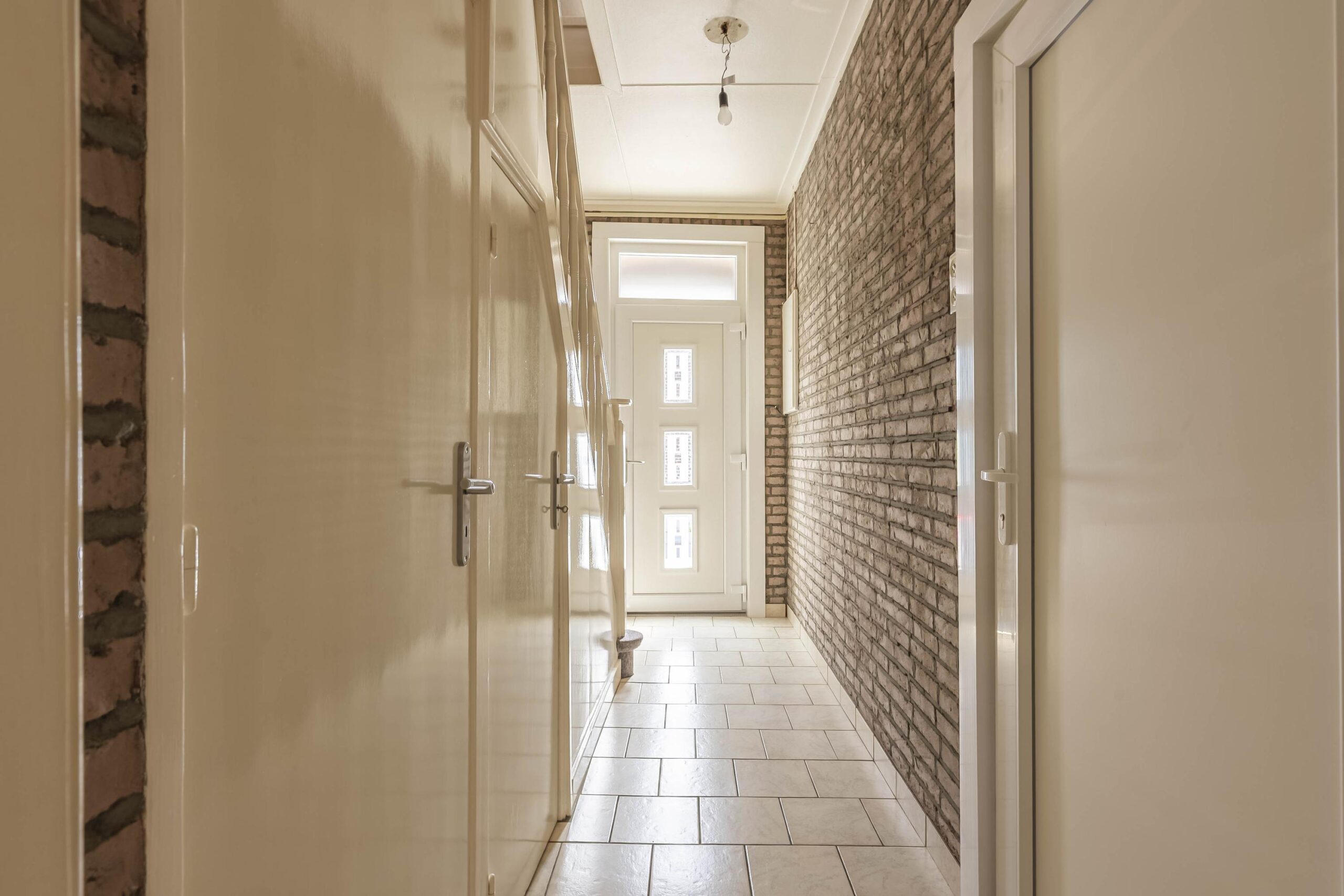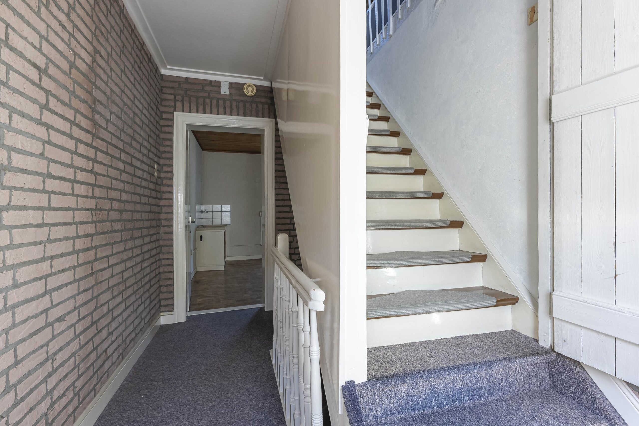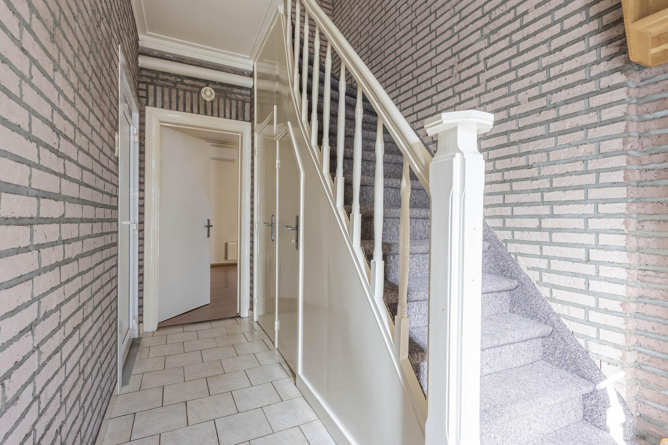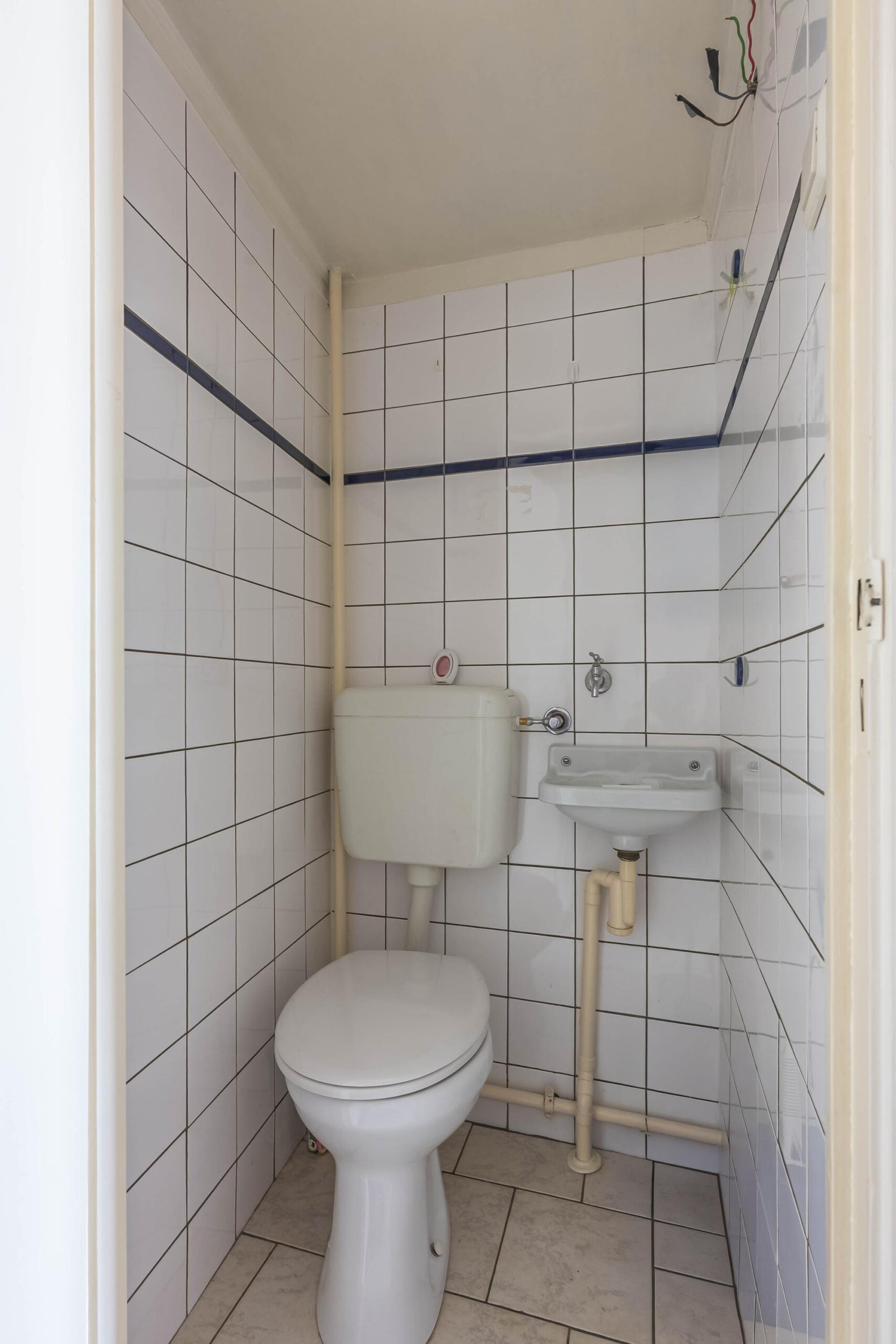 Middels de hal/entree met tegelvloer, trapopgang, meterkast en geheel betegelde toiletruimte met staand toilet en fonteintje komt u in de gesloten keuken en de woonkamer.